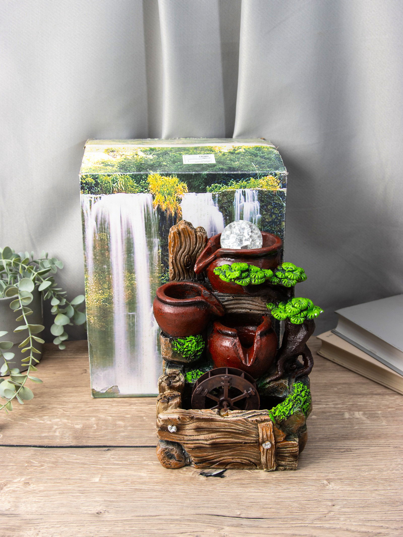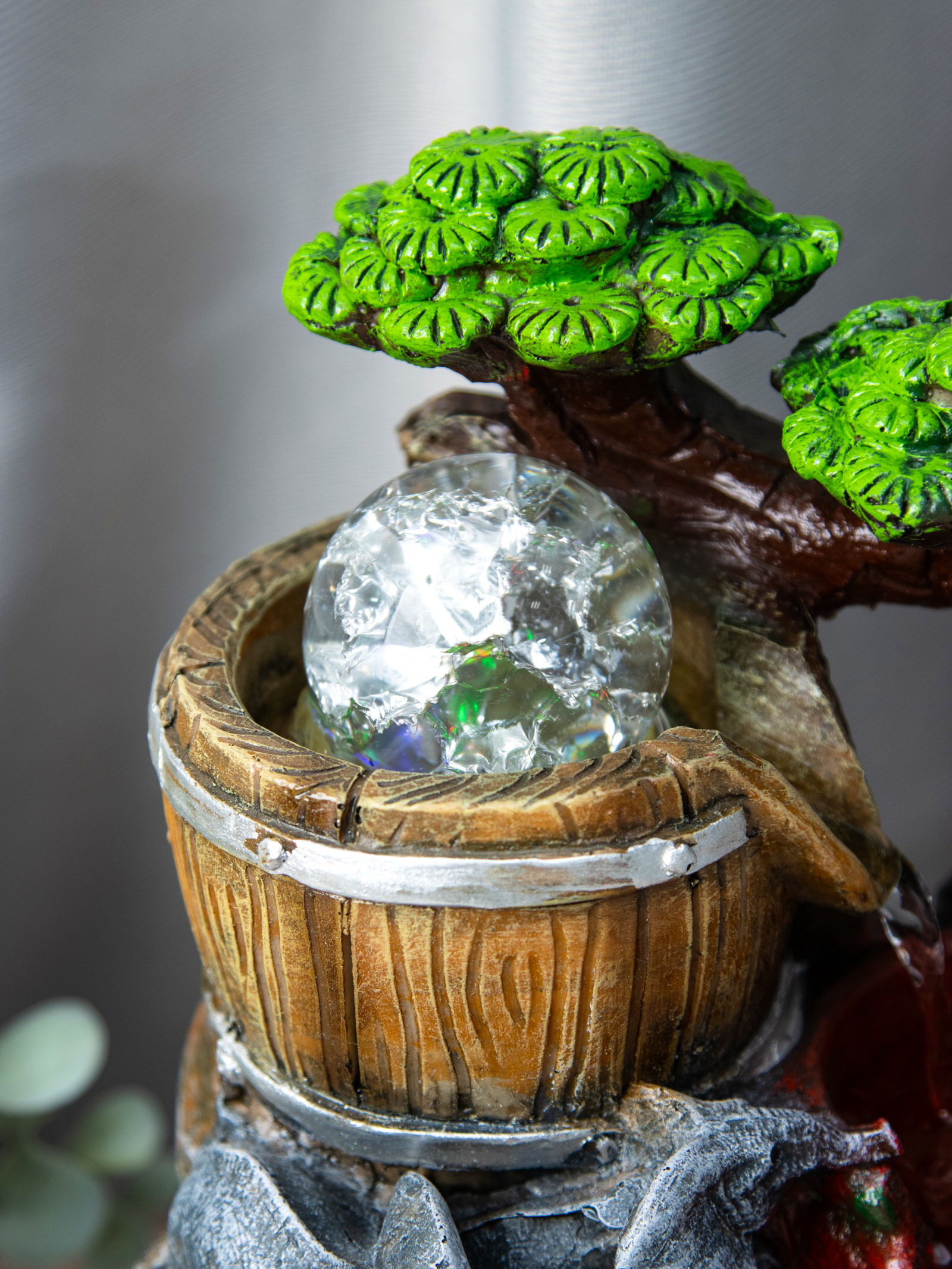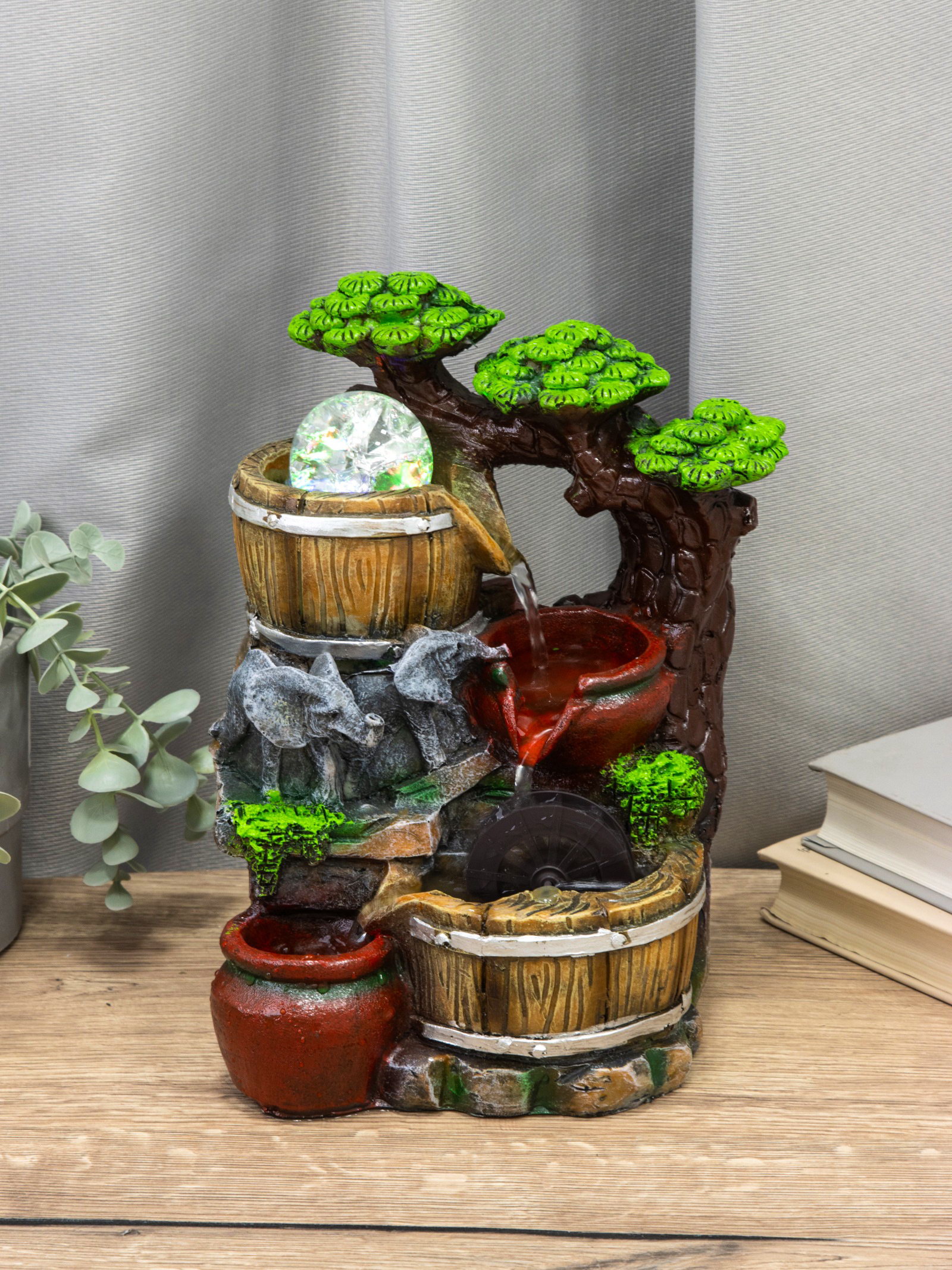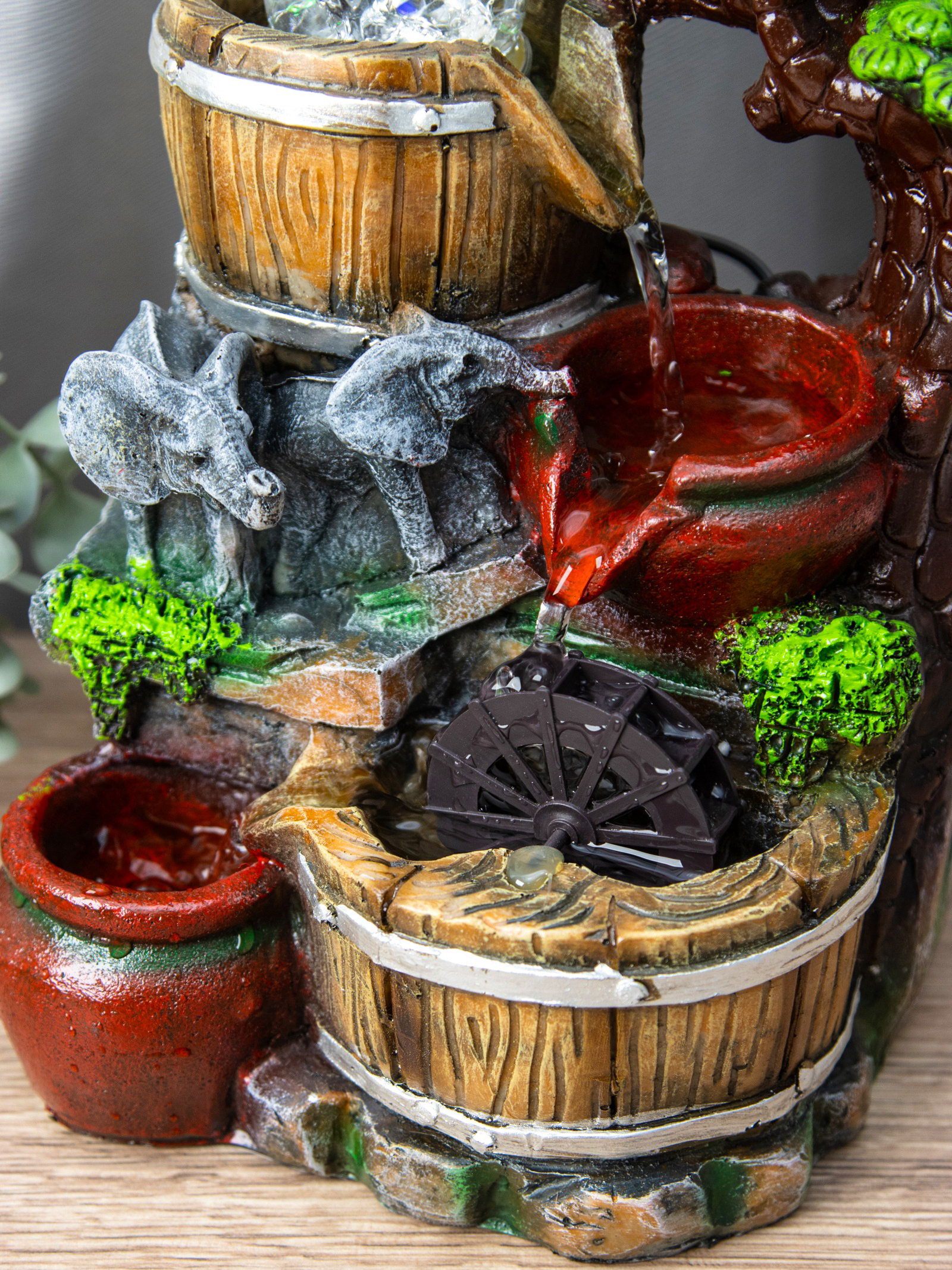 Фонтан "Слоники под деревом, бочки и кувшины", 12x15x24 см, с подсветкой, 15x12x24 см., Китай