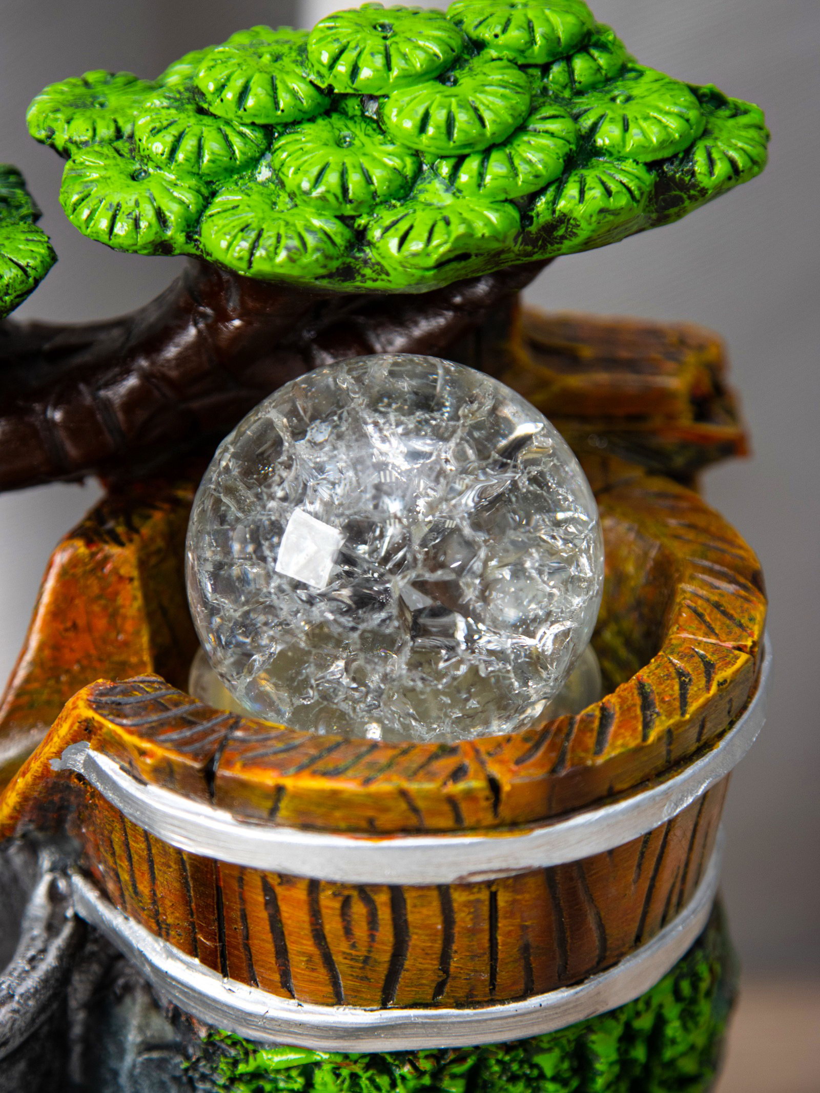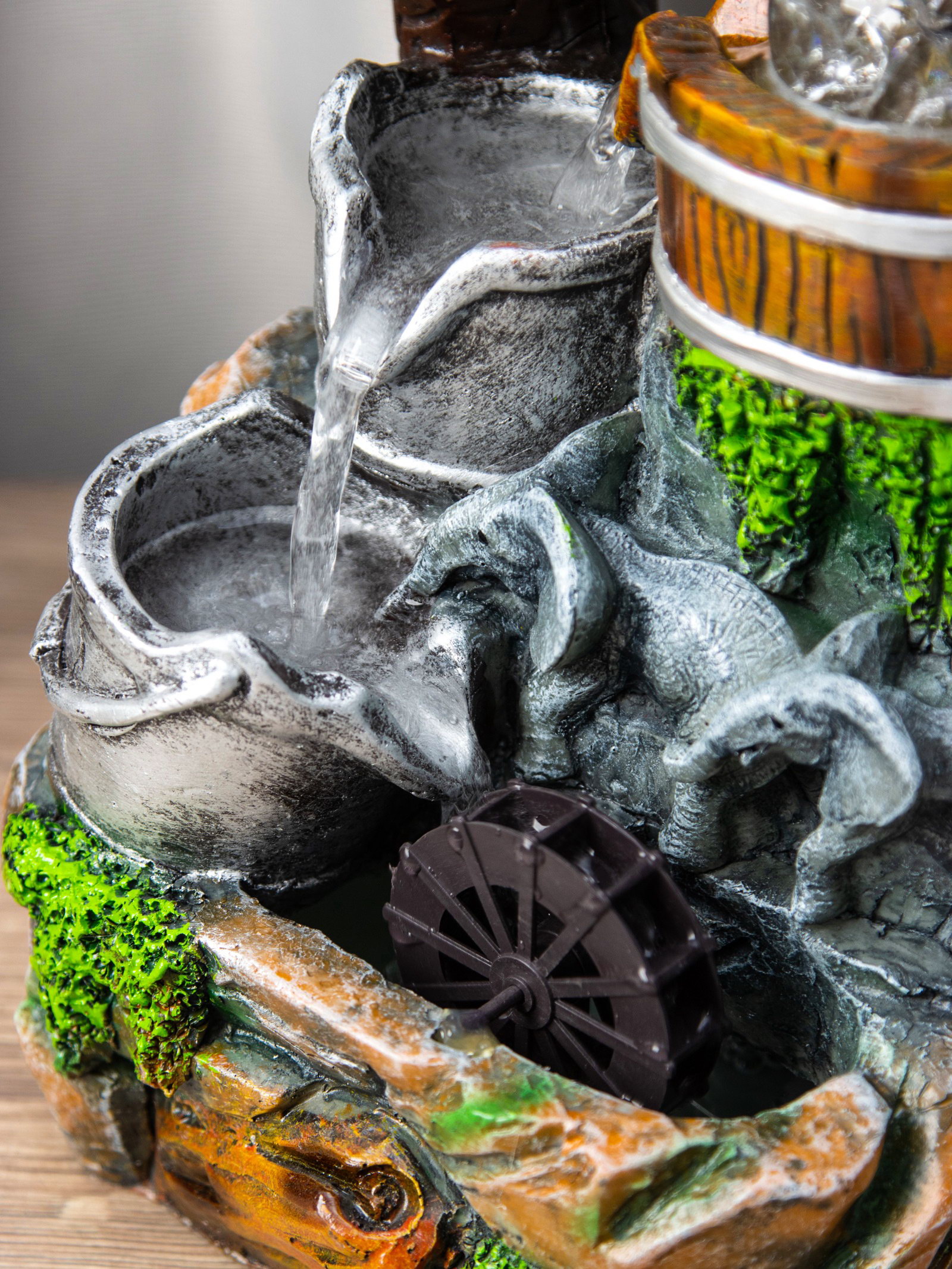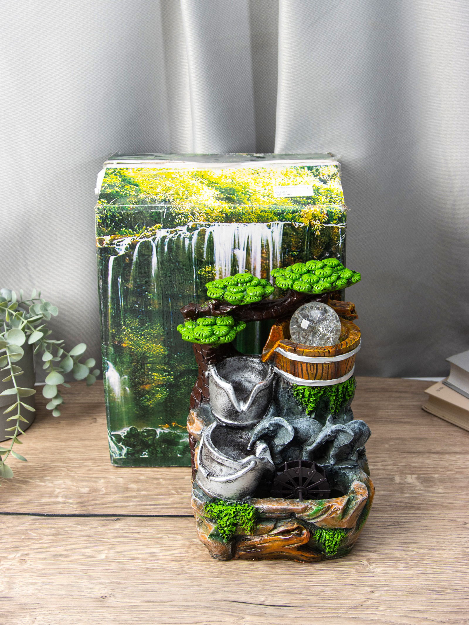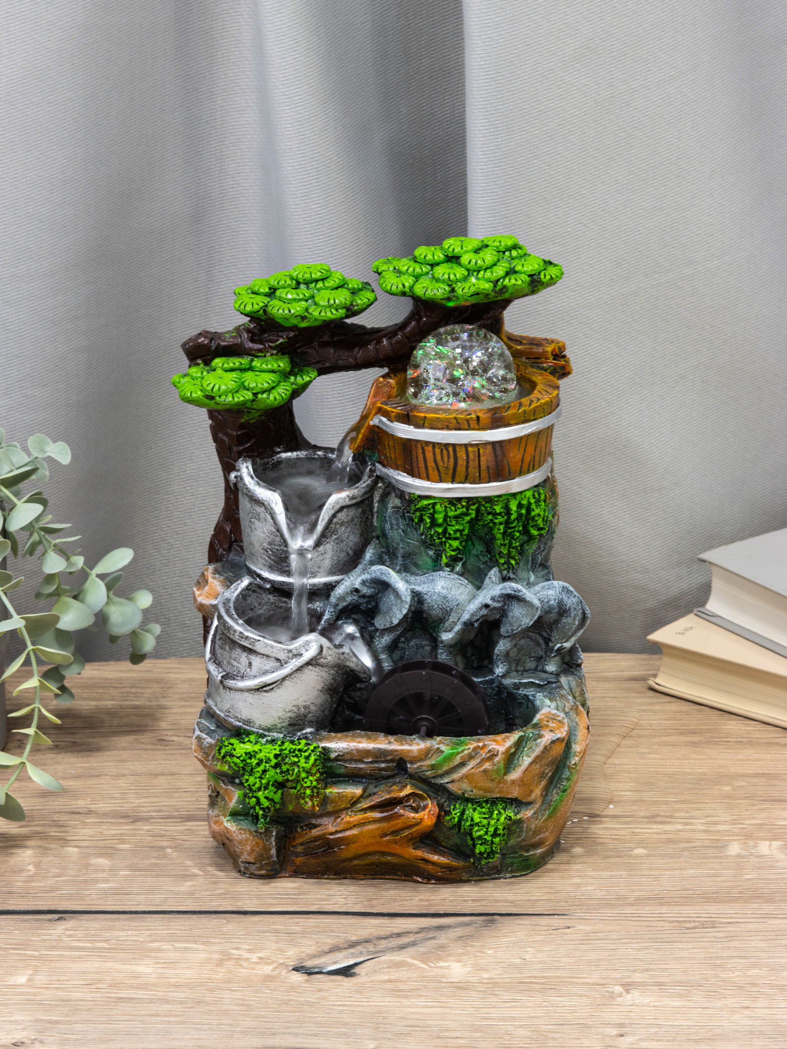Фонтан "Слоники под деревом, ведерки", 12x15x24 см, с подсветкой, 15x12x24 см., Китай