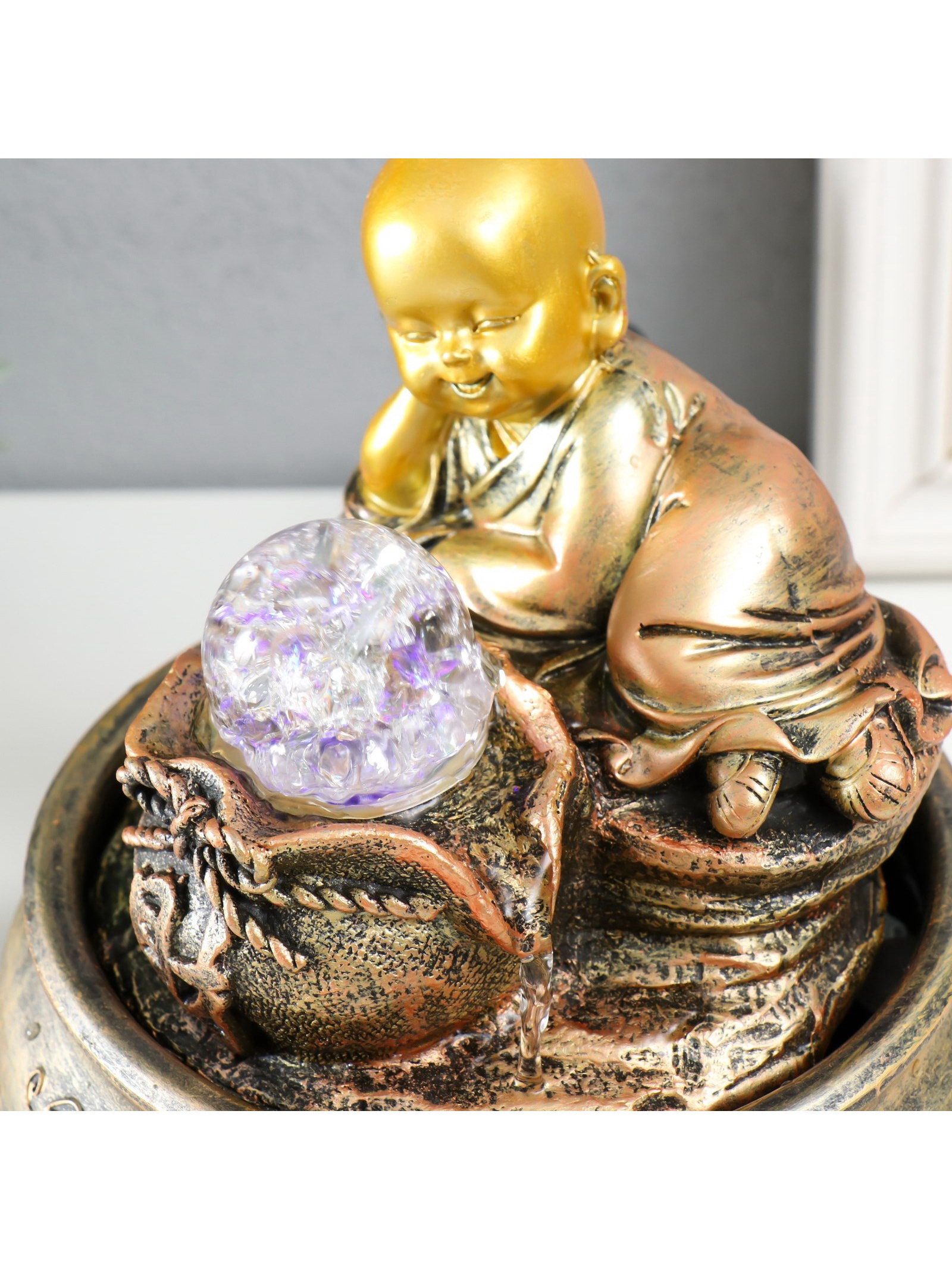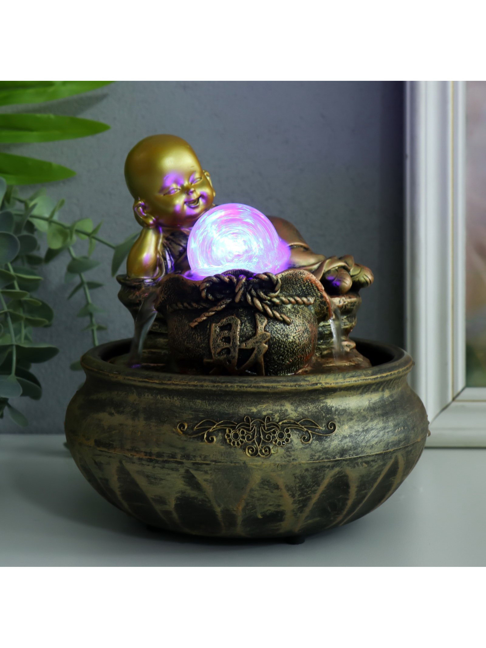 Фонтан настольный с подсветкой "Маленький Будда с мешком", от сети, 16x16x18 см, 16x16x18 см., Китай