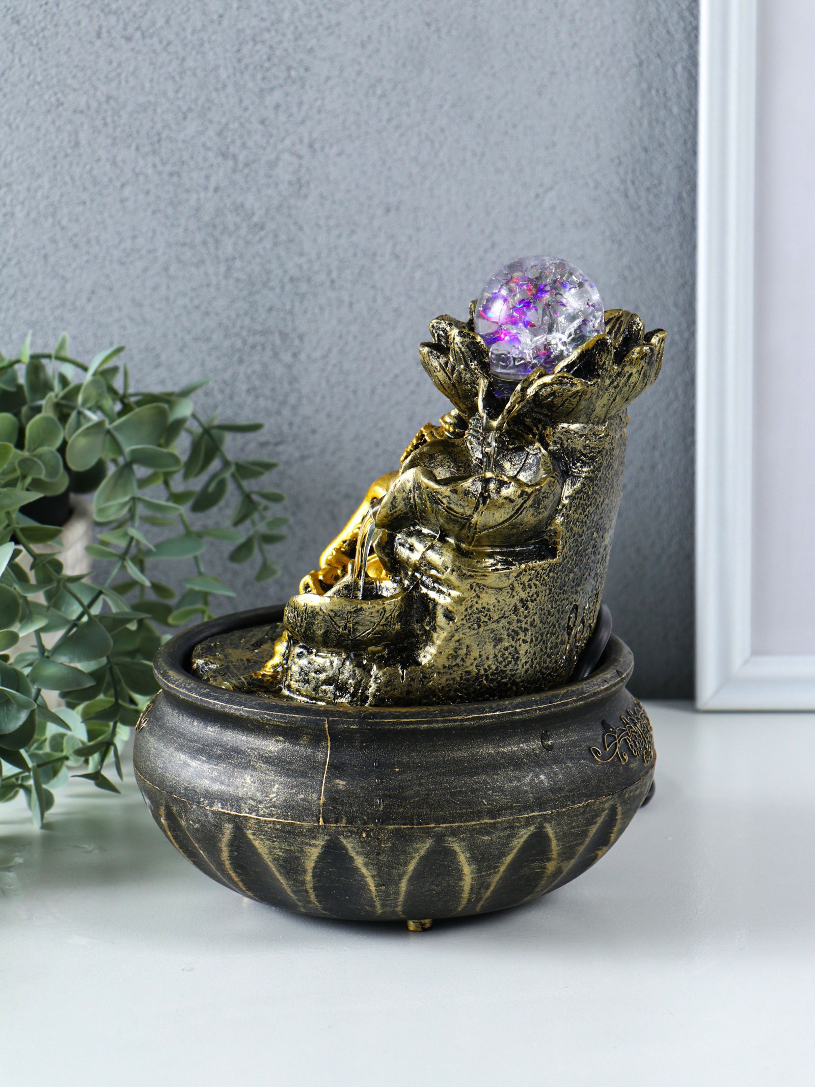 Создайте свою оазис гармонии Наблюдение за текущей водой и мерцанием подсветки превращает обычный уголок в личное пространство для медитации и восстановления сил. Фонтан с богом мудрости привносит в обстановку не только эстетику, но и символическое наполнение, способствуя созданию позитивной атмосферы для работы и творчества. | ||