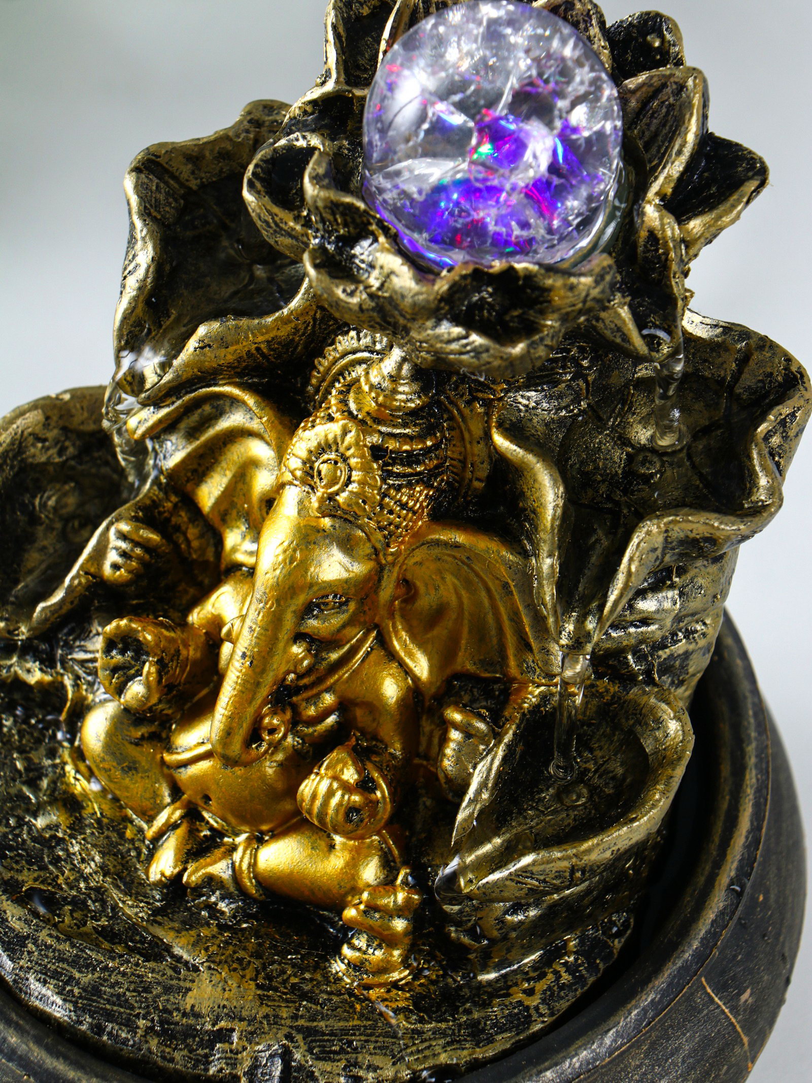 Фонтан настольный с подсветкой "Ганеша у фонтана с лотосом", 16x16x21 см, 16x16x21 см., Китай