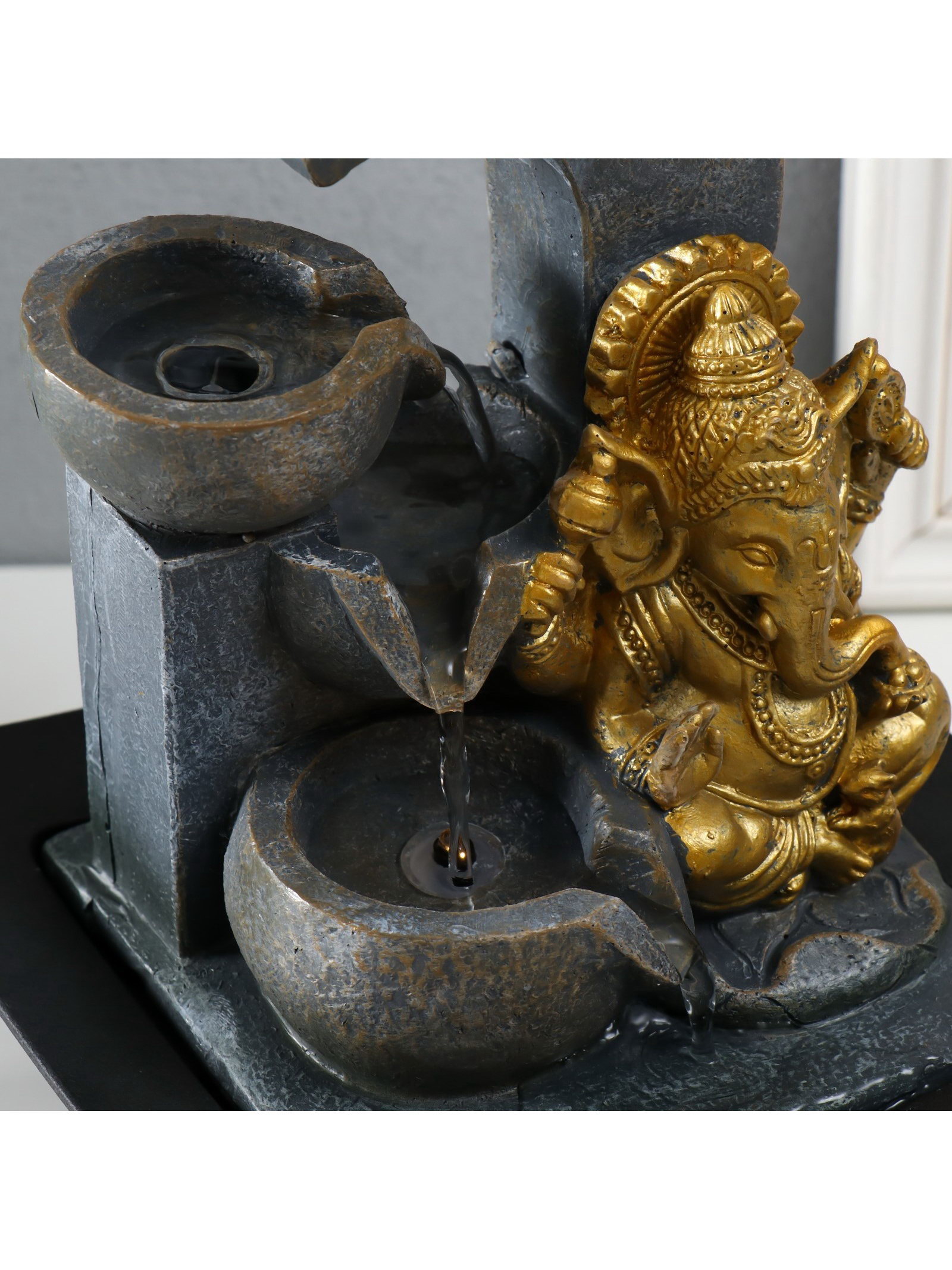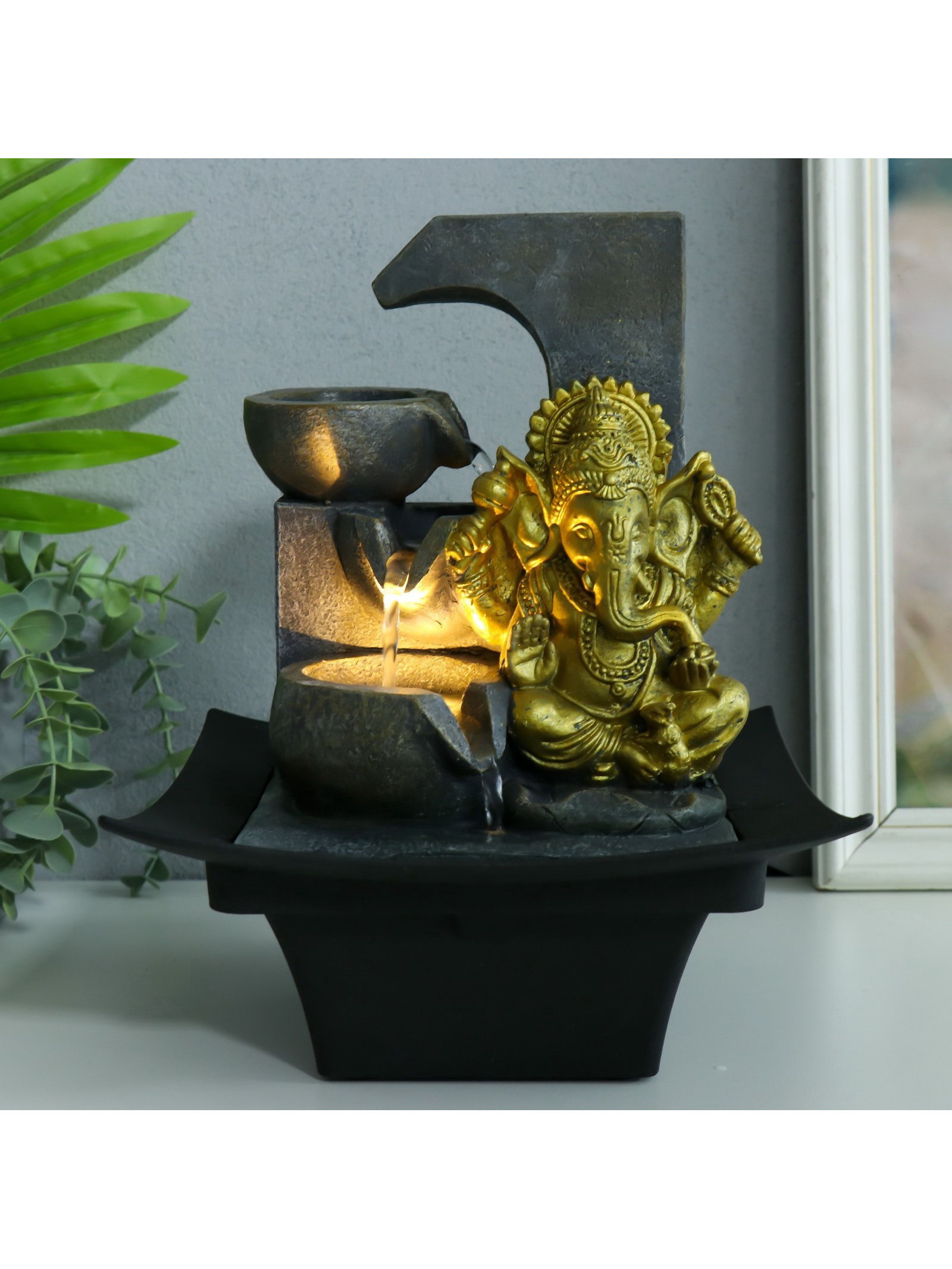 Фонтан настольный с подсветкой "Золотой Ганеша у каменного фонтана", от сети, 20.5x20.5x26 см, 20.5x20.5x26 см., Китай