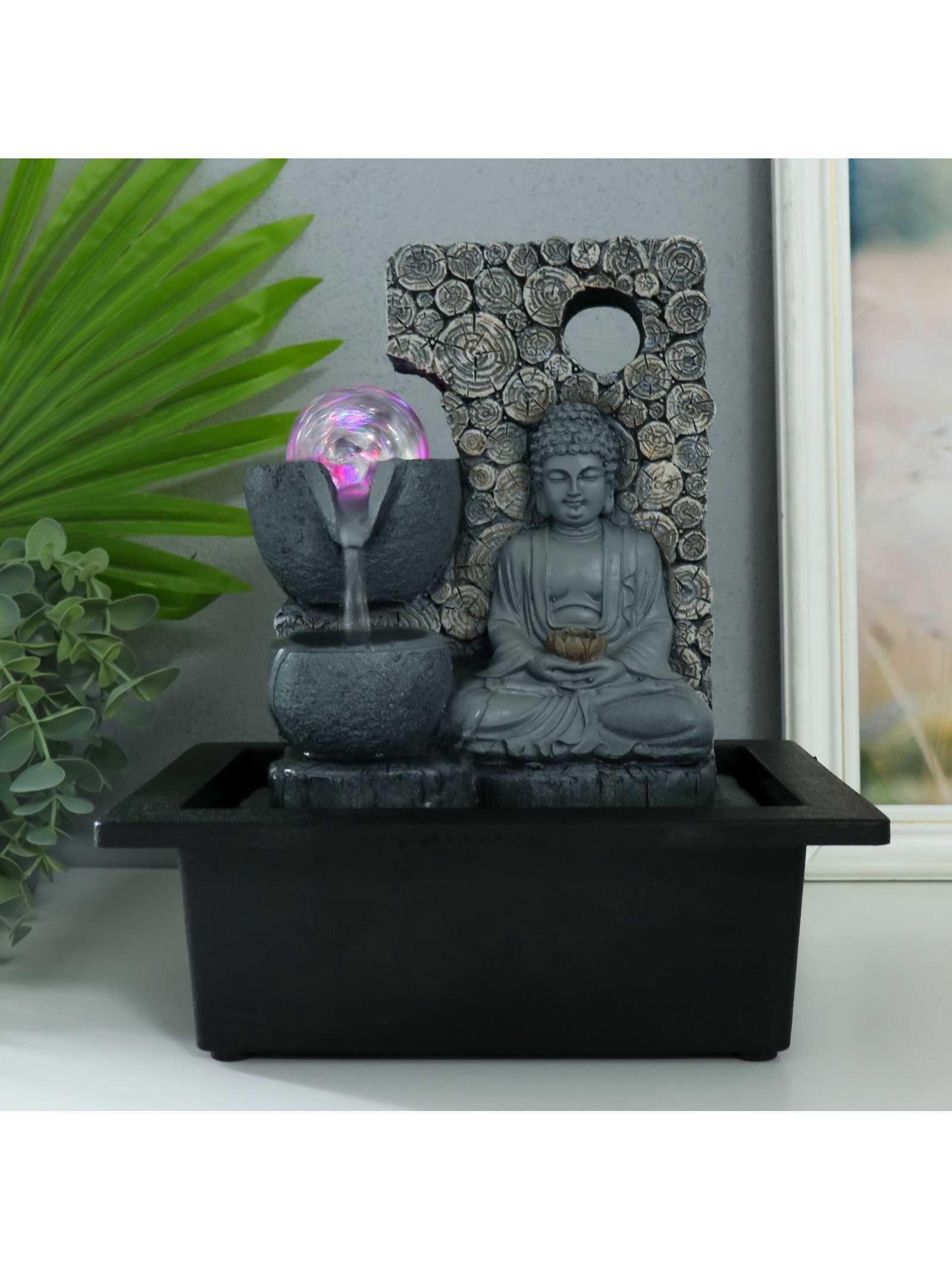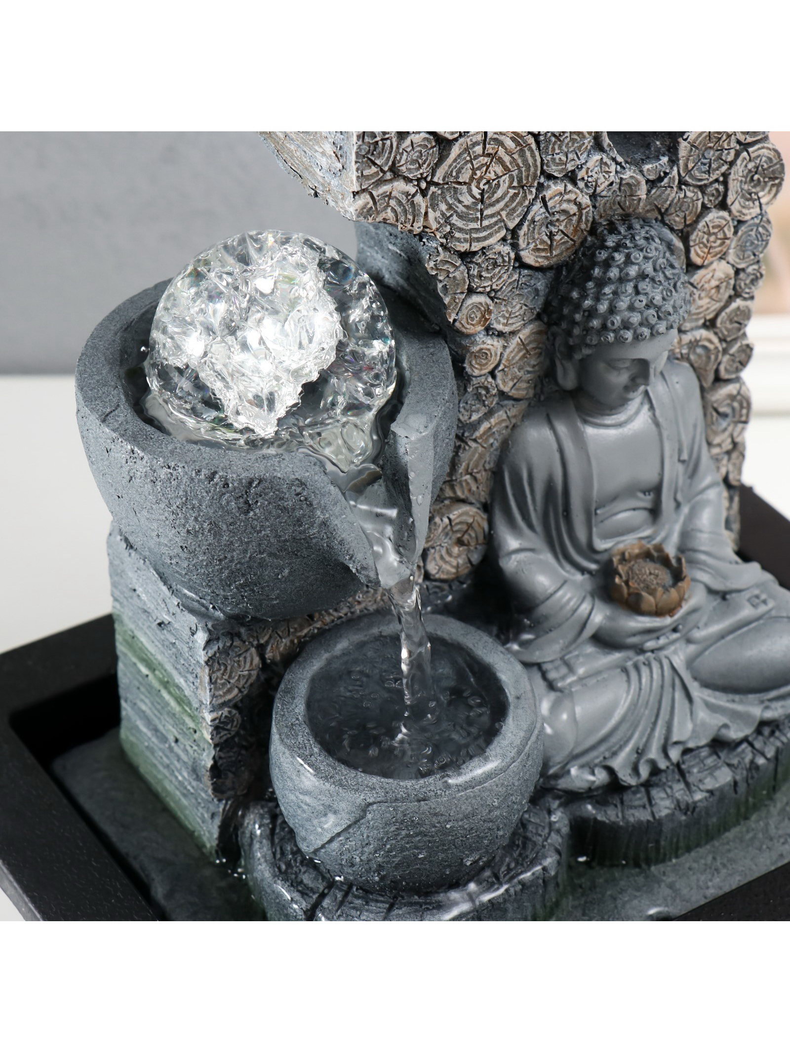 Фонтан настольный с подсветкой "Будда у стены из брусьев", от сети, 26x17.5x23 см, 17.5x23x26 см., Китай