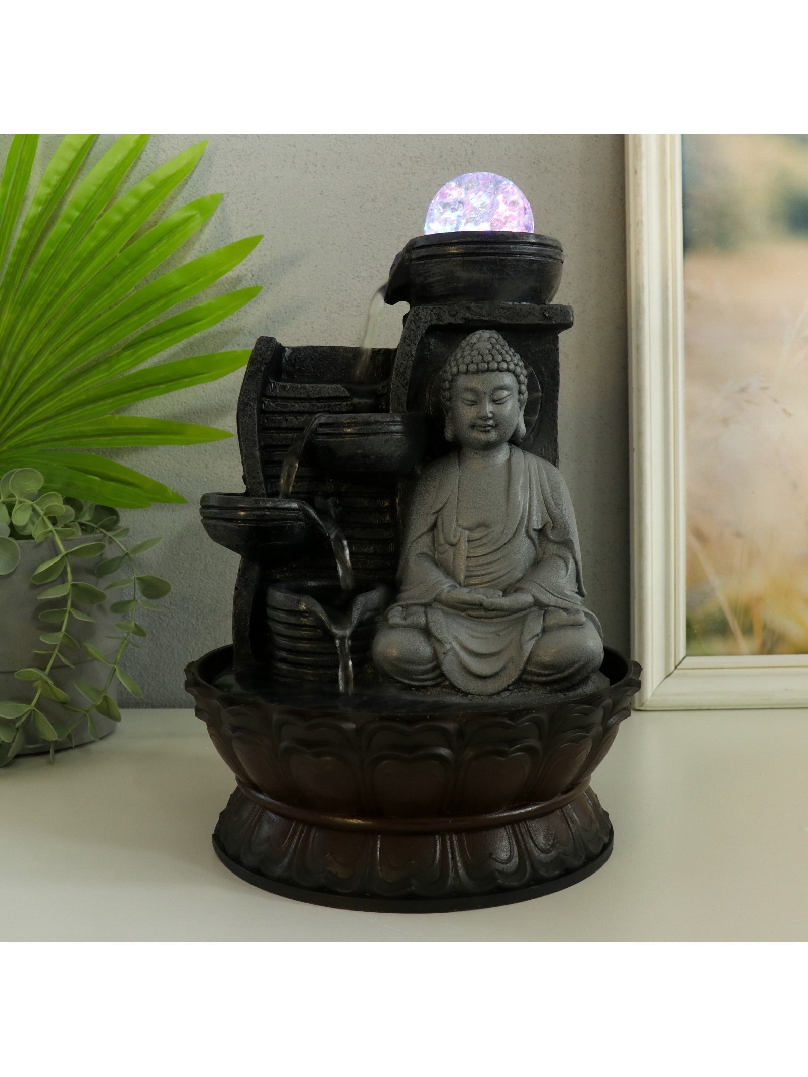 Фонтан настольный с подсветкой "Будда в сером у стены", от сети, 20x20x30 см, 20x20x30 см., Китай