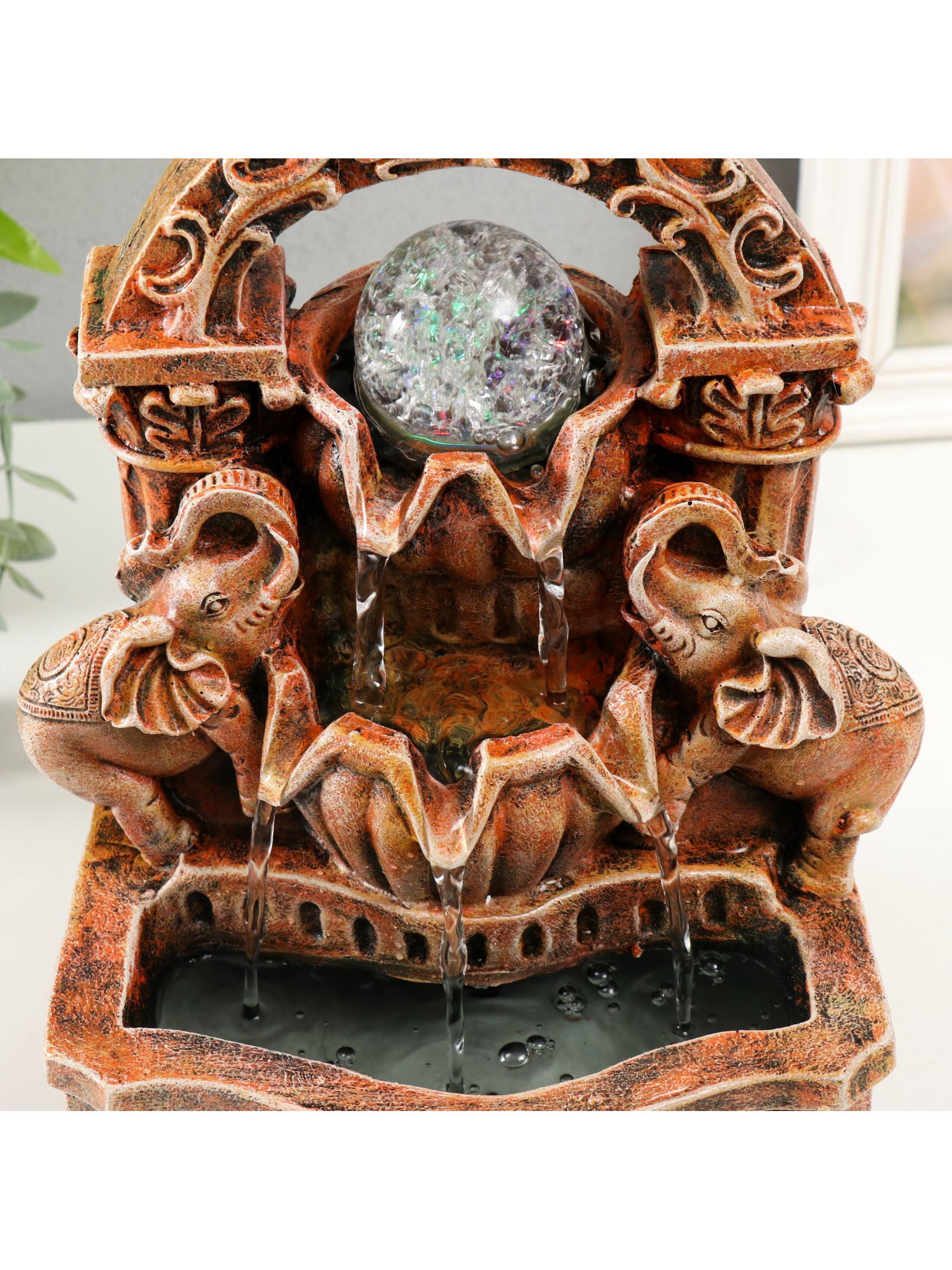 Фонтан настольный с подсветкой "Два слона под аркой", от сети, 19x14x26 см, 19x14x26 см., Китай