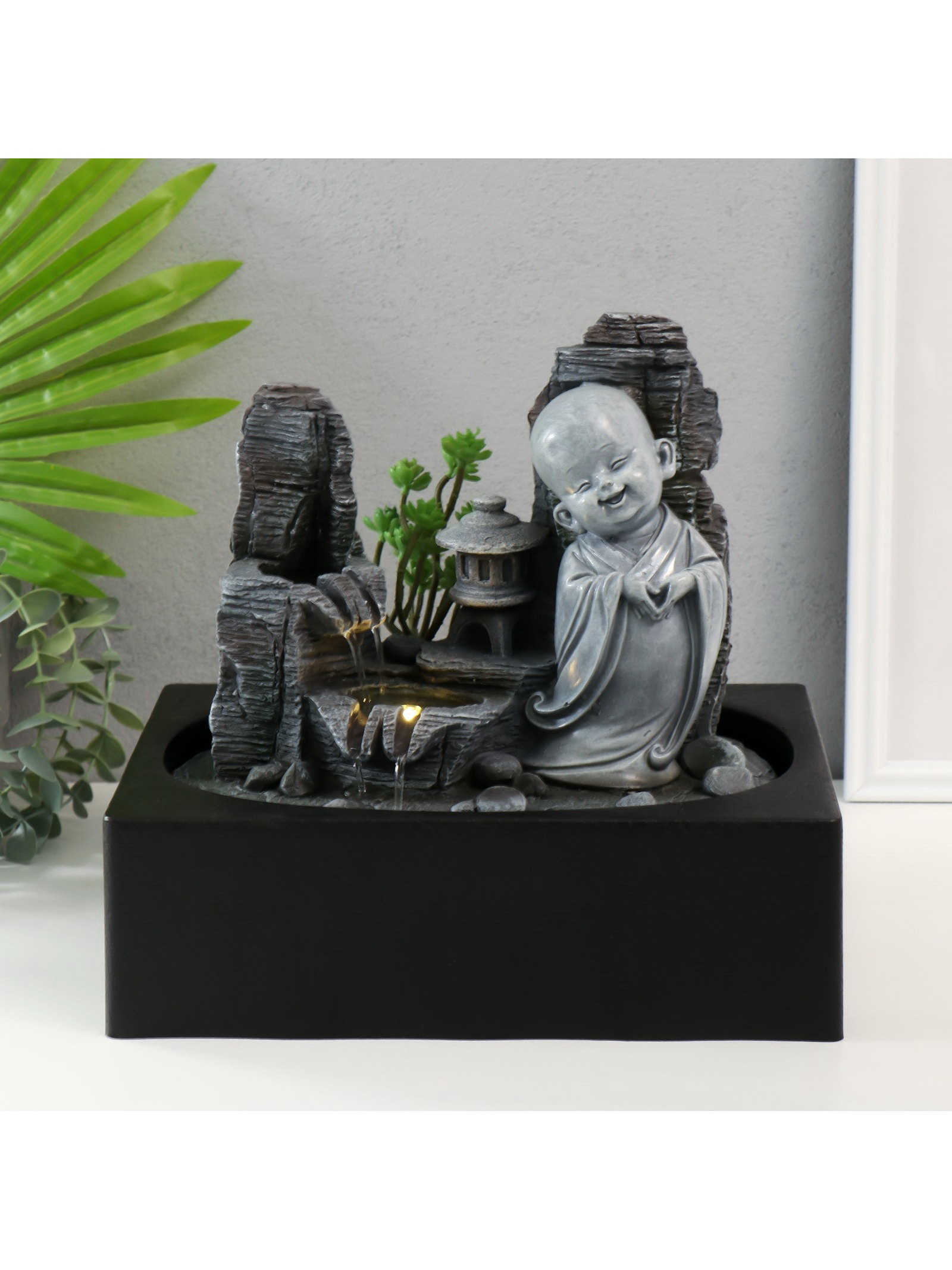 Фонтан настольный с подсветкой "Маленький хотей в каменном городе", от сети, 29x21x27 см, 21x29x27 см., Китай