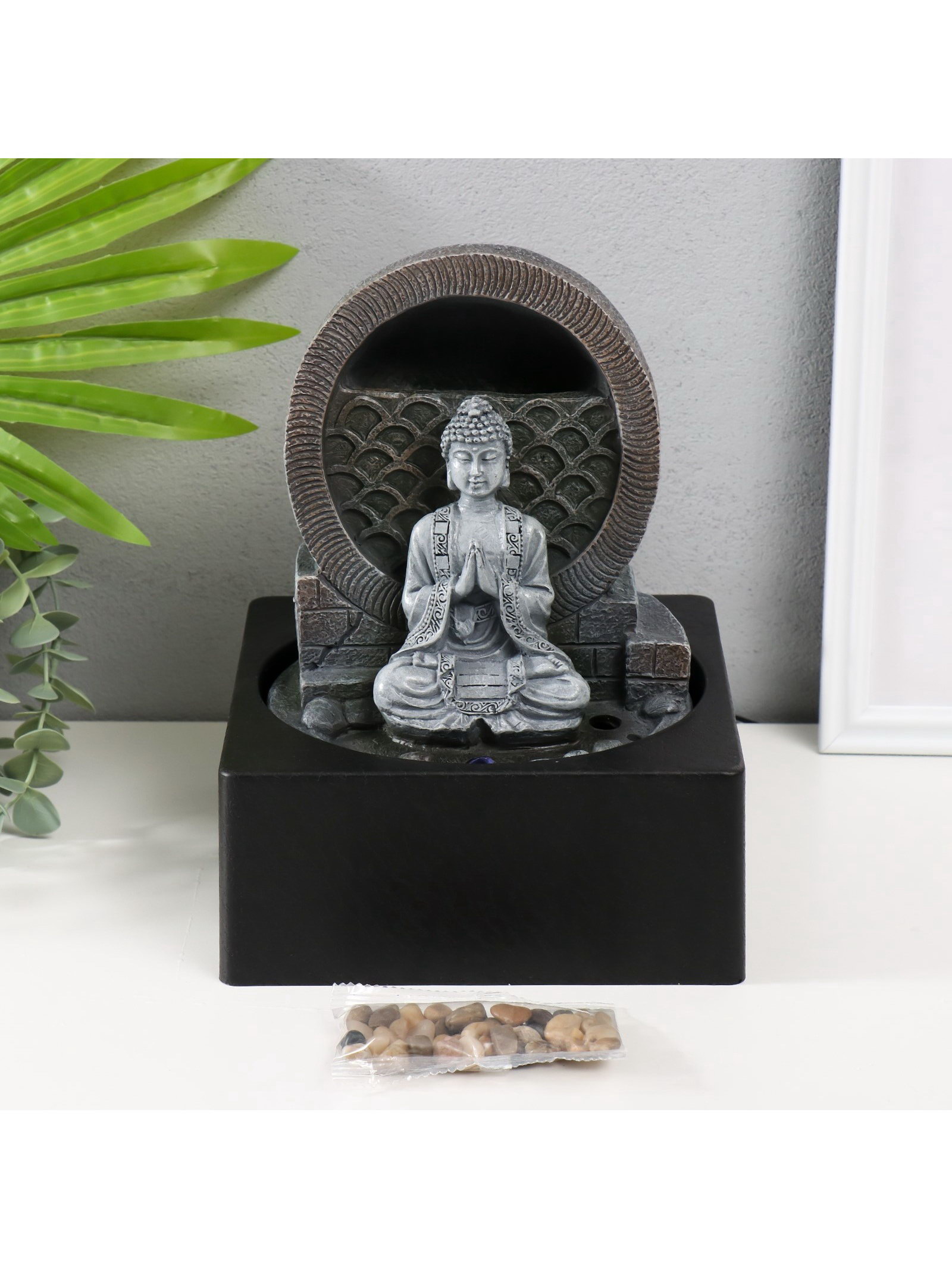Настольный фонтан с камнями "Медитирующий Будда", серый, от сети подсветка, 18x18x24 см, 18x18x24 см., Китай
