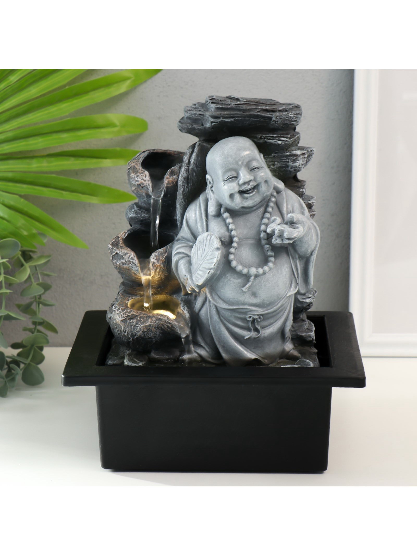 Размер упаковки: 24.5 x 23.5 x 20 см. Тематика: Фэншуй Высота, см: 25 Подсветка: Да Одноцветный: Нет Медиагалерея: Видео Работает от сети: Да tnved: 3926400000 Создайте гармоничную атмосферу для работы и отдыха! Настольный фонтан "Серый Хотей" с подсветкой это стильный арт-объект для дома и офиса. Компактный водный каскад работает от сети и создает умиротворяющую обстановку, сочетая эстетику и философию фэншуй.