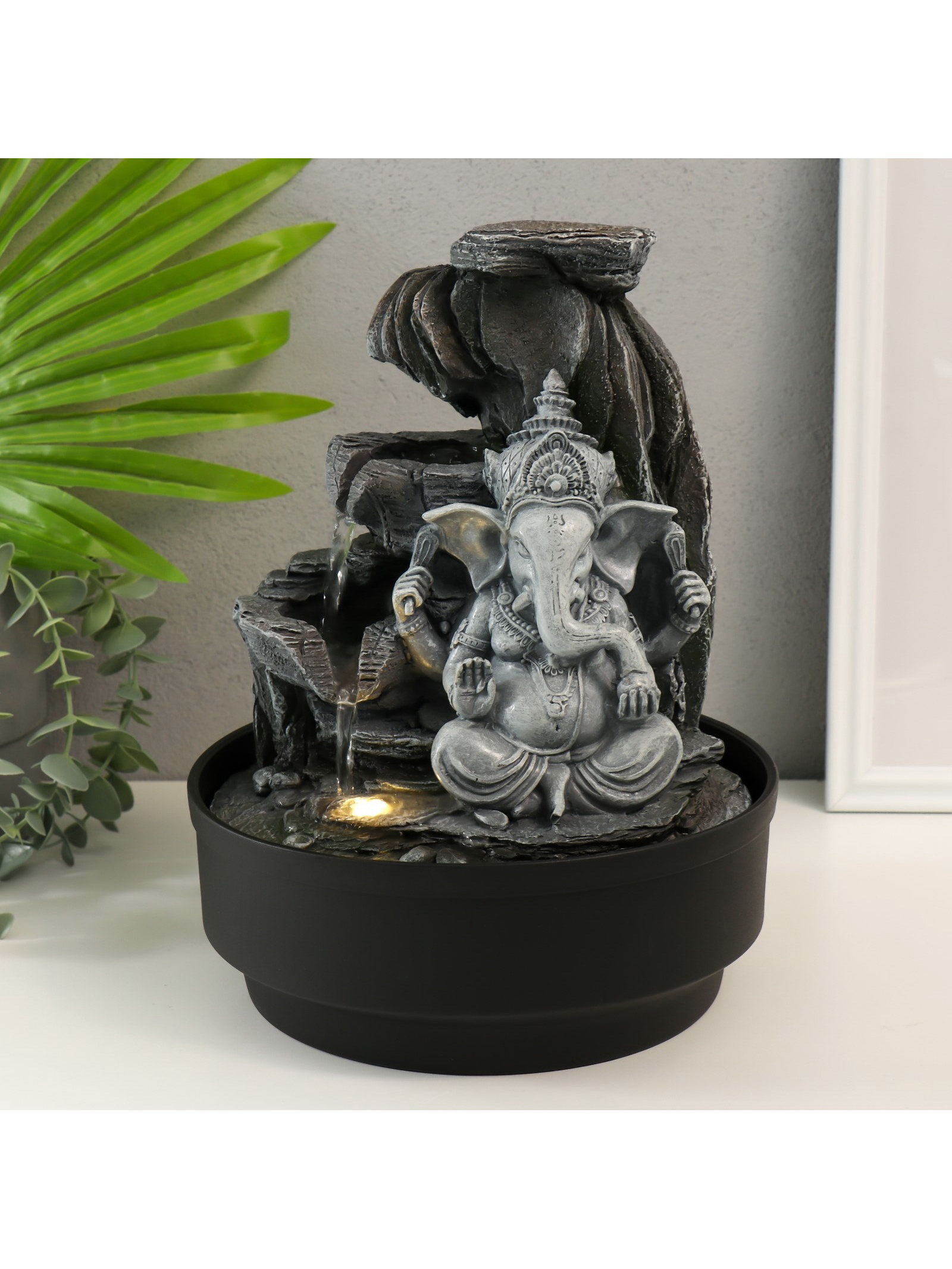 Фонтан настольный с подсветкой "Серый Ганеша в каменном гроте", от сети, 21x21x28 см, 21x21x28 см., Китай