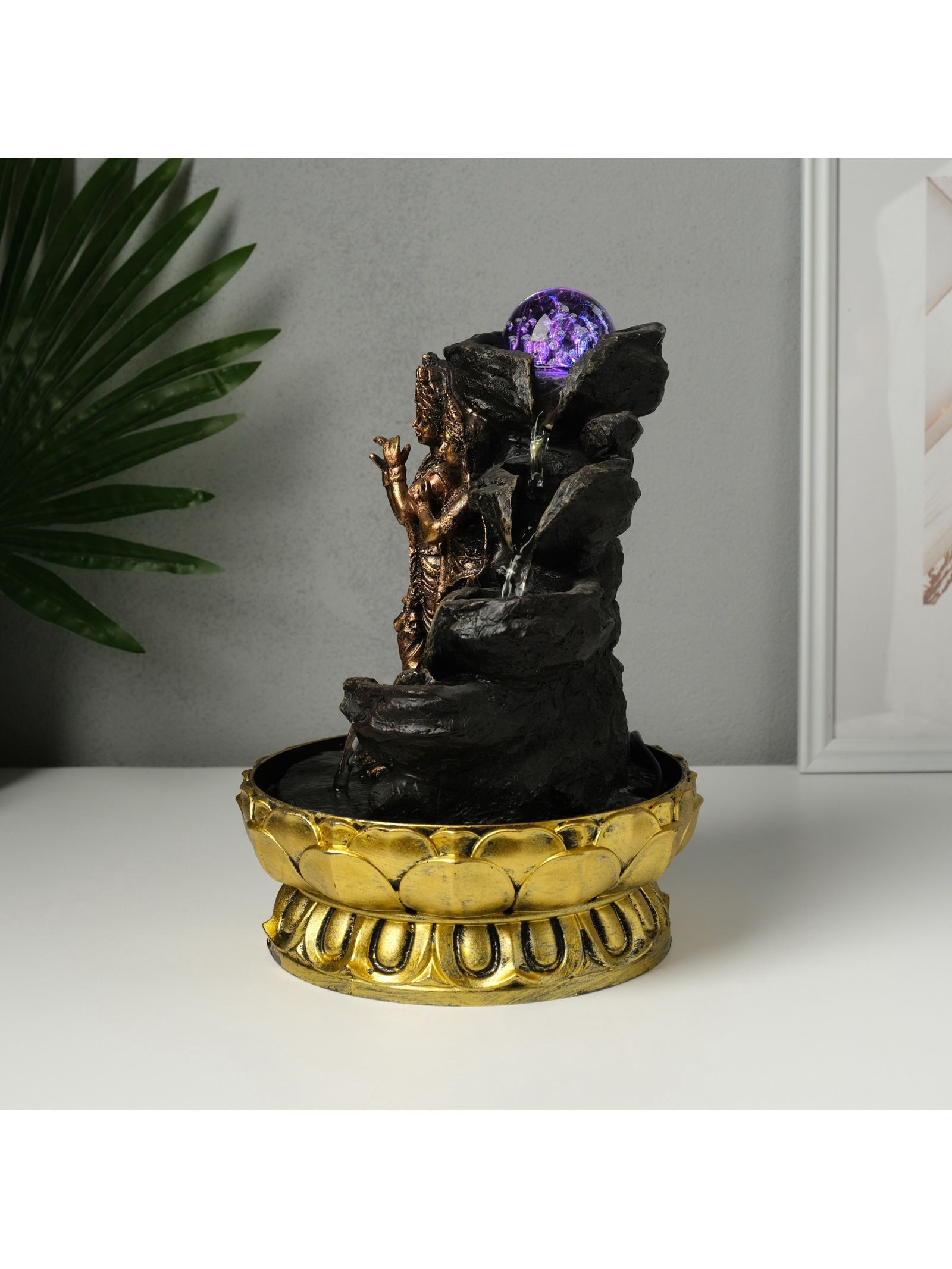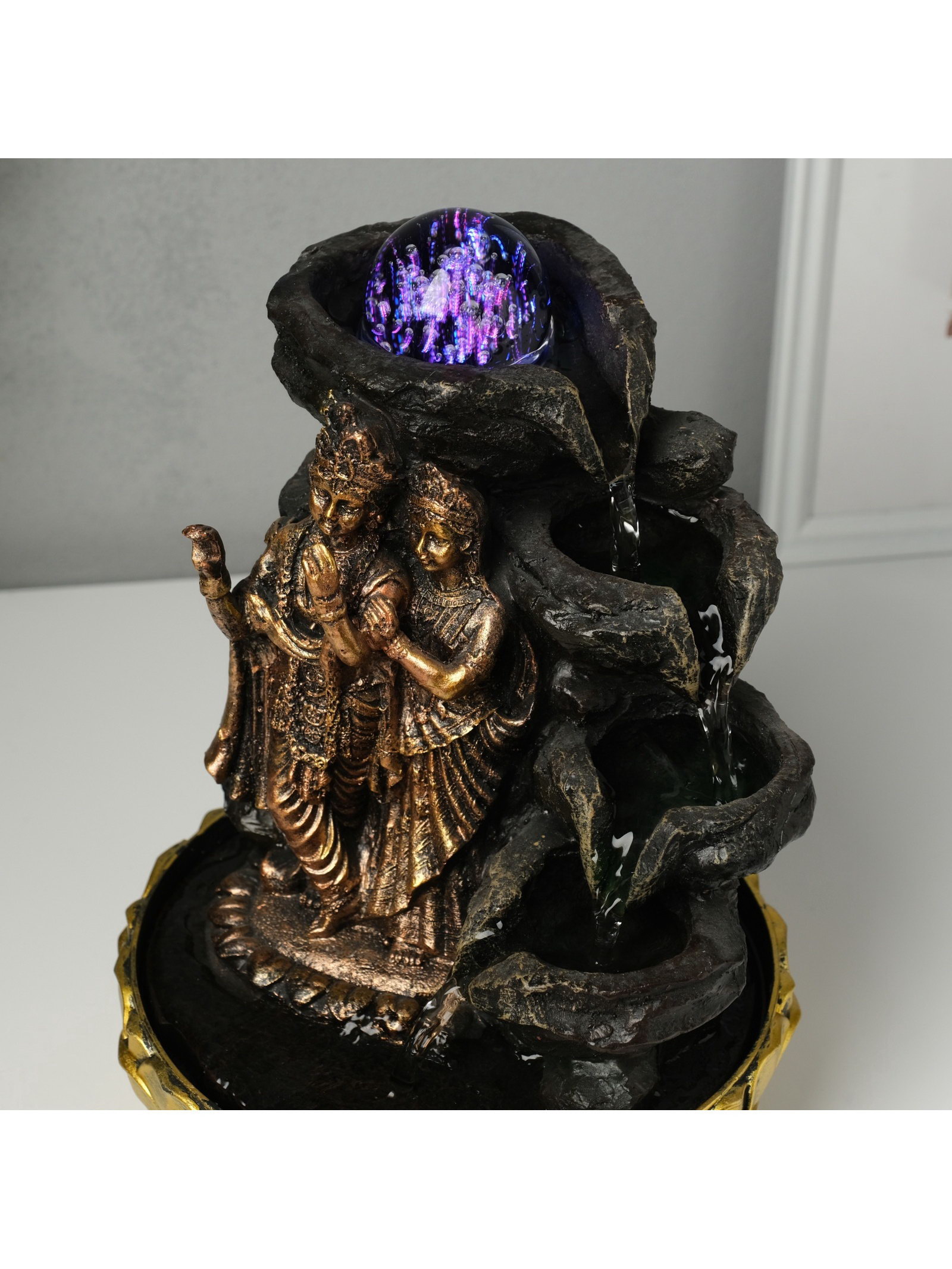 Фонтан настольный с подсветкой "Радха и Кришна у водопада", от сети, бронза, 20.5x20.5x28 см, 20.5x20.5x28 см., Китай