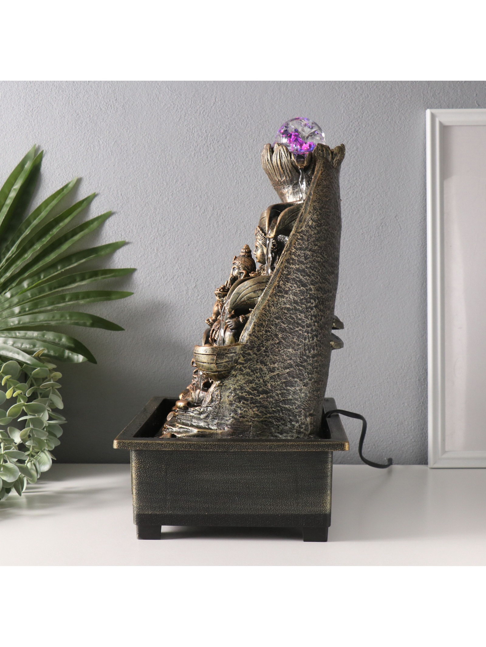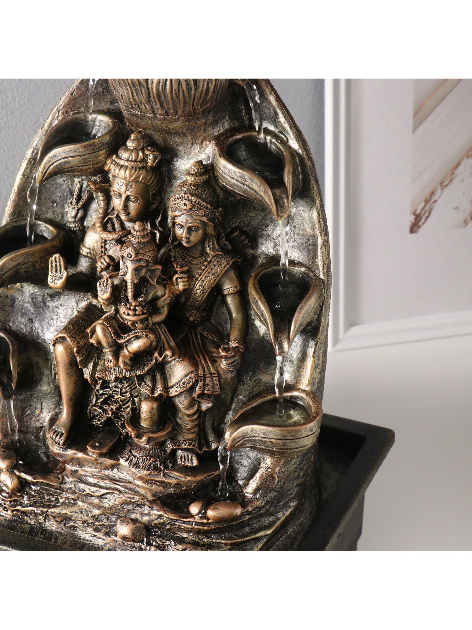 Фонтан настольный с подсветкой "Парвати, Шива, Ганеша у водопада", от сети, 21x28x40 см, 28x21x40 см., Китай