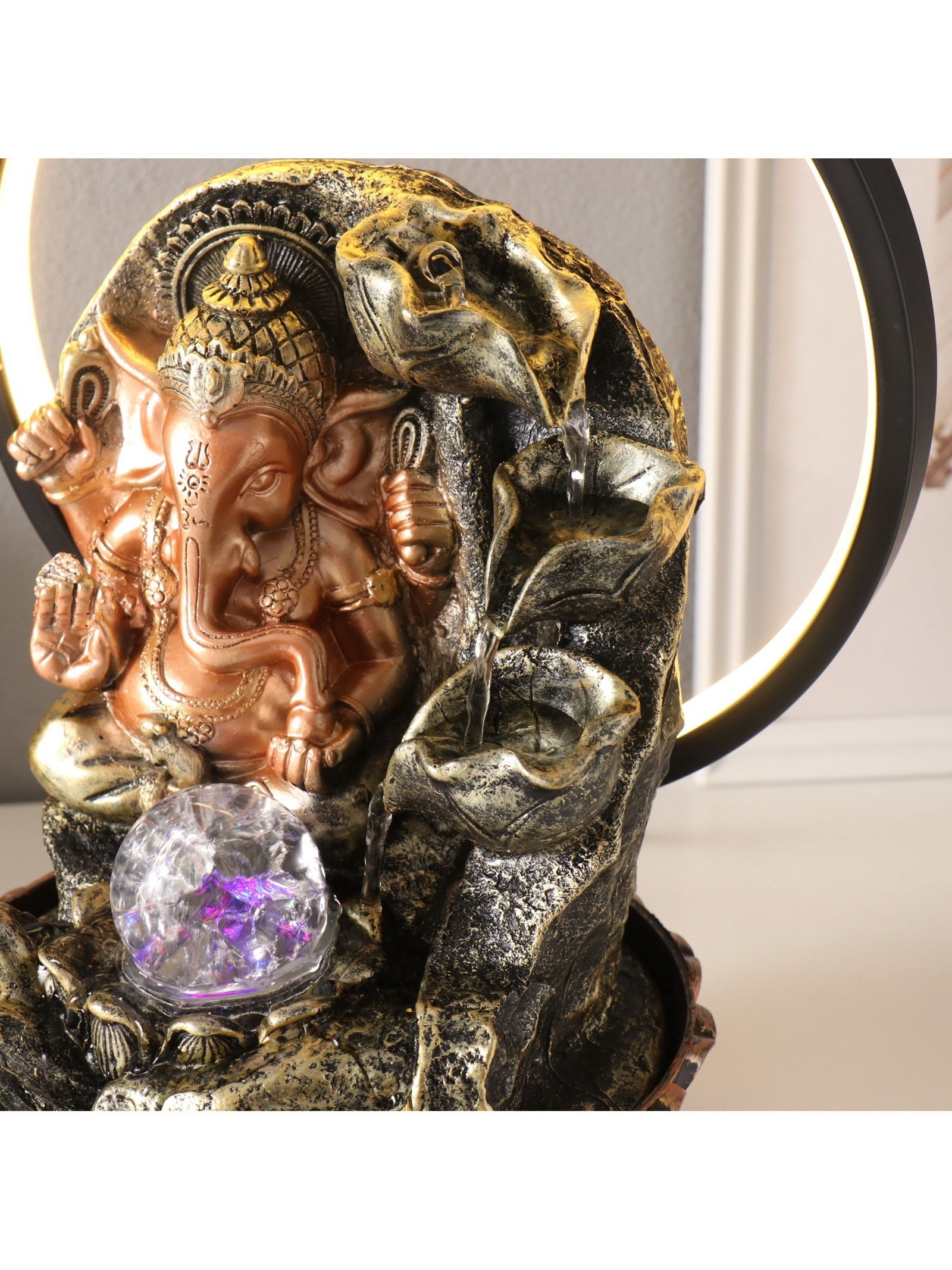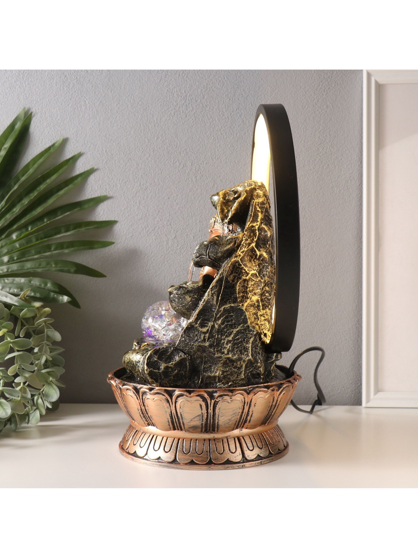 Фонтан настольный с подсветкой "Ганеша в золотом около водопада - Рука", от сети, 25x20x34 см, 20x25x34 см., Китай
