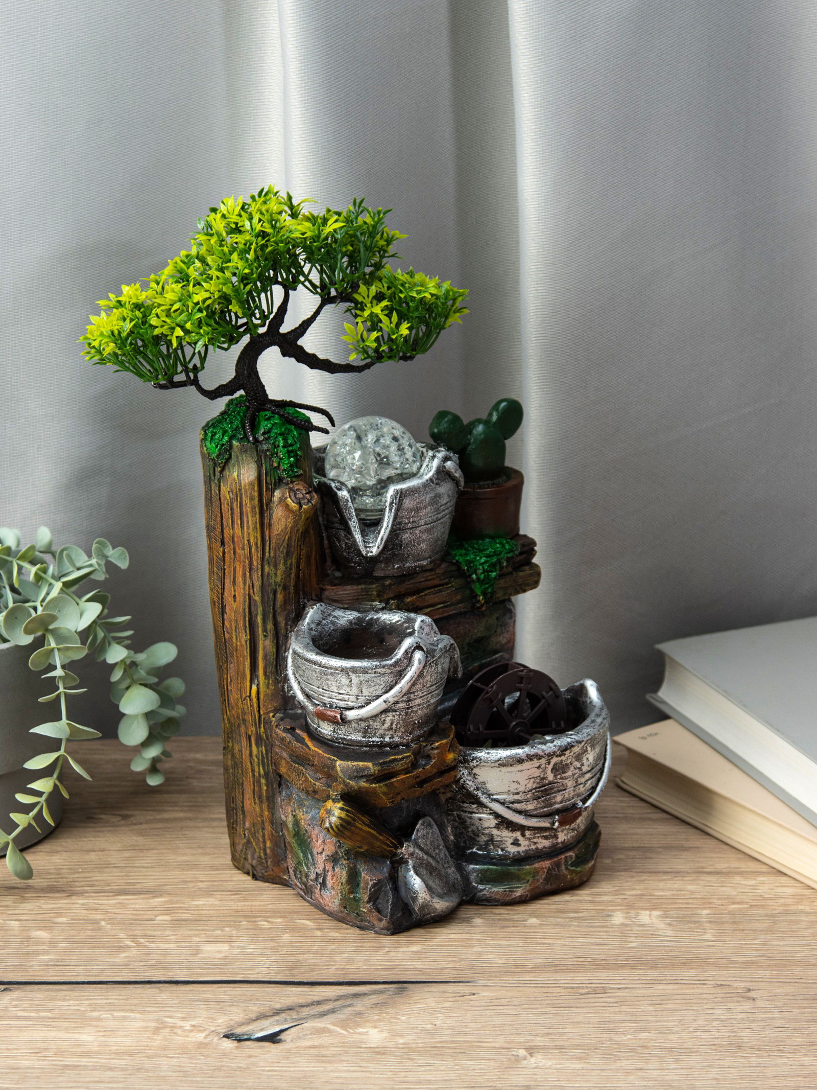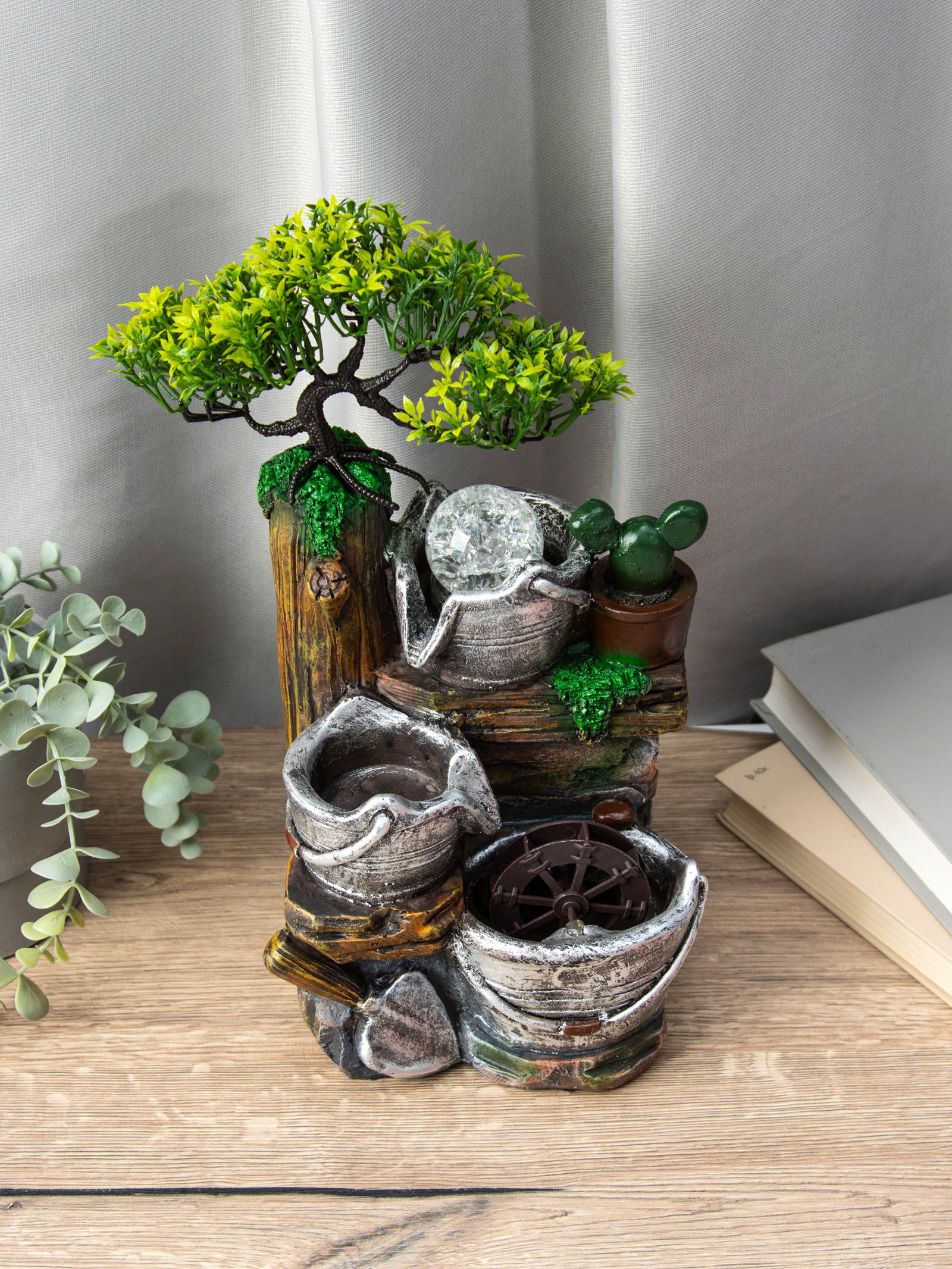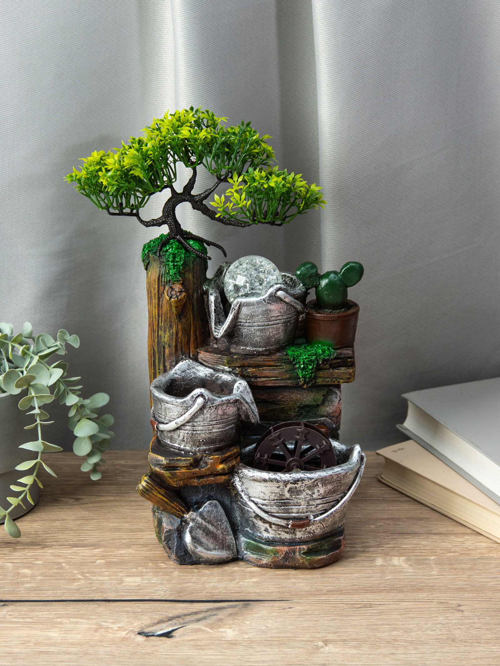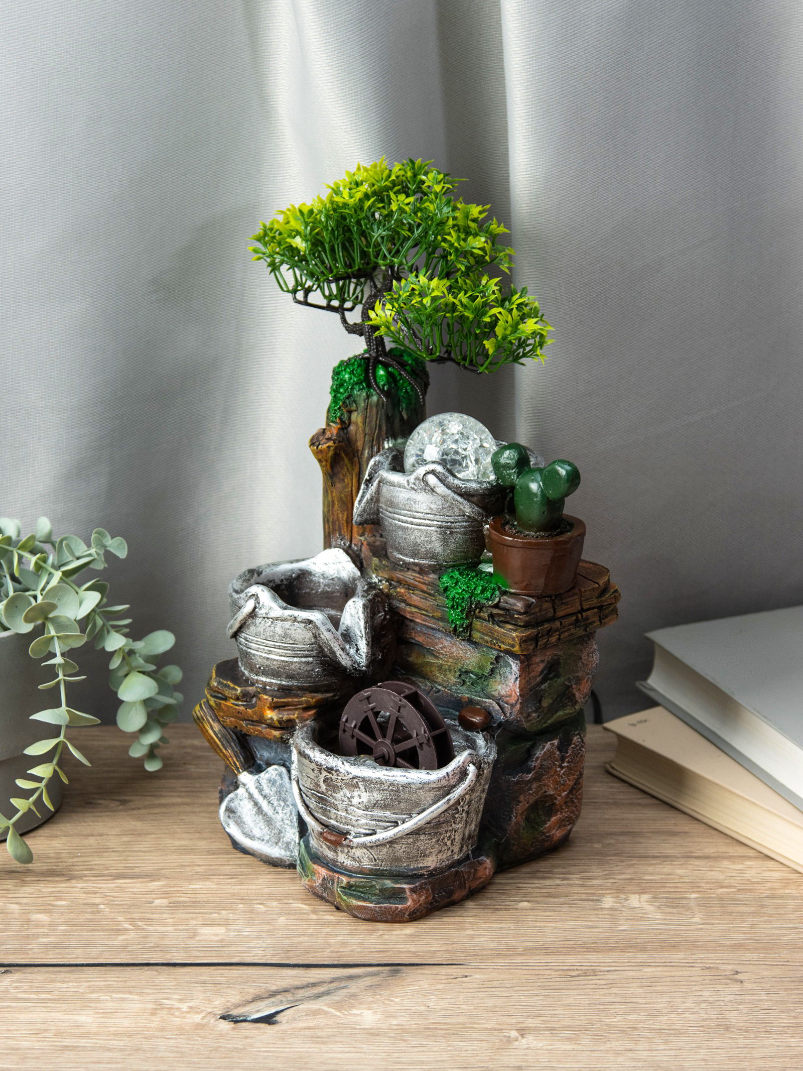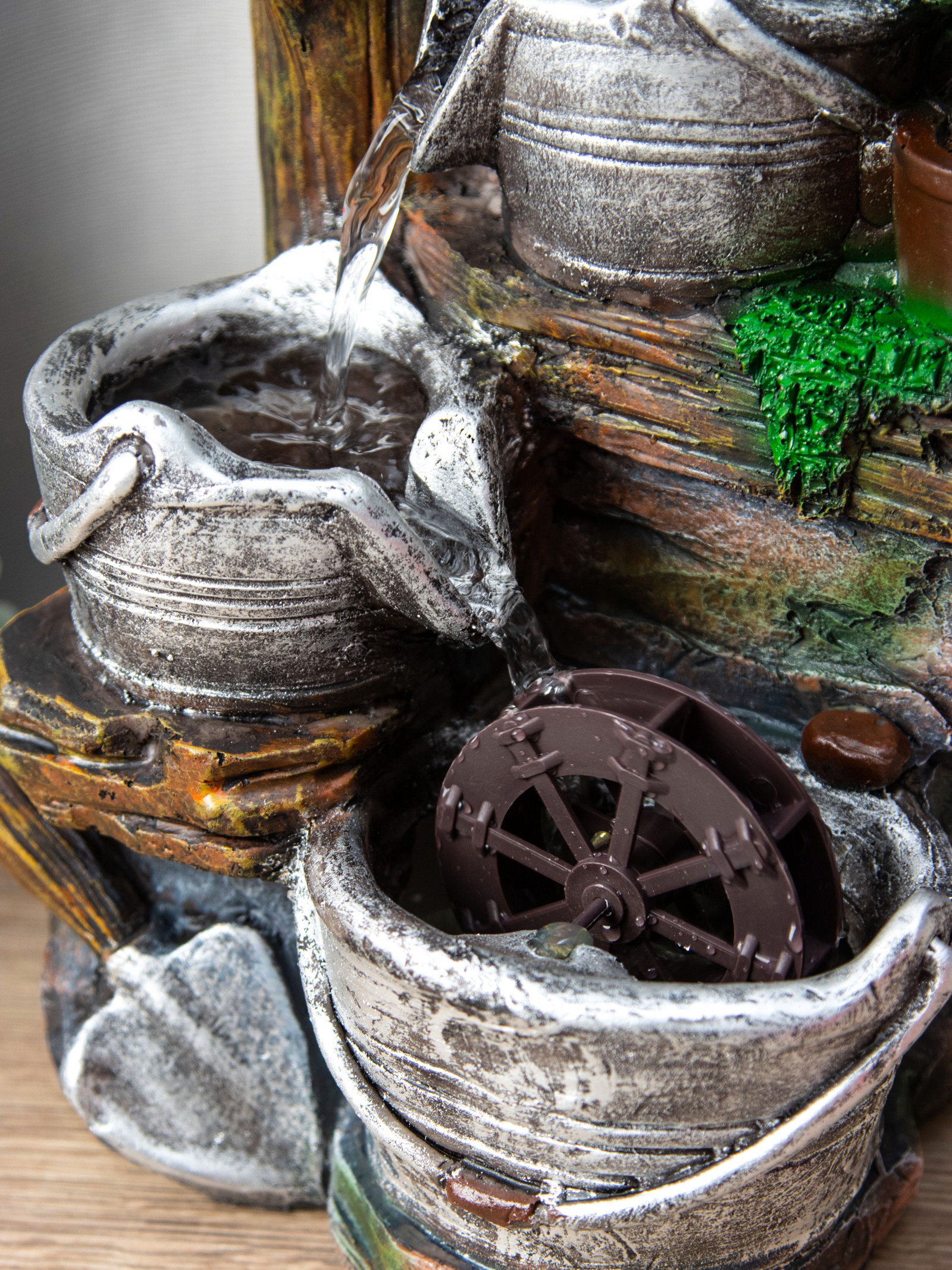 Фонтан "Ведёрки под деревом", 32x15x13 см, с подсветкой, 15x13x32 см., Китай