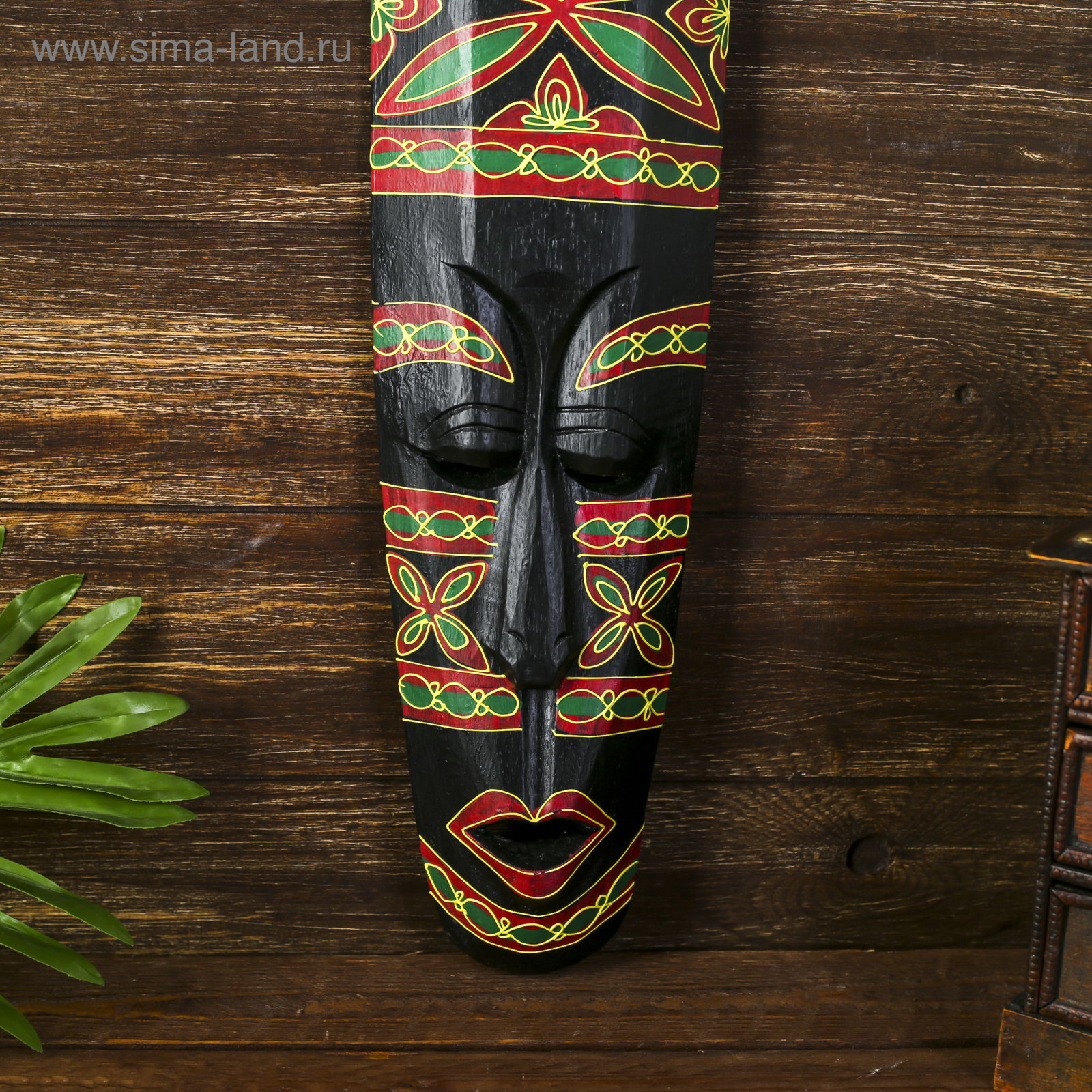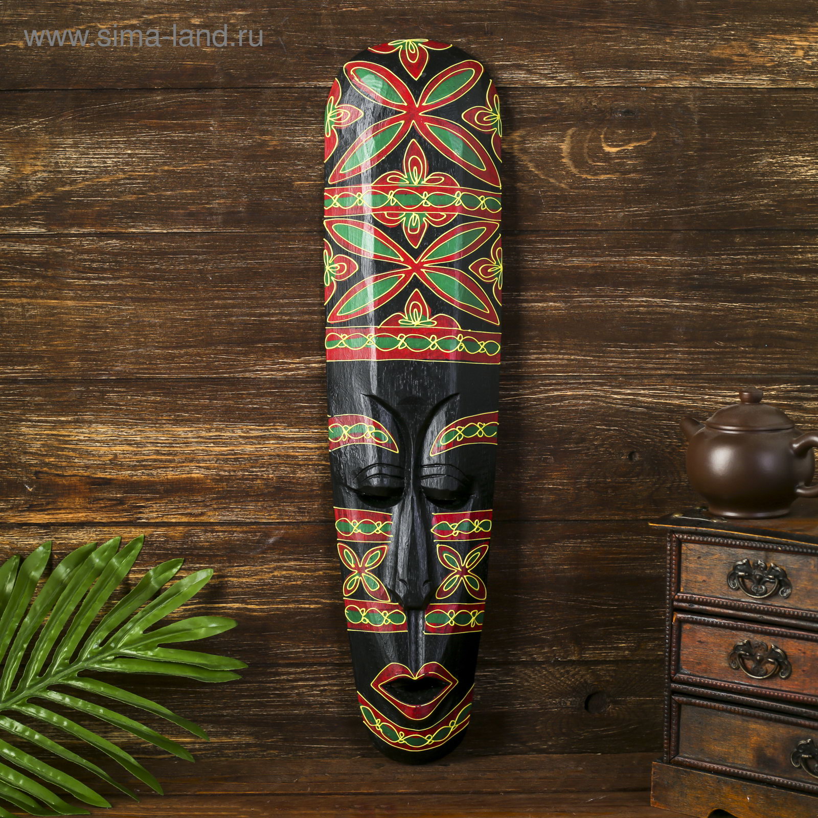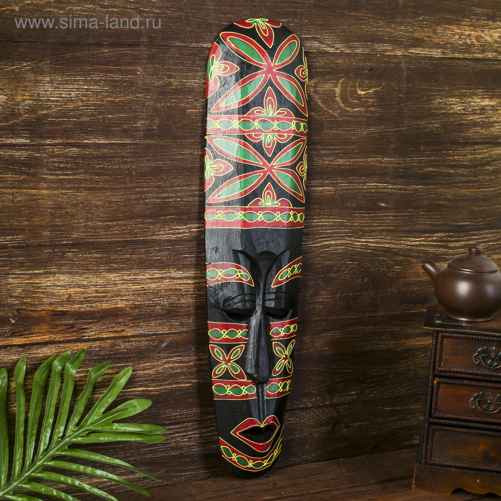 Маска настенная "Абориген с ярким узором", 3x12x50 см, дерево, 12x3x50 см., Индонезия