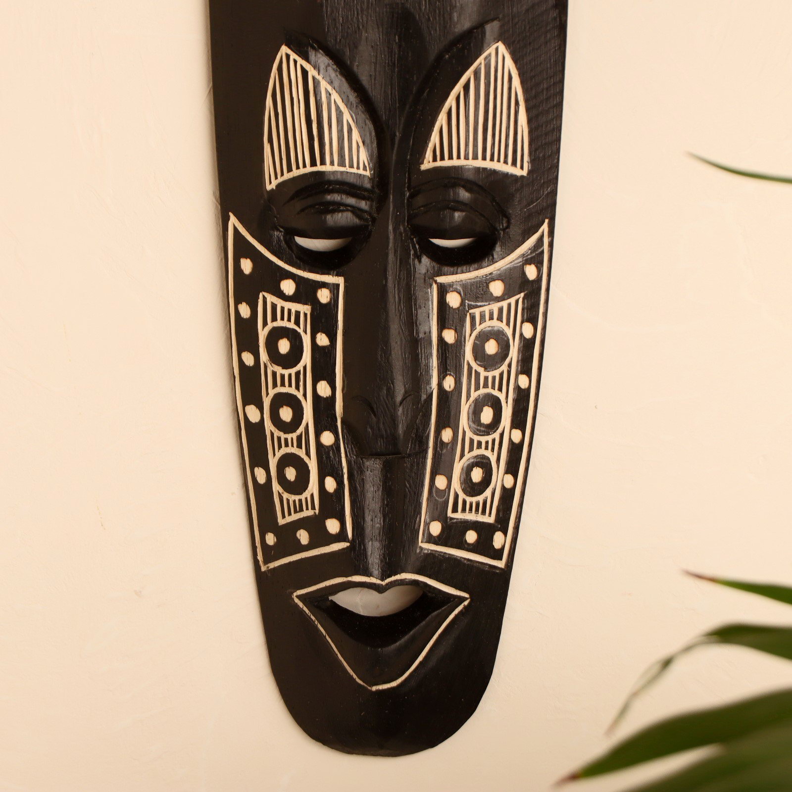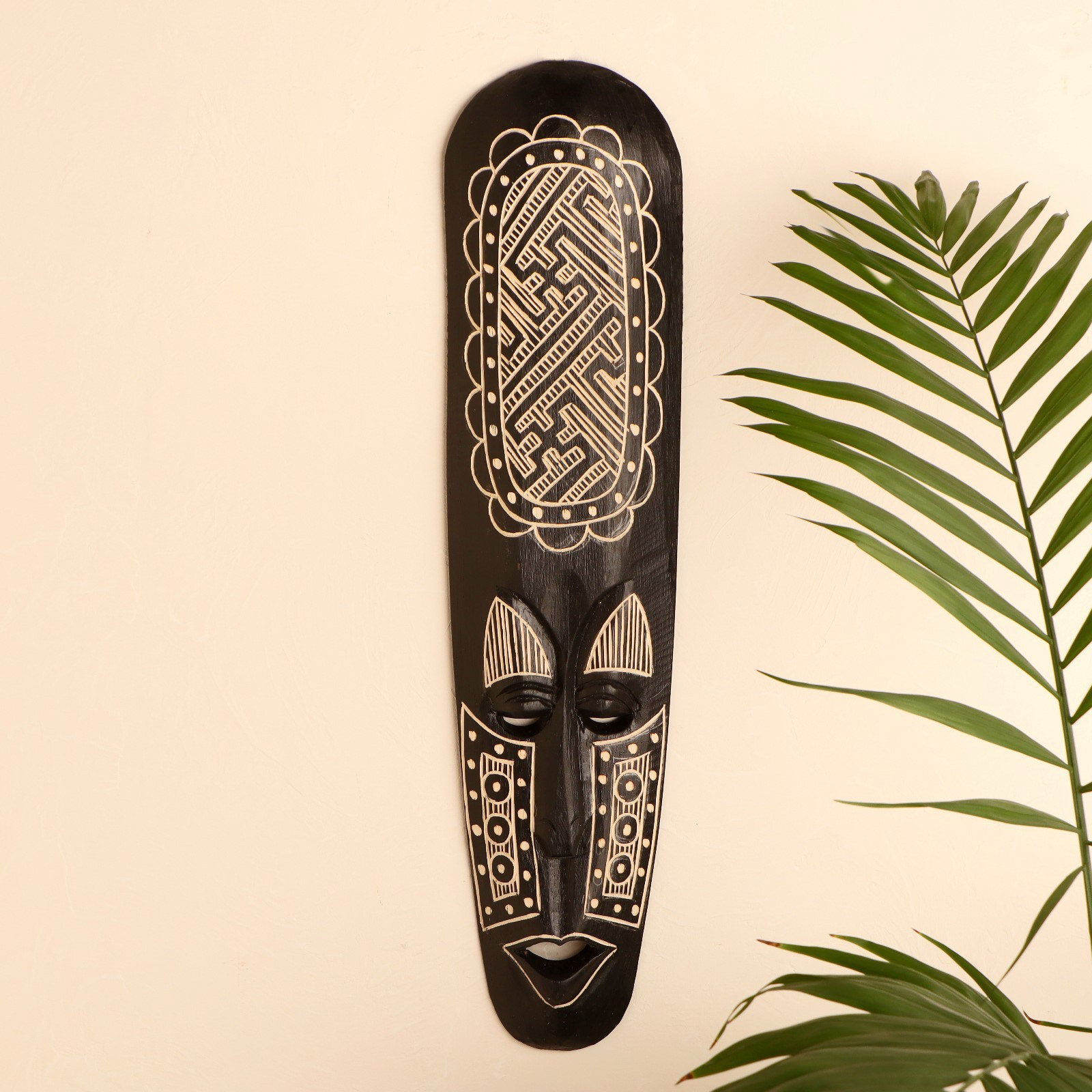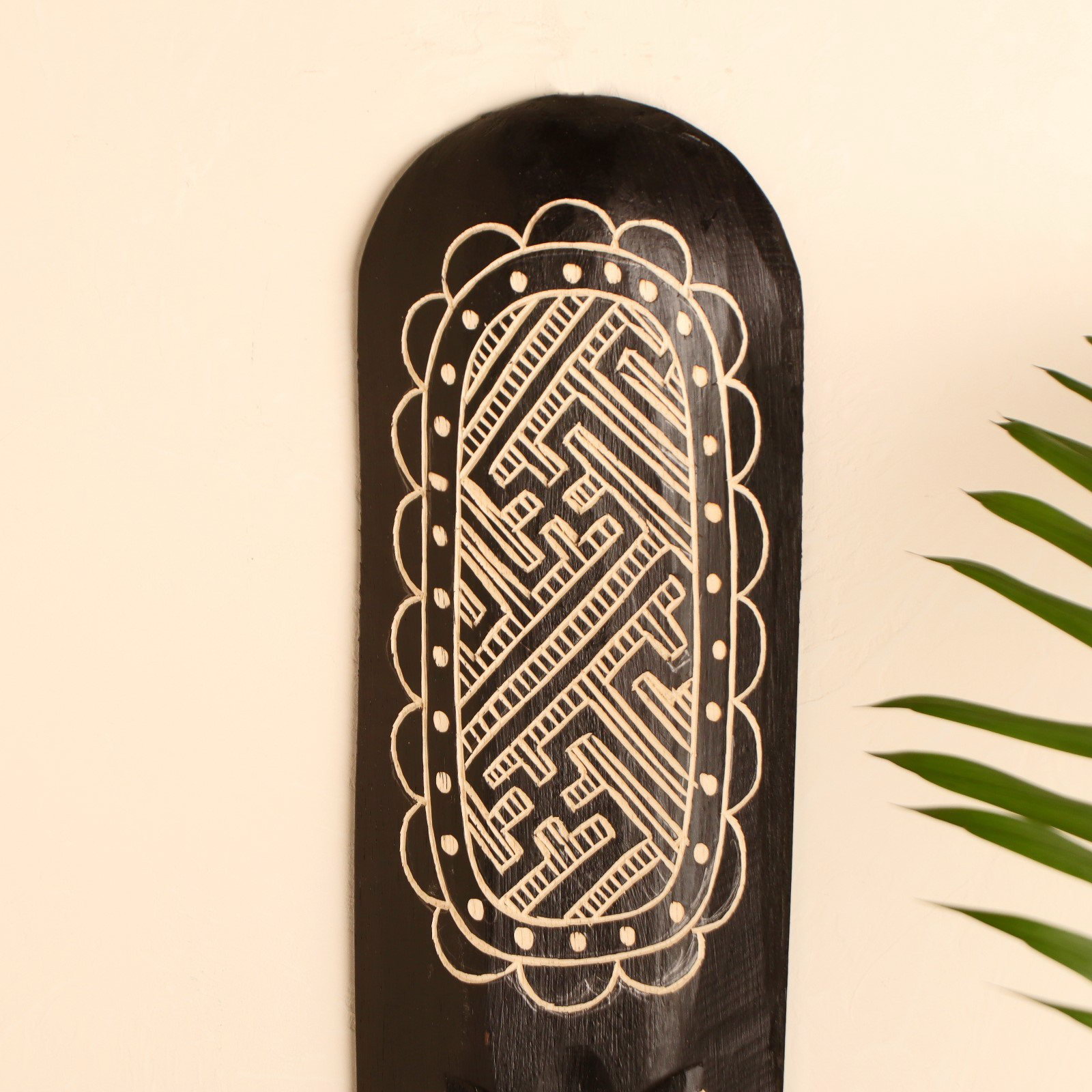 Маска настенная "Абориген чёрный с геометрическим узором", 3x12x50 см, дерево, 12x3x50 см., Индонезия
