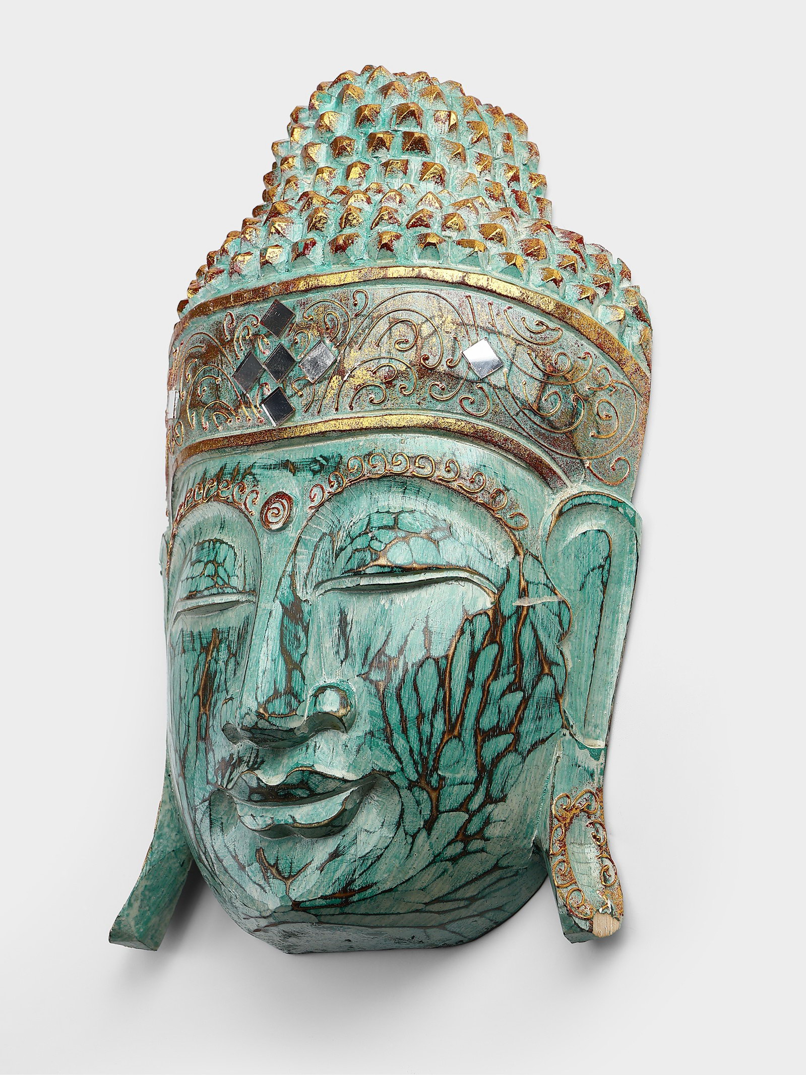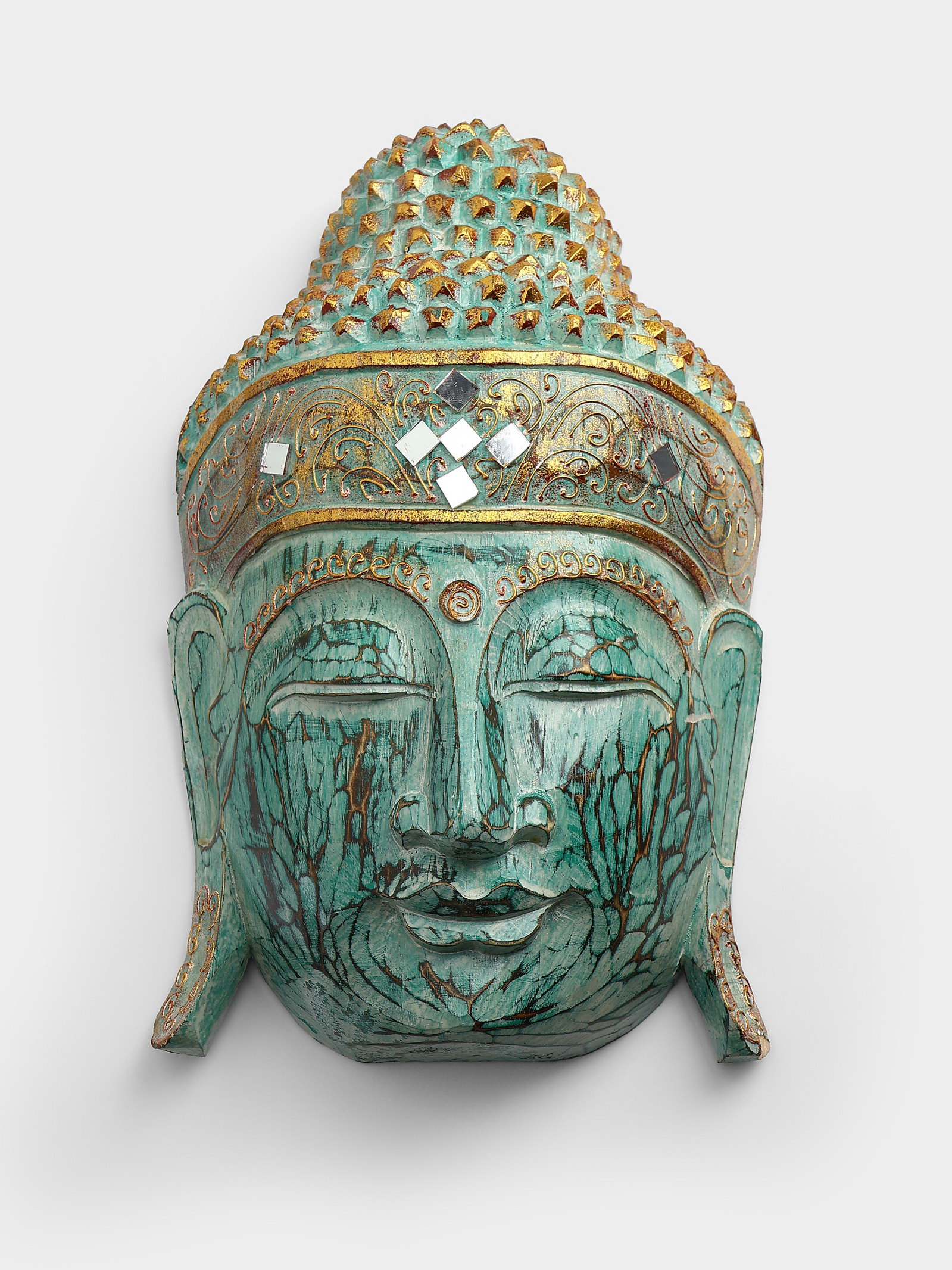 Сувенир "Голова Будды" дерево 40 см, цв. бирюзовый, 12x40x40 см., Индонезия