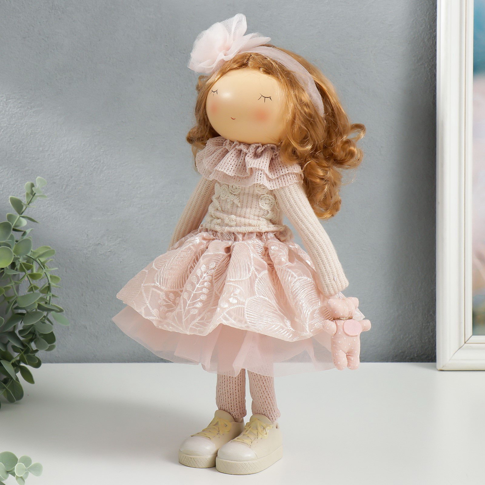 Интерьерная кукла текстильная "Малышка Ася в розовом, с медведем", 36x13x15.5 см, 13x15.5x36 см., Китай