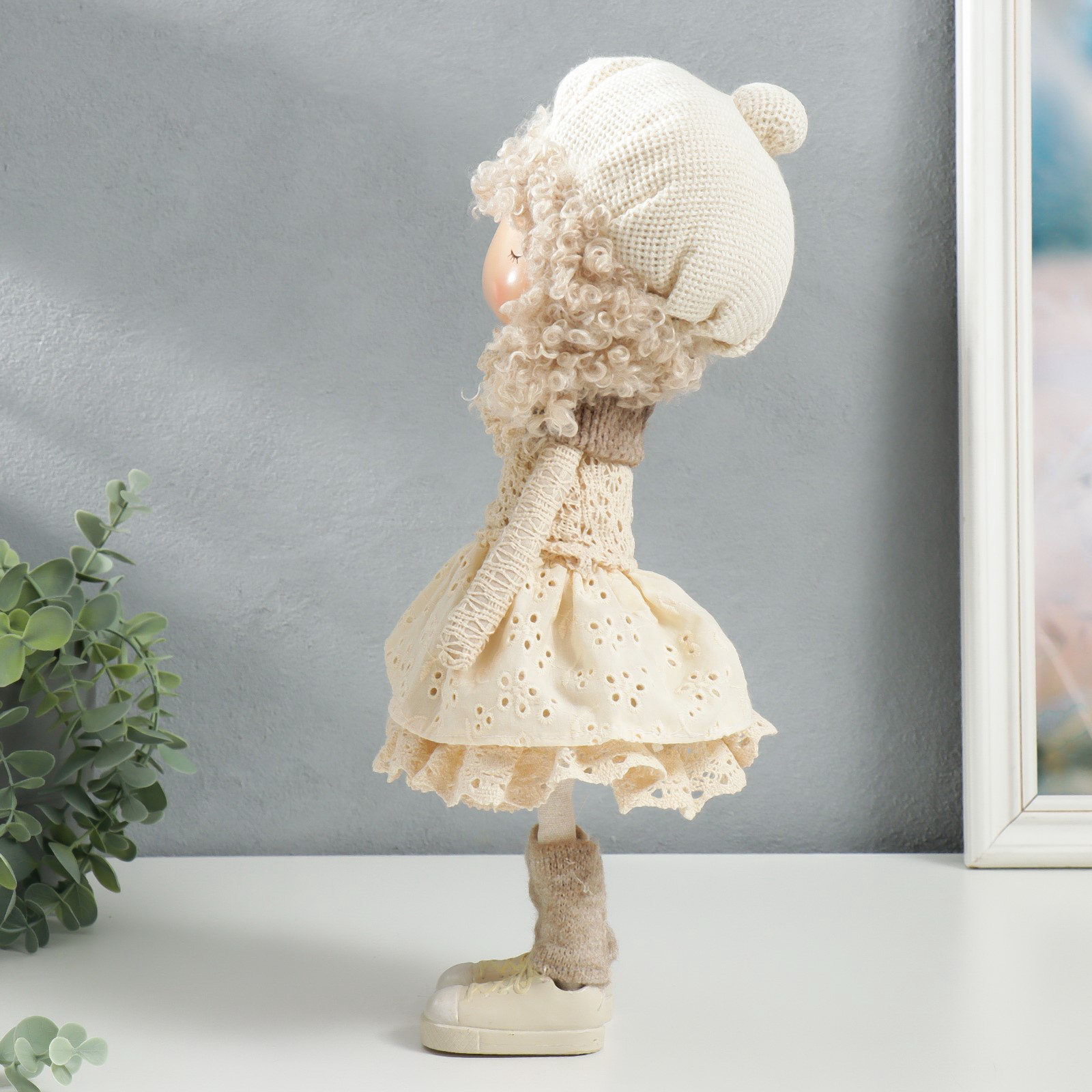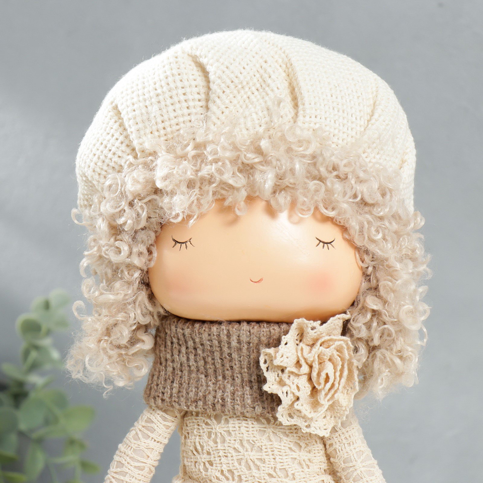 Интерьерная кукла текстильная "Малышка в берете, в бежевом наряде, с цветком", 36.5x13x17 см, 13x17x36.5 см., Китай