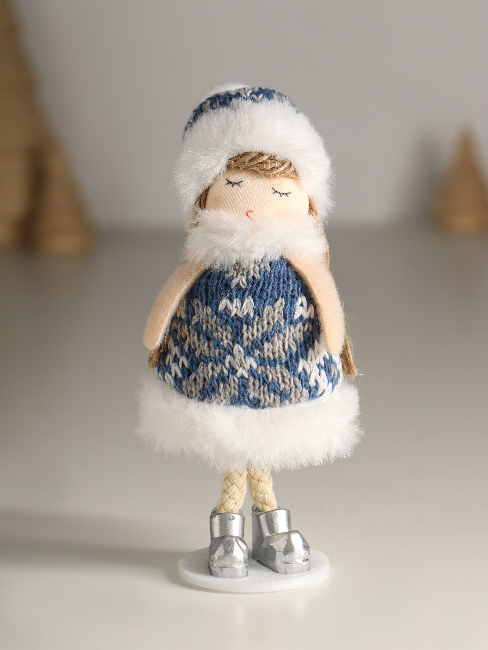 Интерьерная кукла текстильная "Девочка в вязаной шубке", 6x6x14 см, 6x6x14 см., Китай