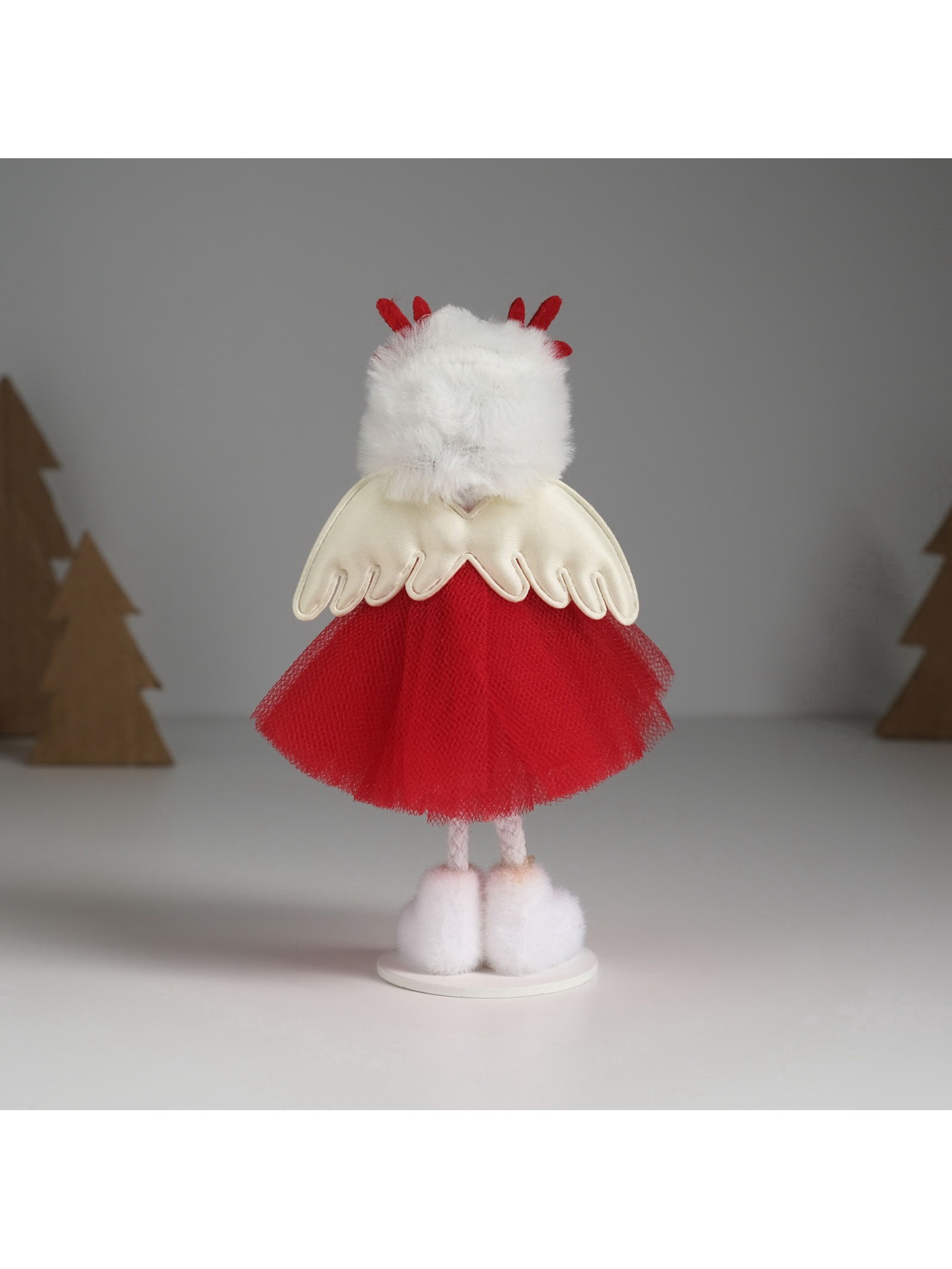 Интерьерная кукла текстильная "Ангелочек в красном платье в шапке с оленьими рожками", 5x5.5x16.5 см, 5.5x5x16.5 см., Китай