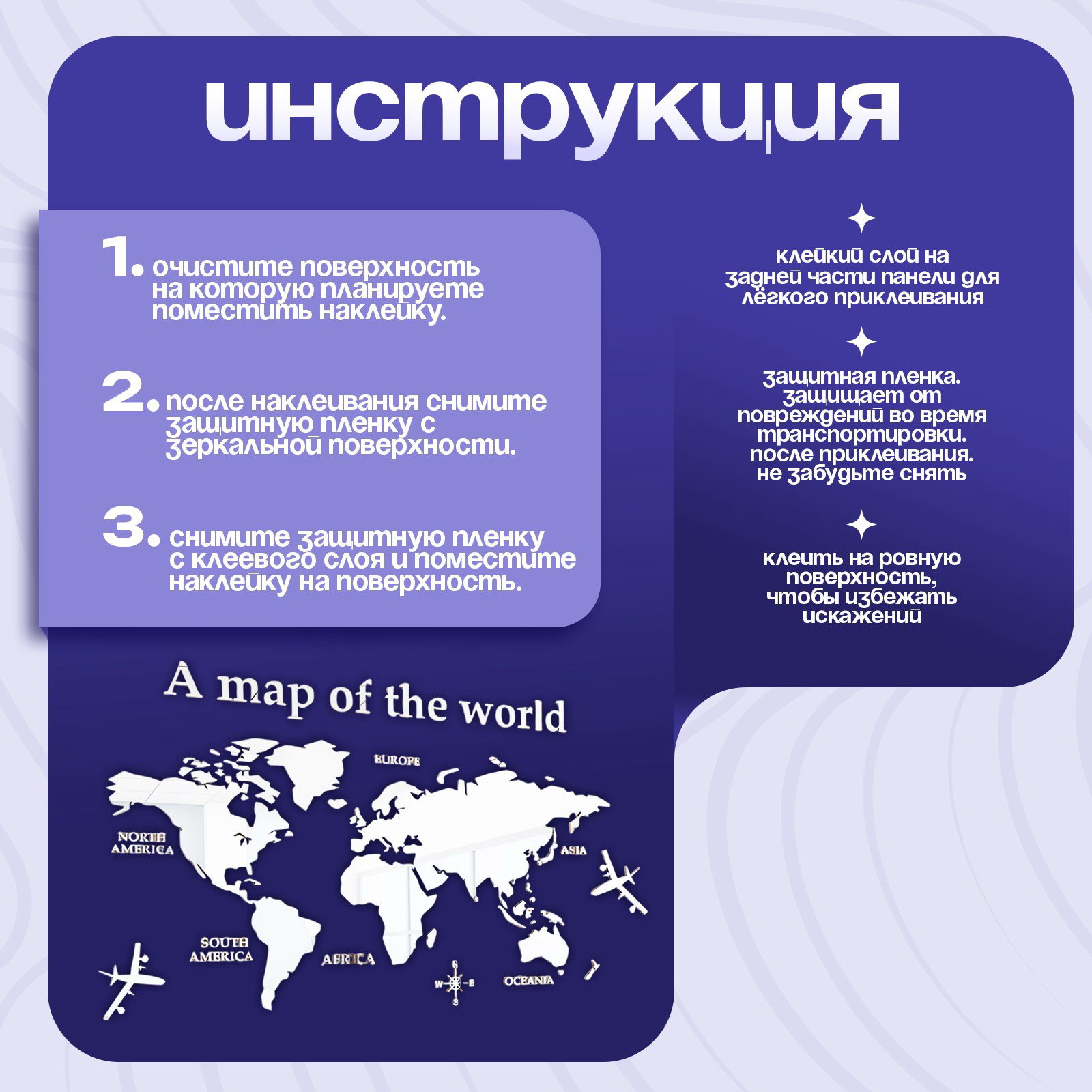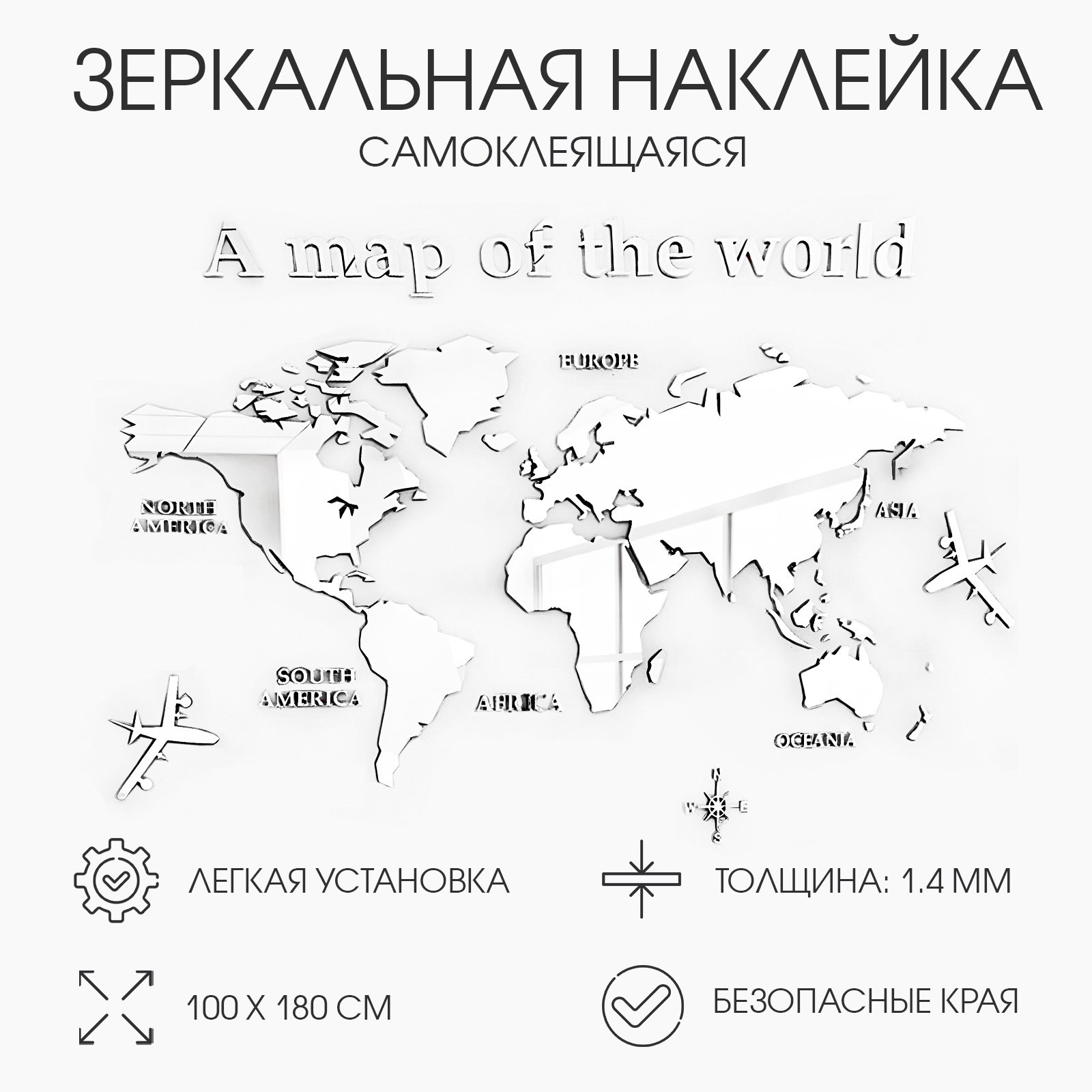 Наклейка интерьерная "Карта мира", зеркальная, декор на стену, панно, 100x180 см, TAKE IT EASY, Китай