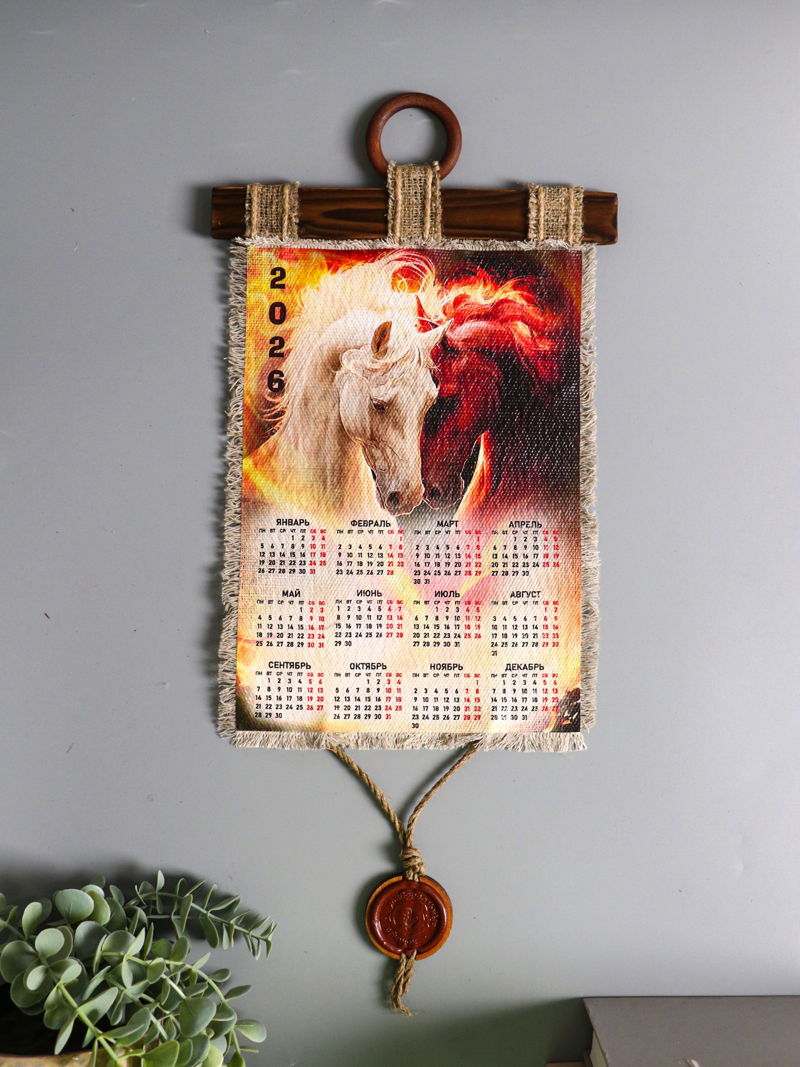 Декор настенный, панно "Календарь подвесной 2026. Слияние лошадей", 23.5x52 см, Россия