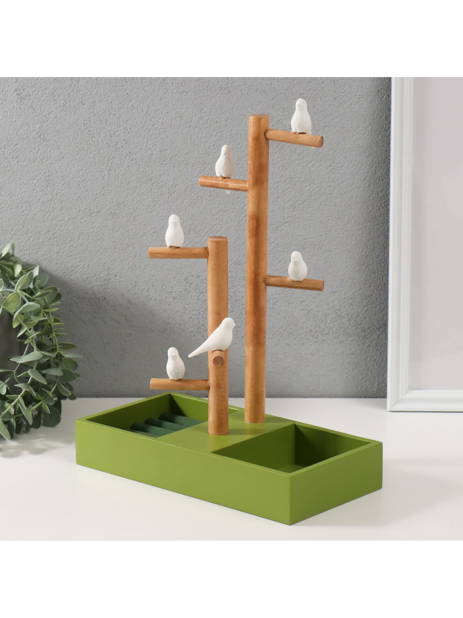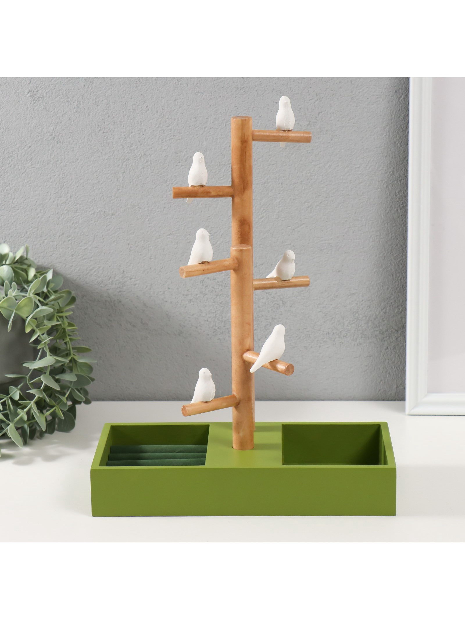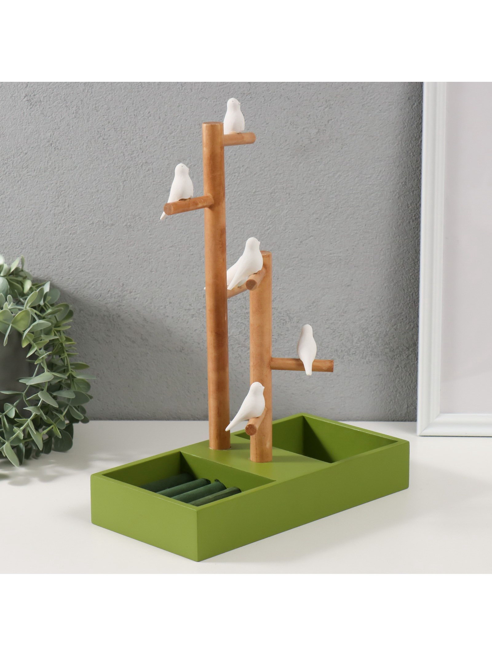Подставка для украшений "Птички на дереве", зелёный, 24x12x32 см, 12x24x32 см., Китай