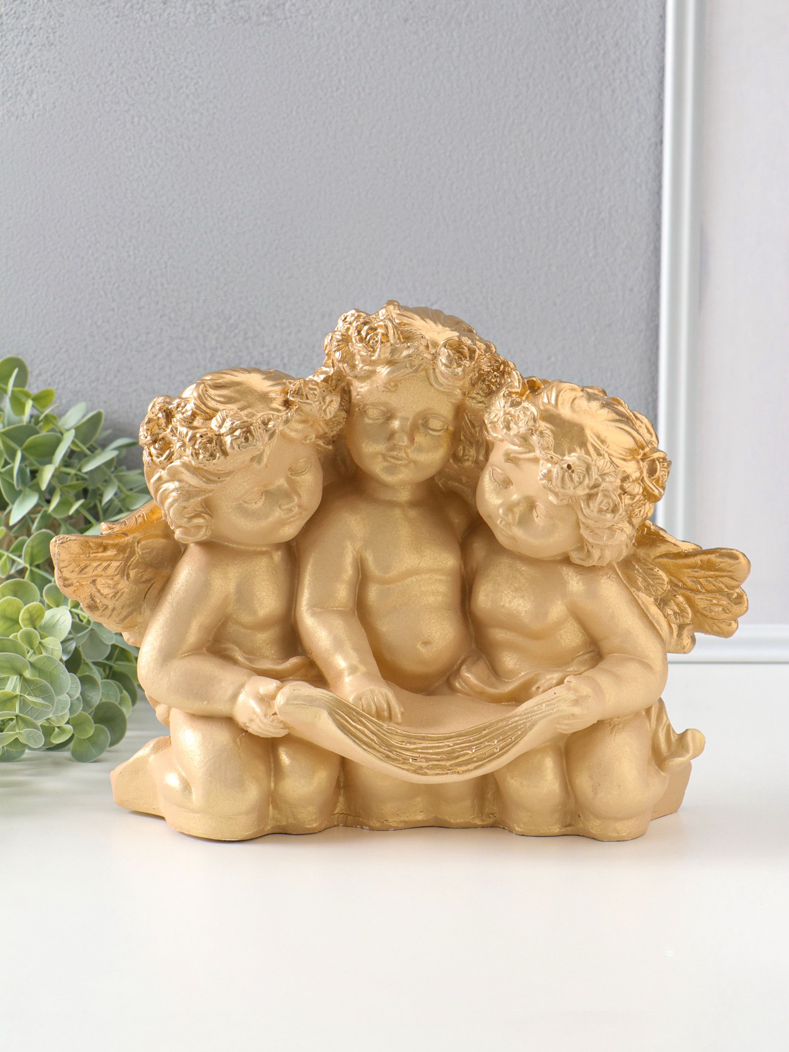 Фигура с подставкой под мелочи "Три ангела" слоновая кость, 30х23х14 см, Россия