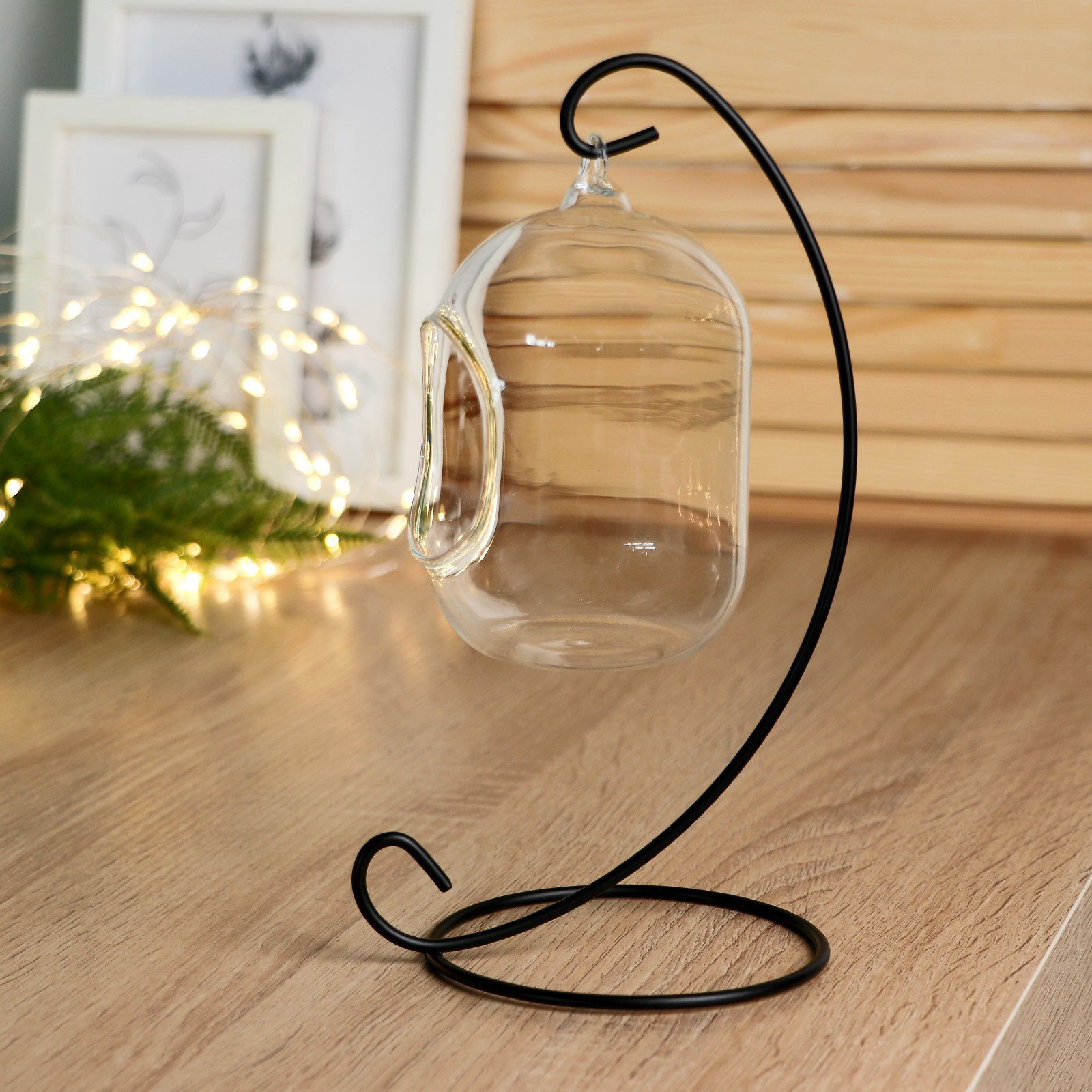 Флорариум "Цилиндр", на подвесе, 12x8 см, h=23 см, стекло, прозрачный, чёрный, 8x12x23 см., Китай