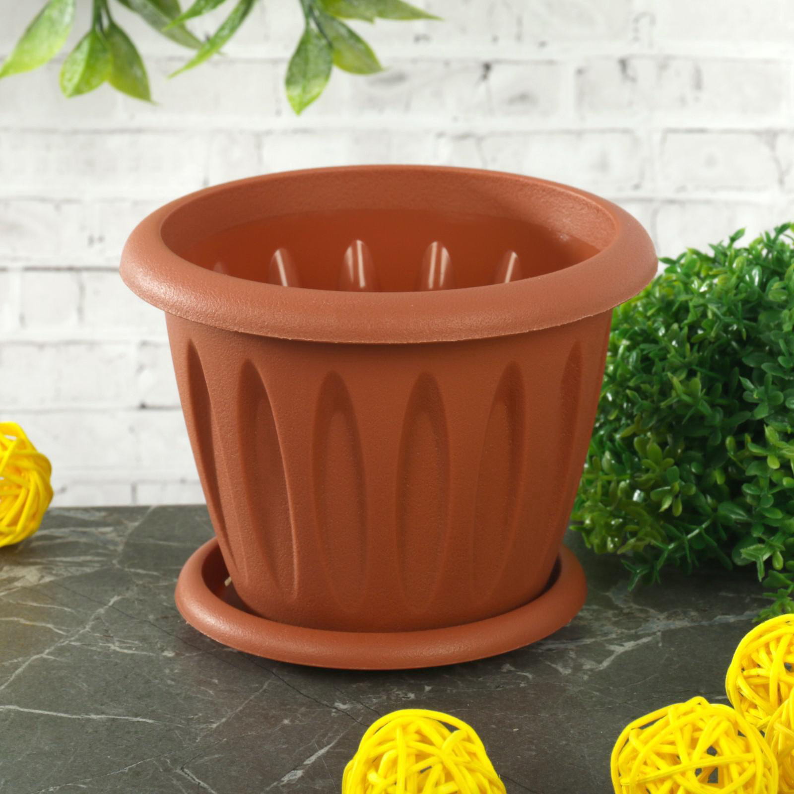 Горшок для цветов с поддоном "Фелиция", 400 мл, d=10.7 см, h=8.3 см, пластиковый, терракотовый, 10.5х10.5х8 см., Martika, Россия