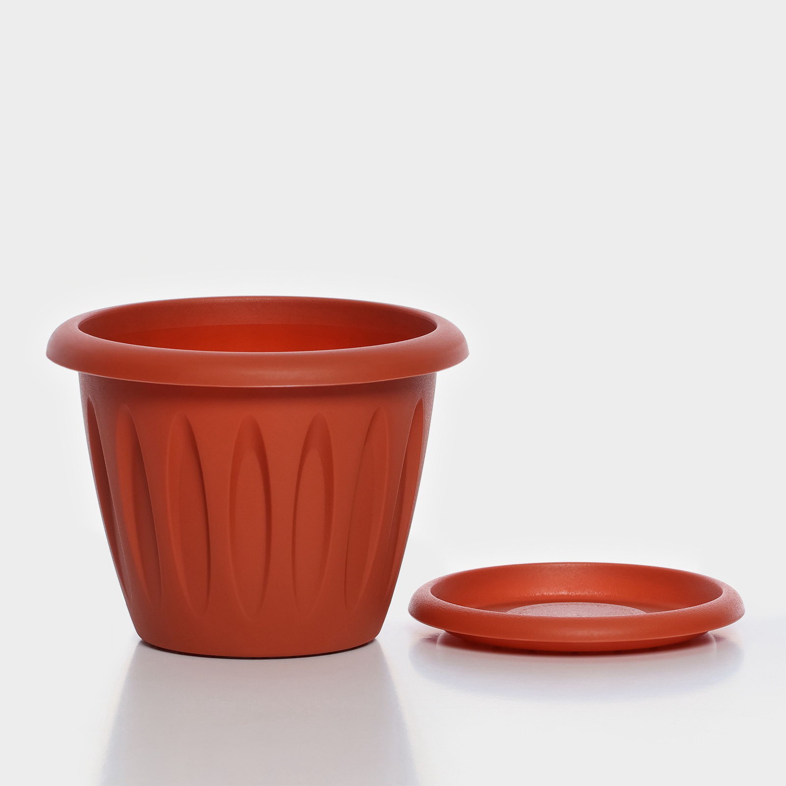 Горшок для цветов с поддоном "Фелиция", 1.8 л, d=17.7 см, h=13.6 см, пластиковый, терракотовый, 18х18х14 см., Martika, Россия