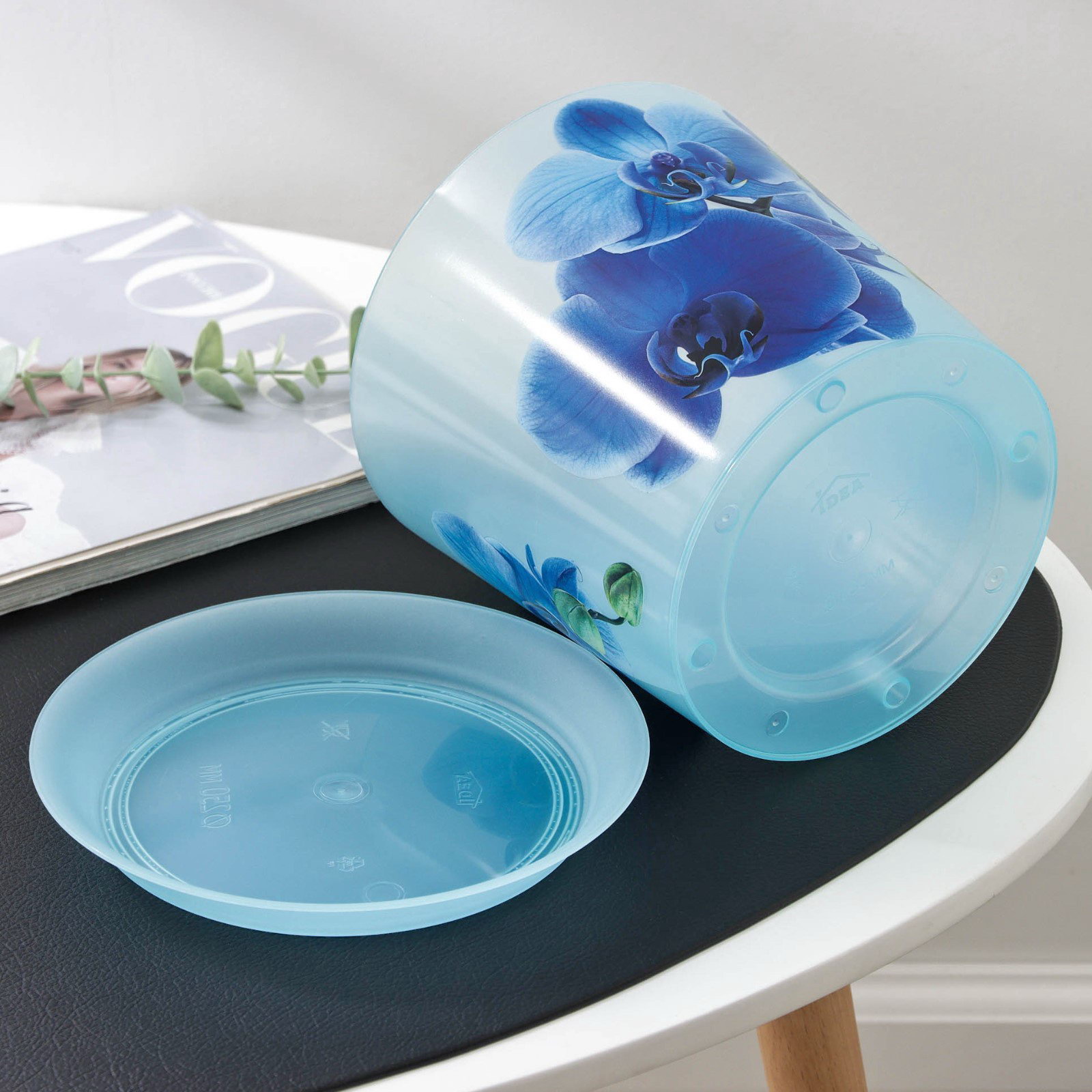 Горшок для орхидей с поддоном "Деко", 2.4 л, пластиковый, голубой, 16х16х15.5 см., IDEA, Россия