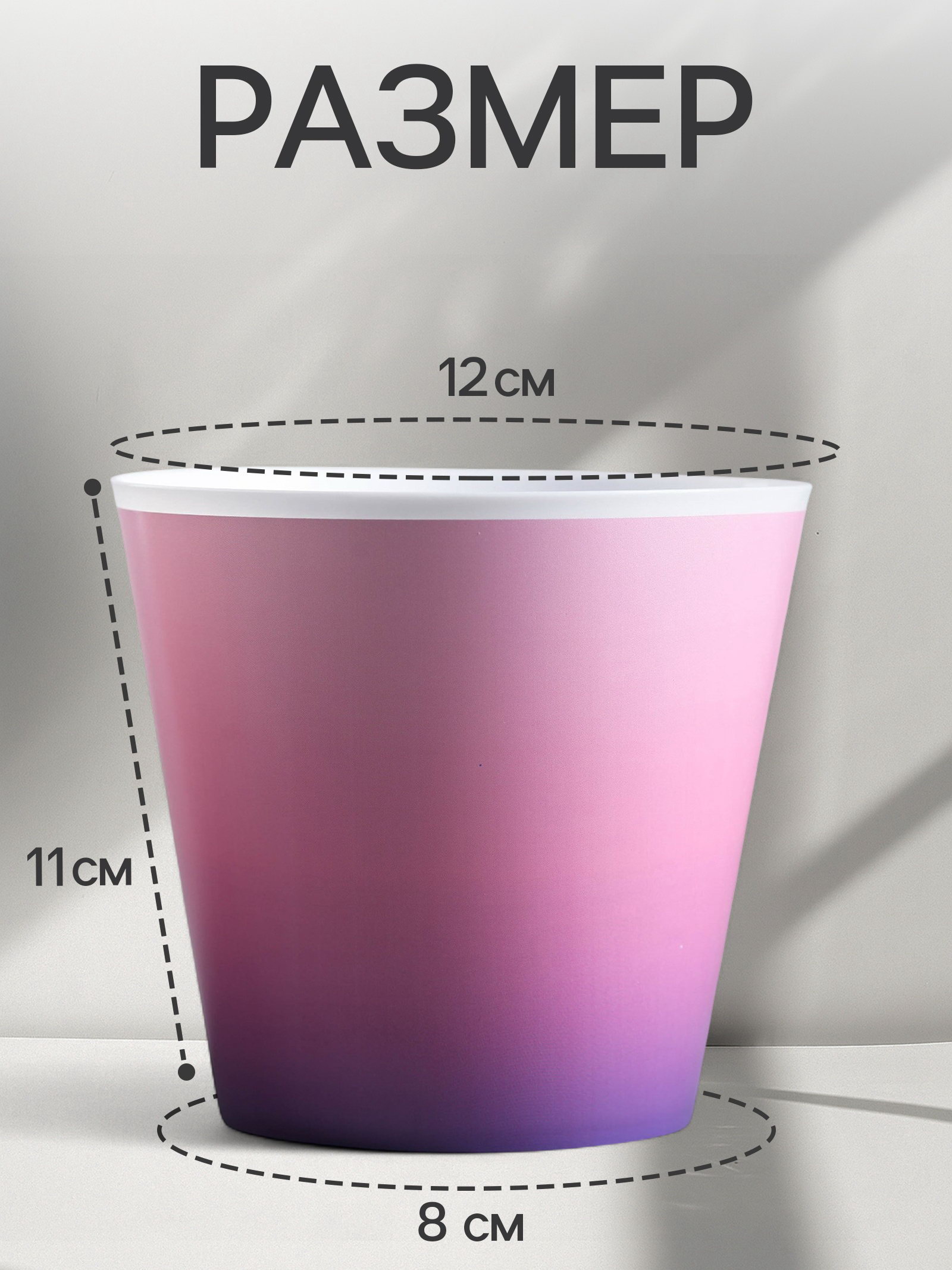 Кашпо для цветов "Розовый закат", 800 мл, d=12 см, h=11 см, пластиковое, 12 см., Дарите Счастье, Россия