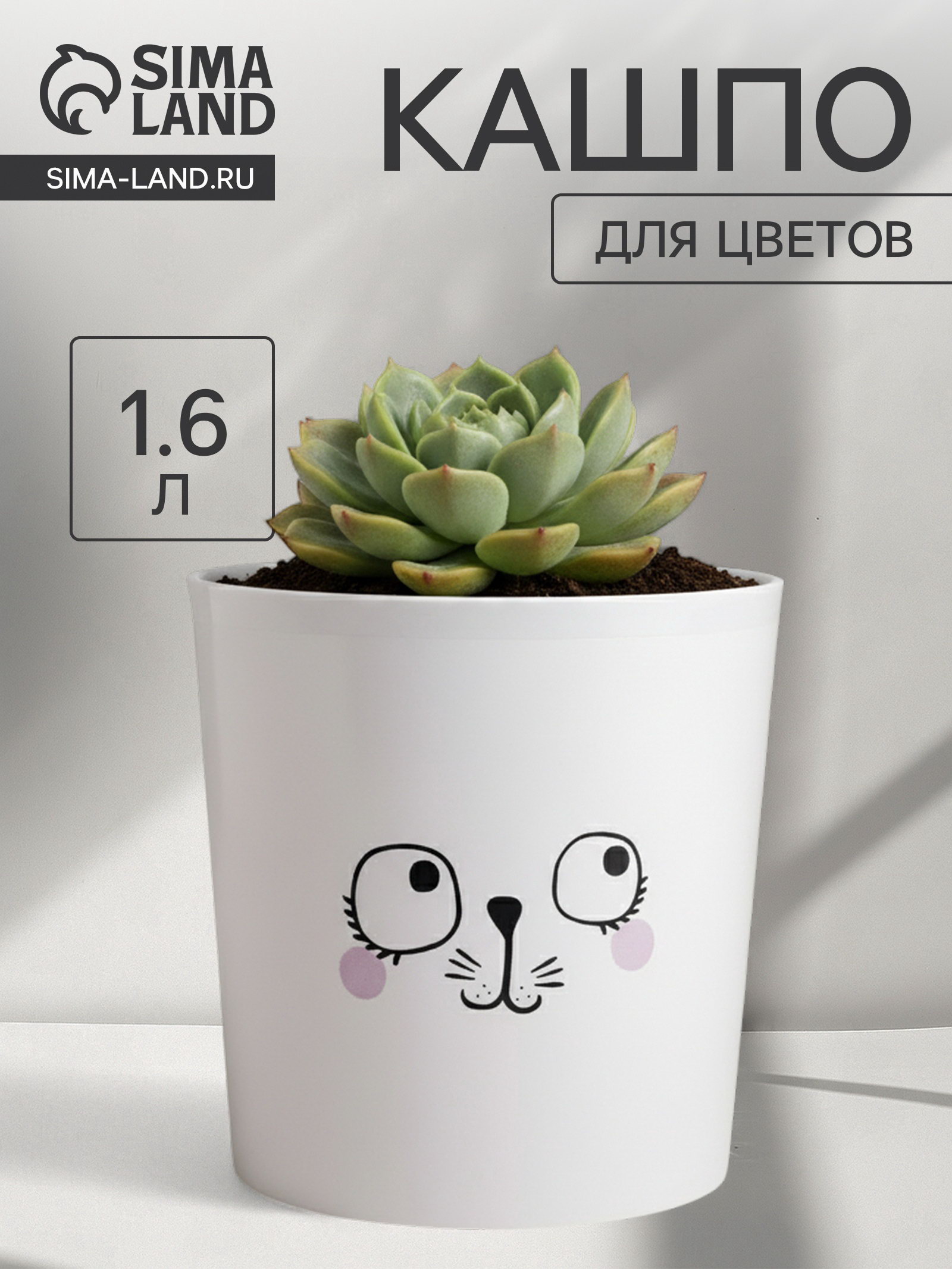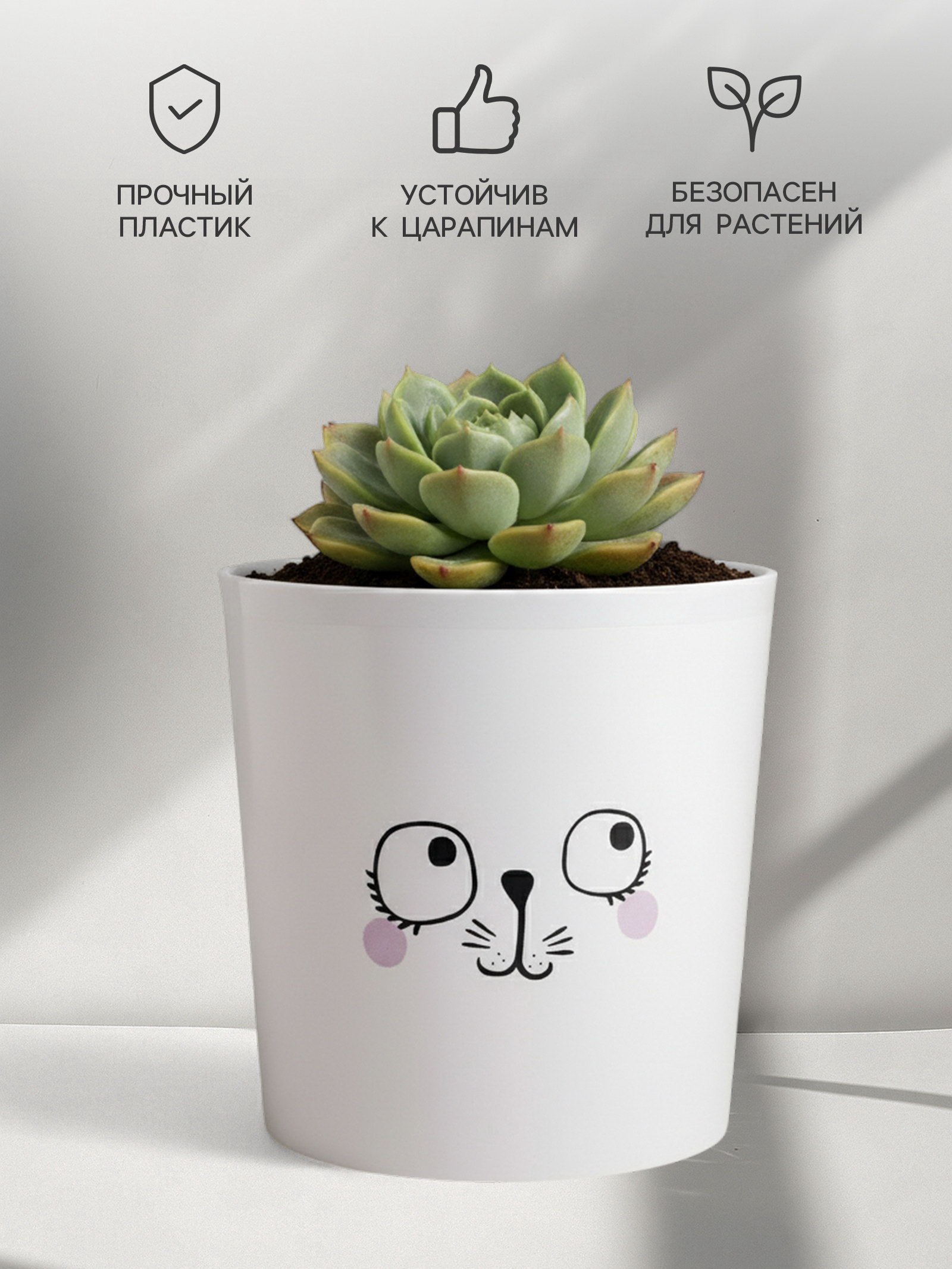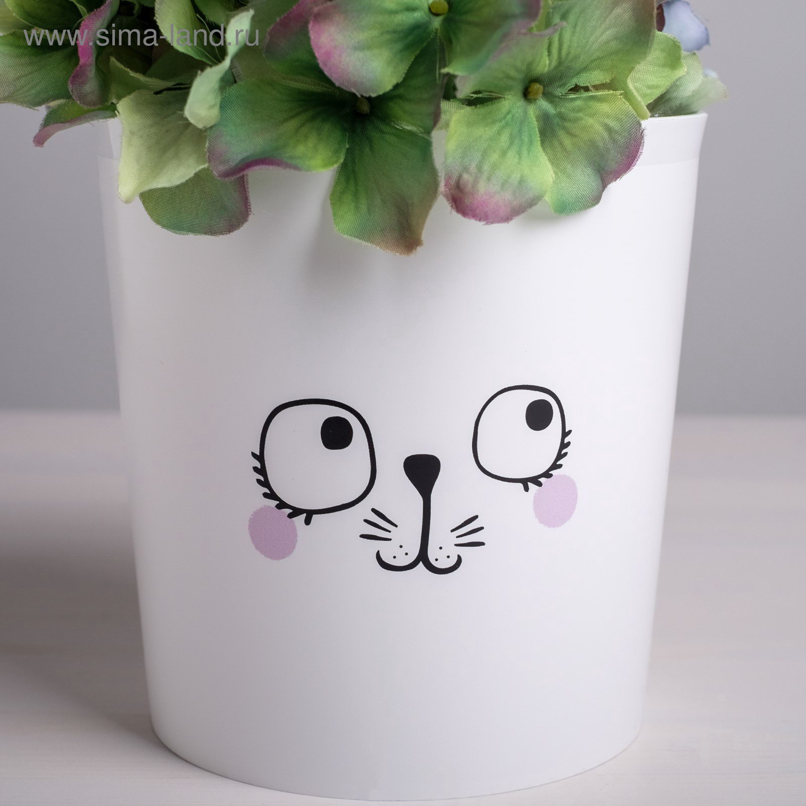 Кашпо для цветов "Мордочка", 1.6 л, d=14 см, h=14 см, пластиковое, 14 см., Дарите Счастье, Россия