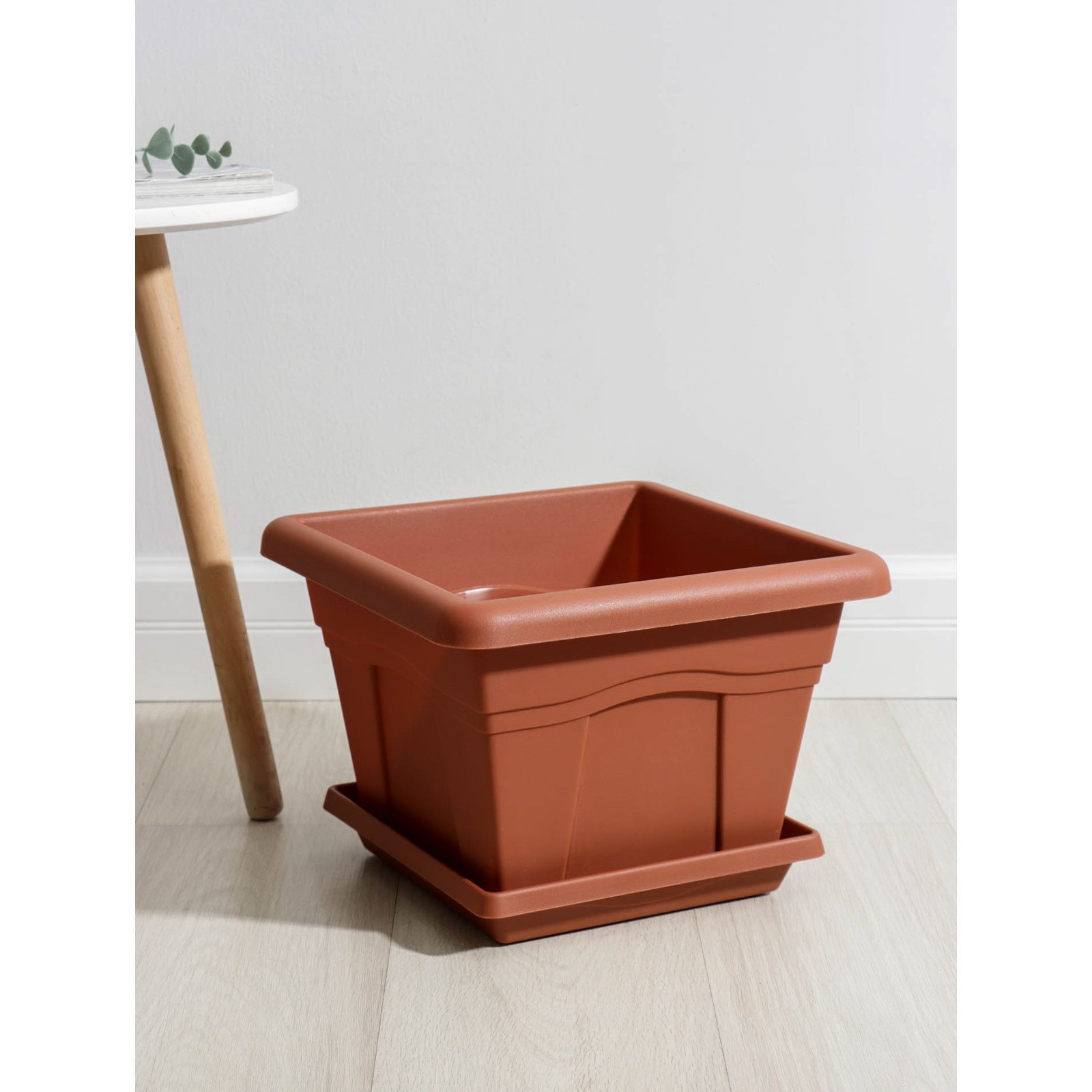 Горшок для цветов с поддоном "Квадро", 12.2 л, пластиковый, терракотовый, 32х32х23 см., Martika, Россия