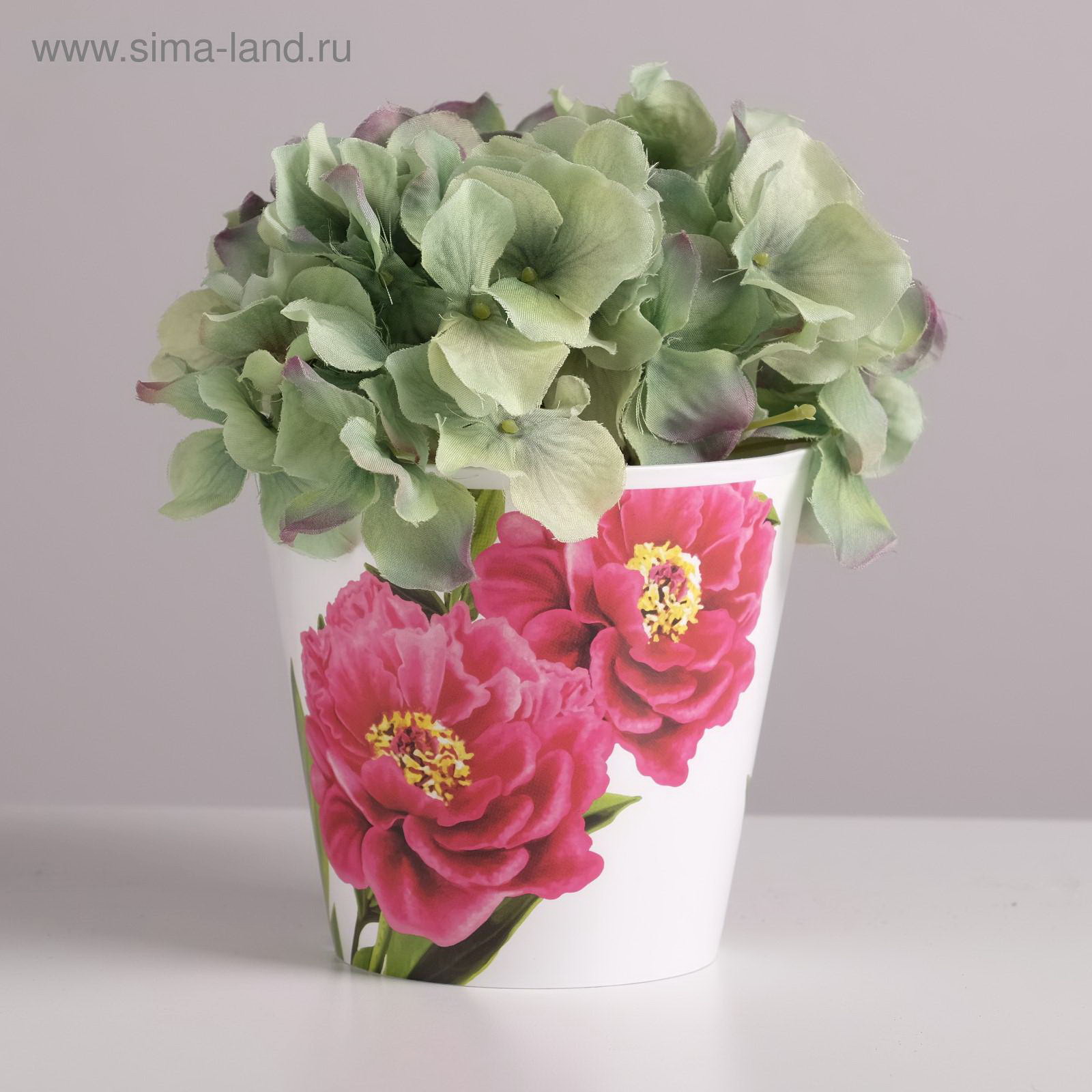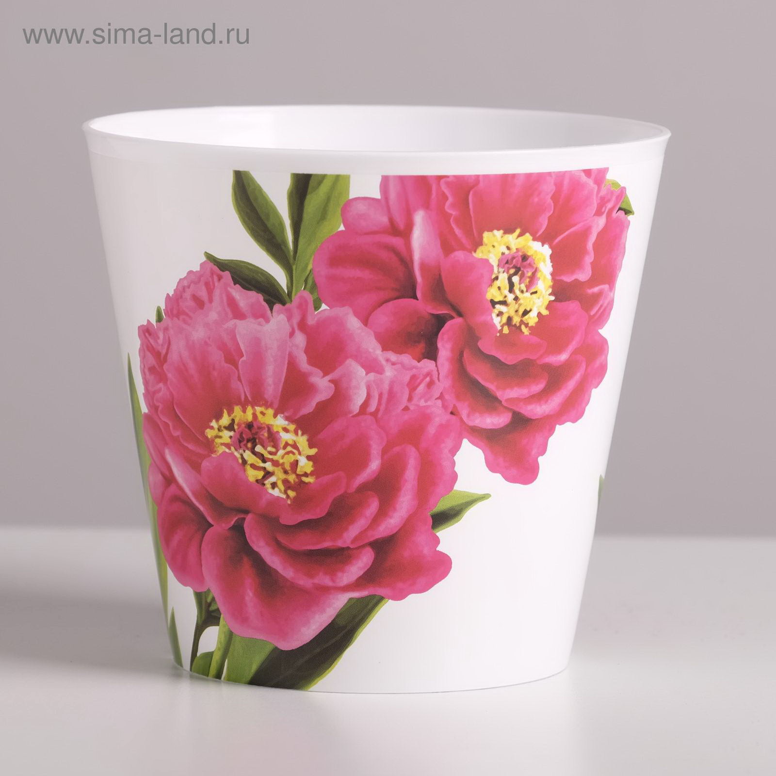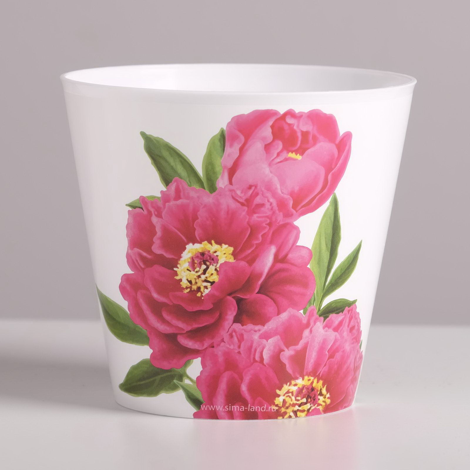 Кашпо для цветов "Пионы", 800 мл, d=11 см, h=12 см, пластиковое, 12х12х11 см., Дарите Счастье, Россия