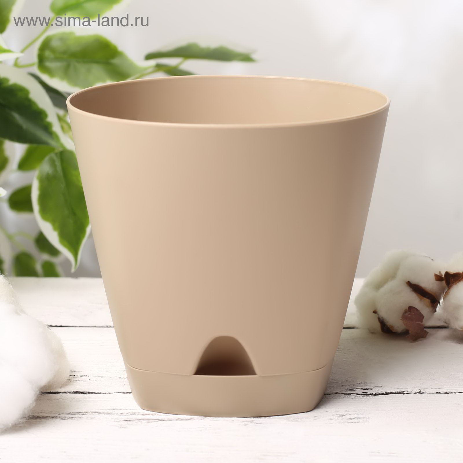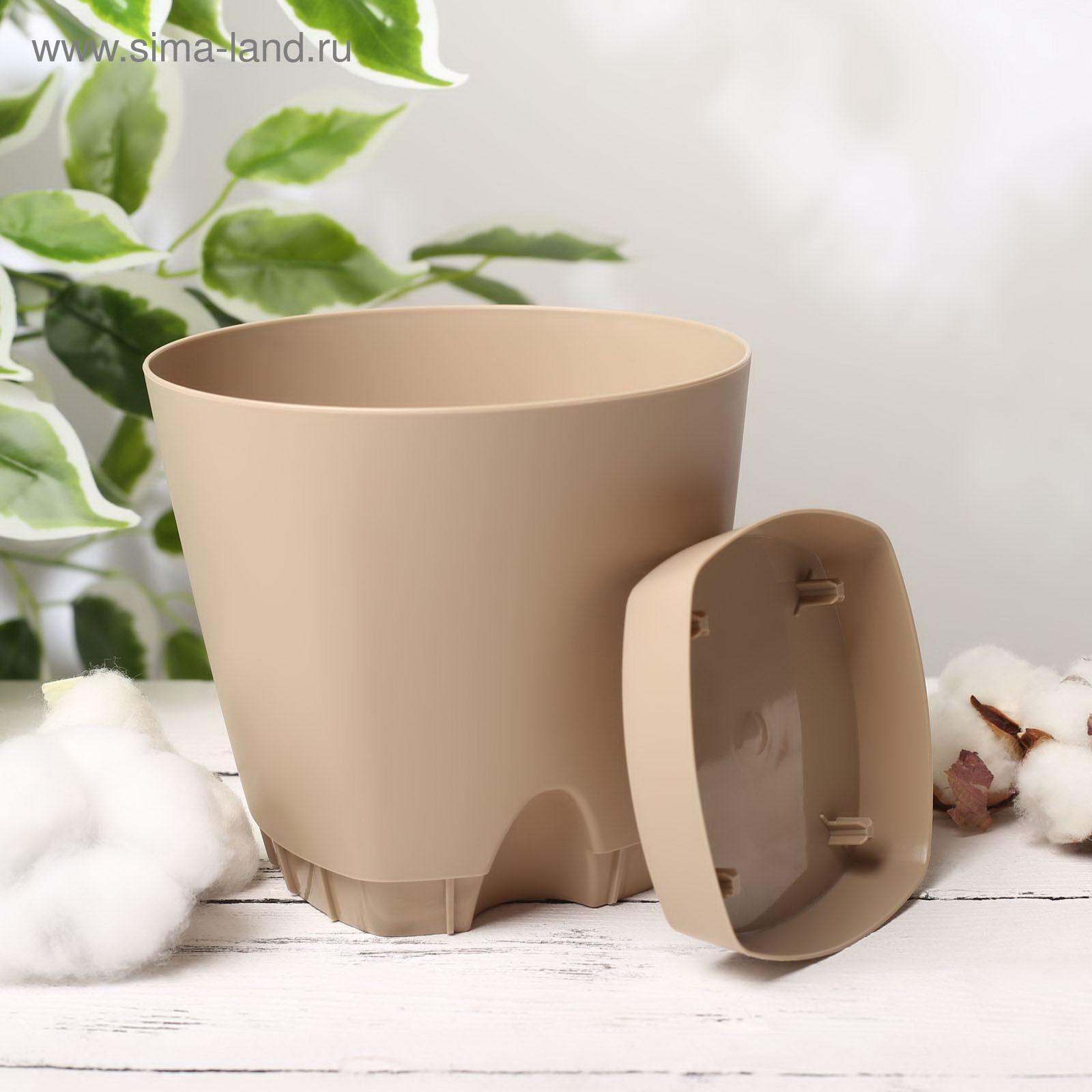 Горшок для цветов с прикорневым поливом Amsterdam, 1.35 л, цвет молочный шоколад, 14х14х13 см., InGreen, Россия