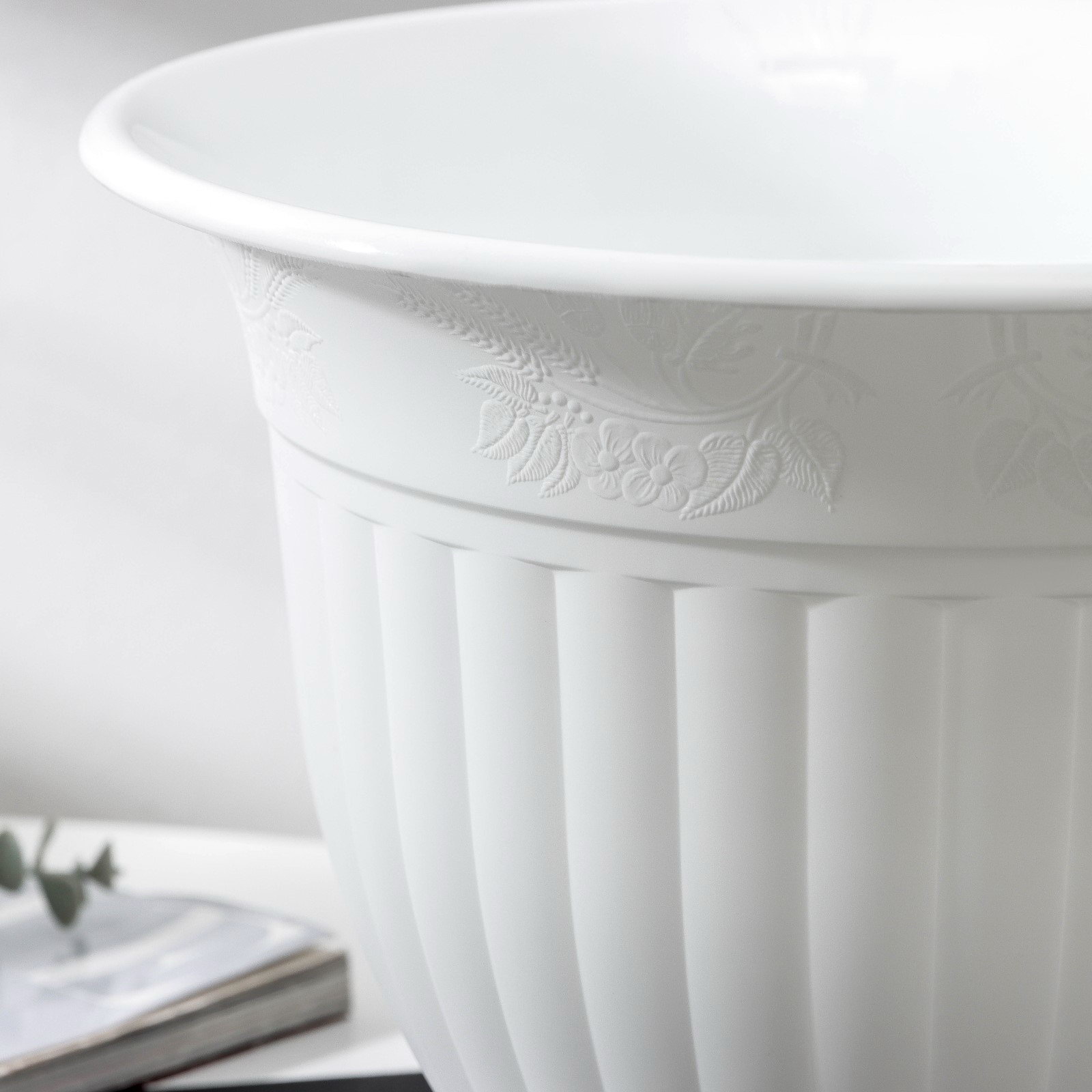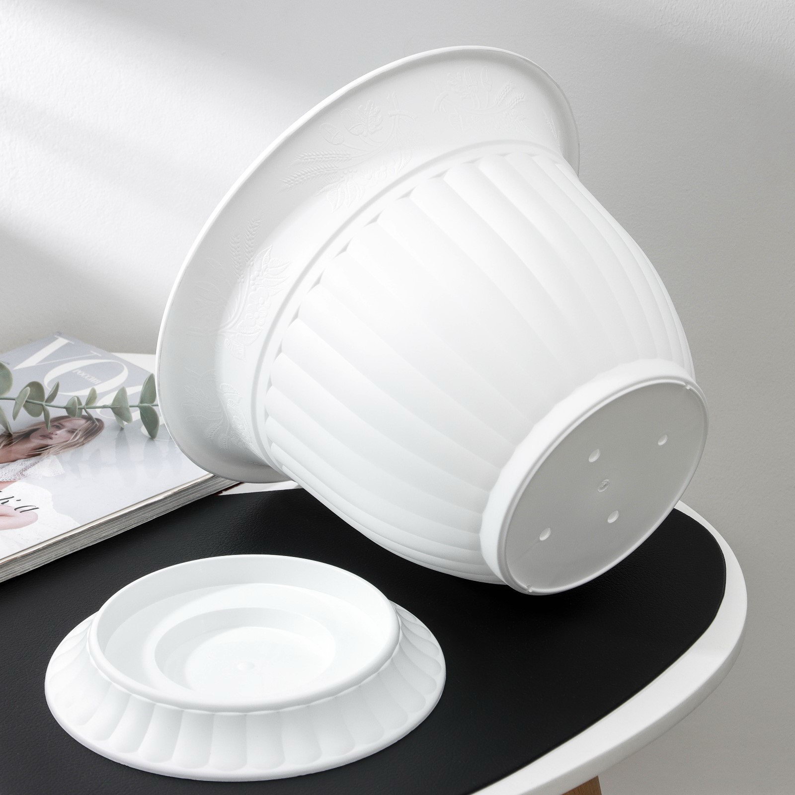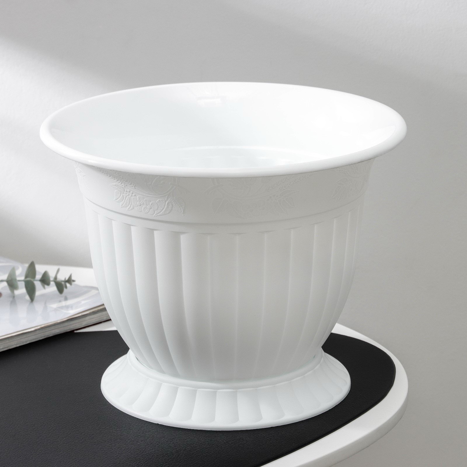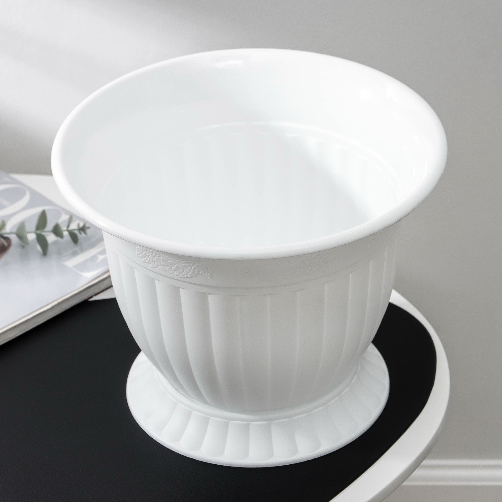 Размер упаковки: 28 x 22 x 28 см. tnved: 3926909700 Цвет: Белый Температурное ограничение: Нет Рисунок: Нет Вид установки: Напольное Можно оставлять зимой на улице: Нет С поддоном: Да Форма: Круглая Высота, см: 22 Поддон в комплекте: Да | ||
