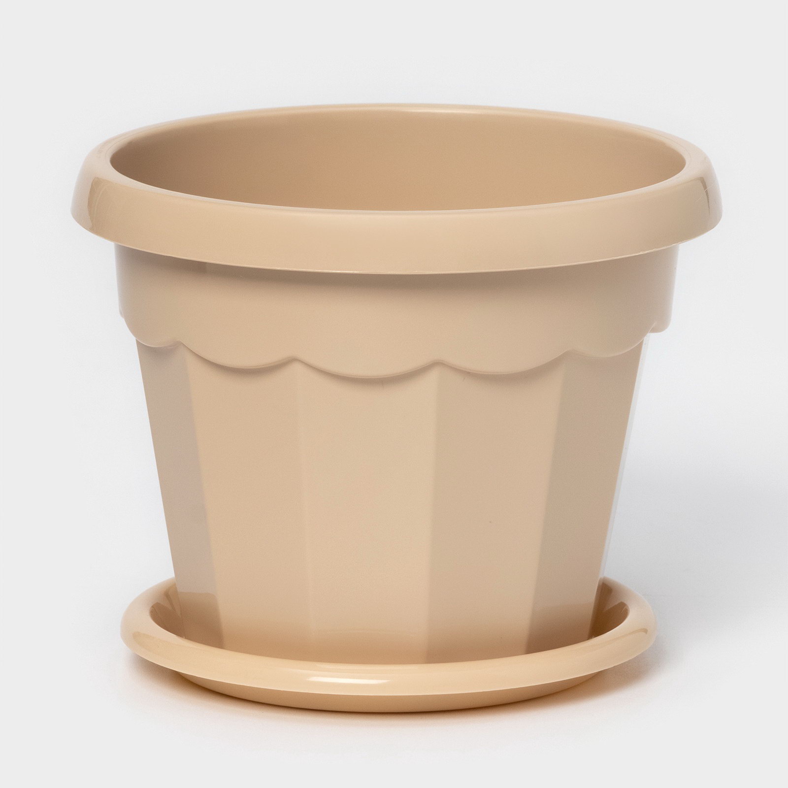 Горшок для цветов с поддоном "Эрика", 0.7 л, цвет пудровый, 13х13х10 см., Доляна, Россия