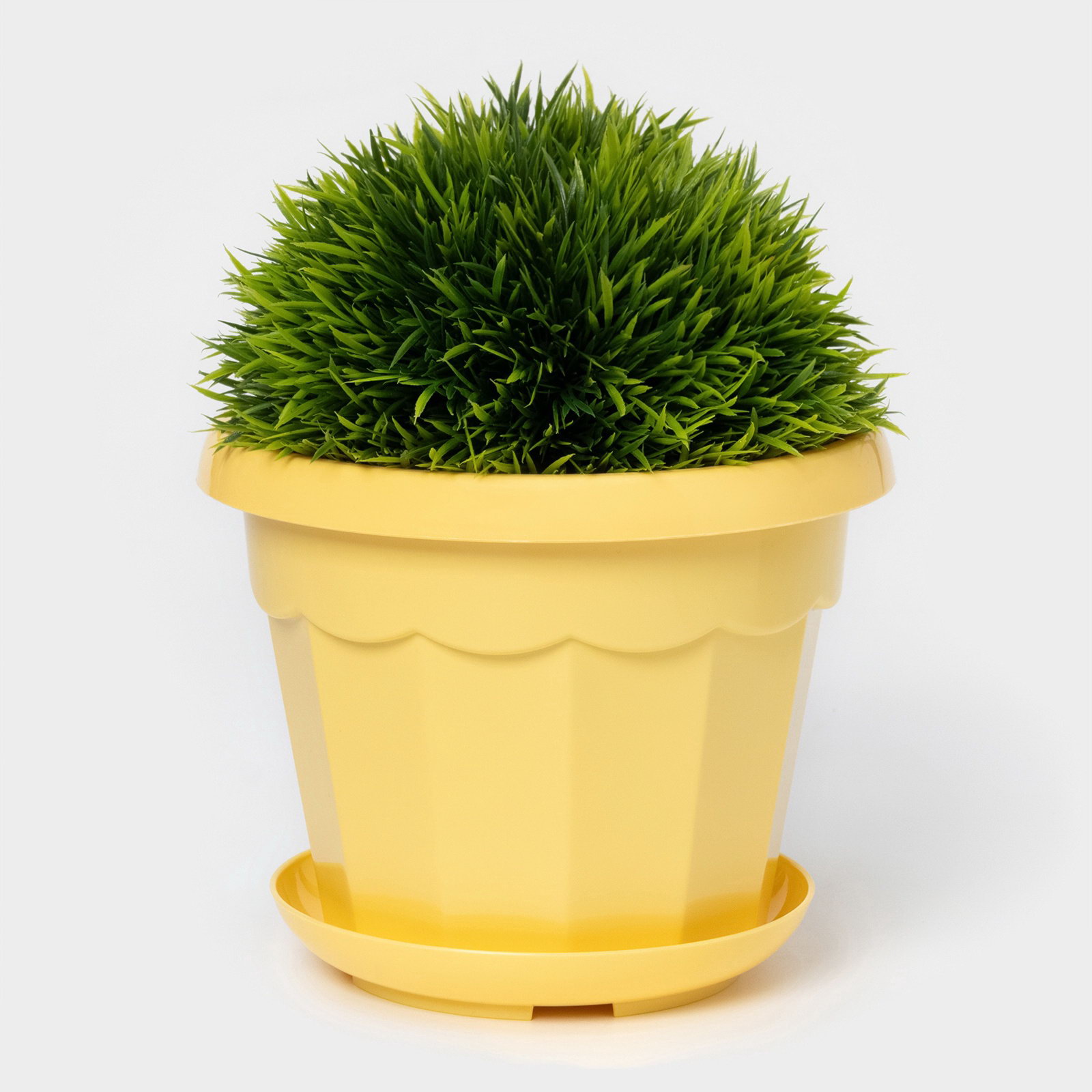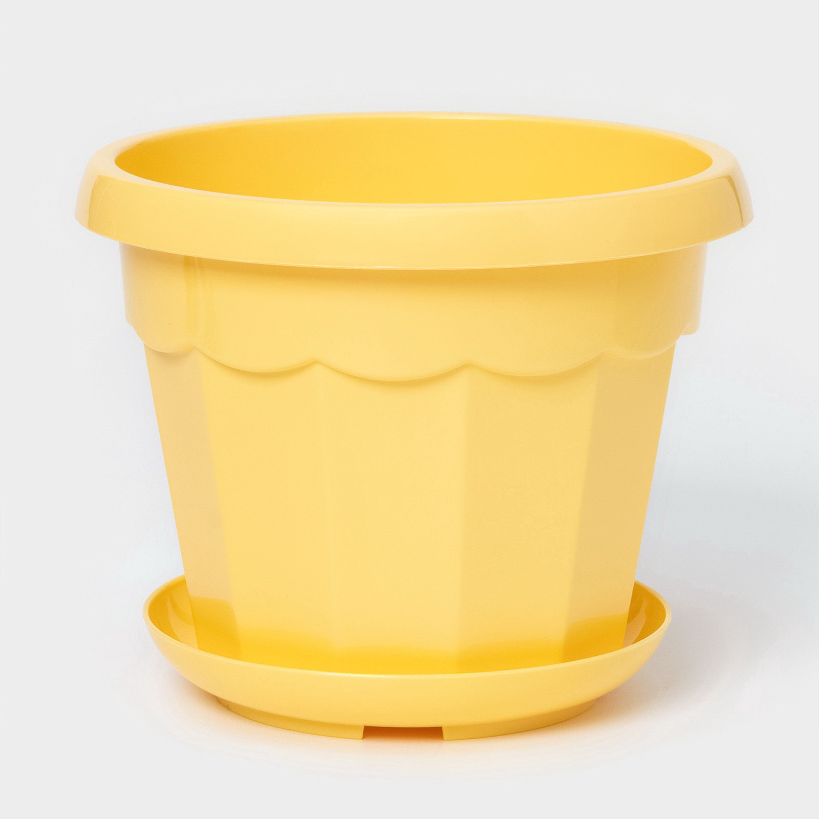 Горшок для цветов с поддоном "Эрика", 1.8 л, пластиковый, цвет жёлтый, 18х18х15 см., Доляна, Россия