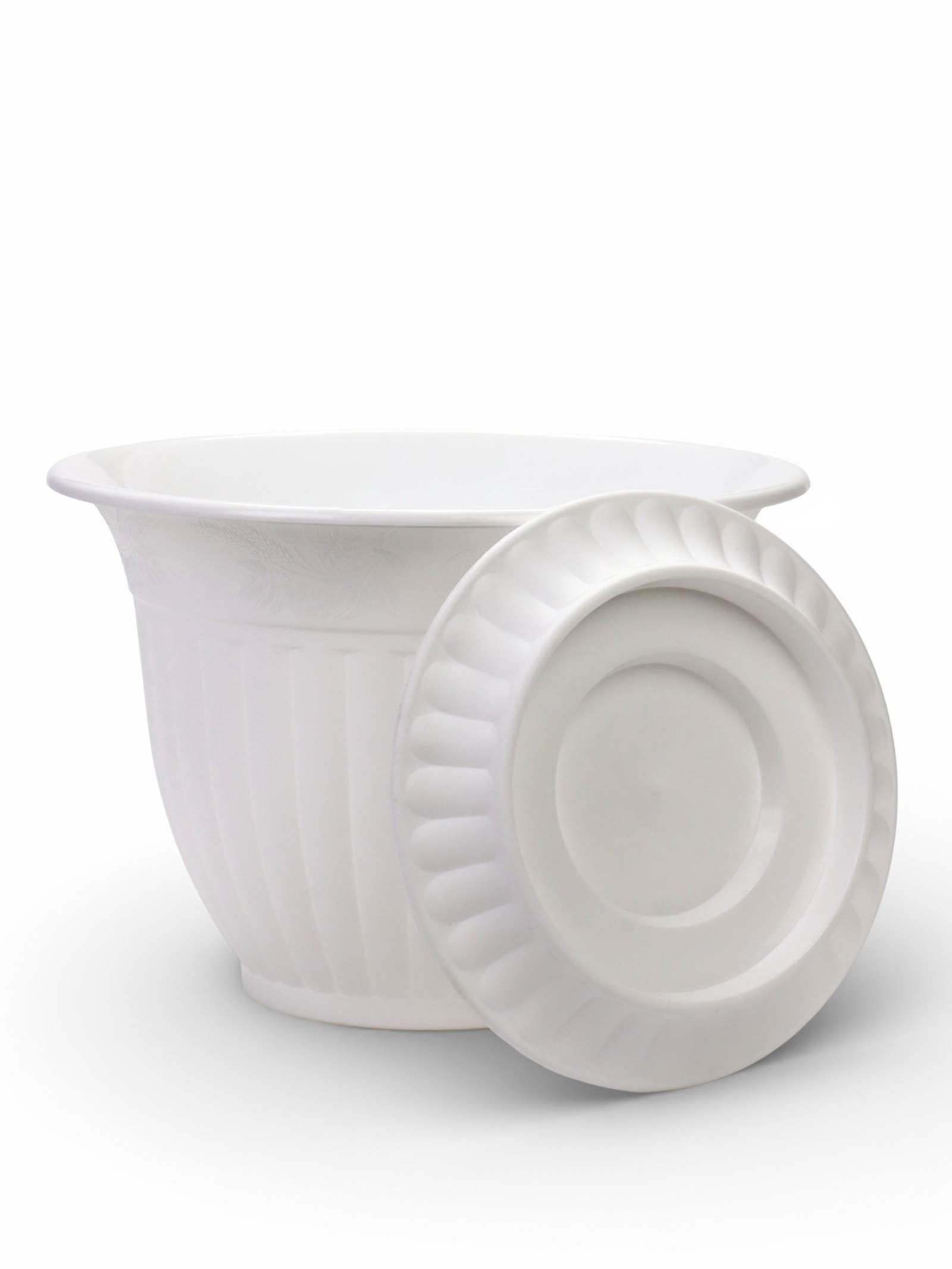 Горшок для цветов "Венеция", 10 л, d=32 см, h=25 см, пластиковый, с поддоном, белый, 32 см., Россия