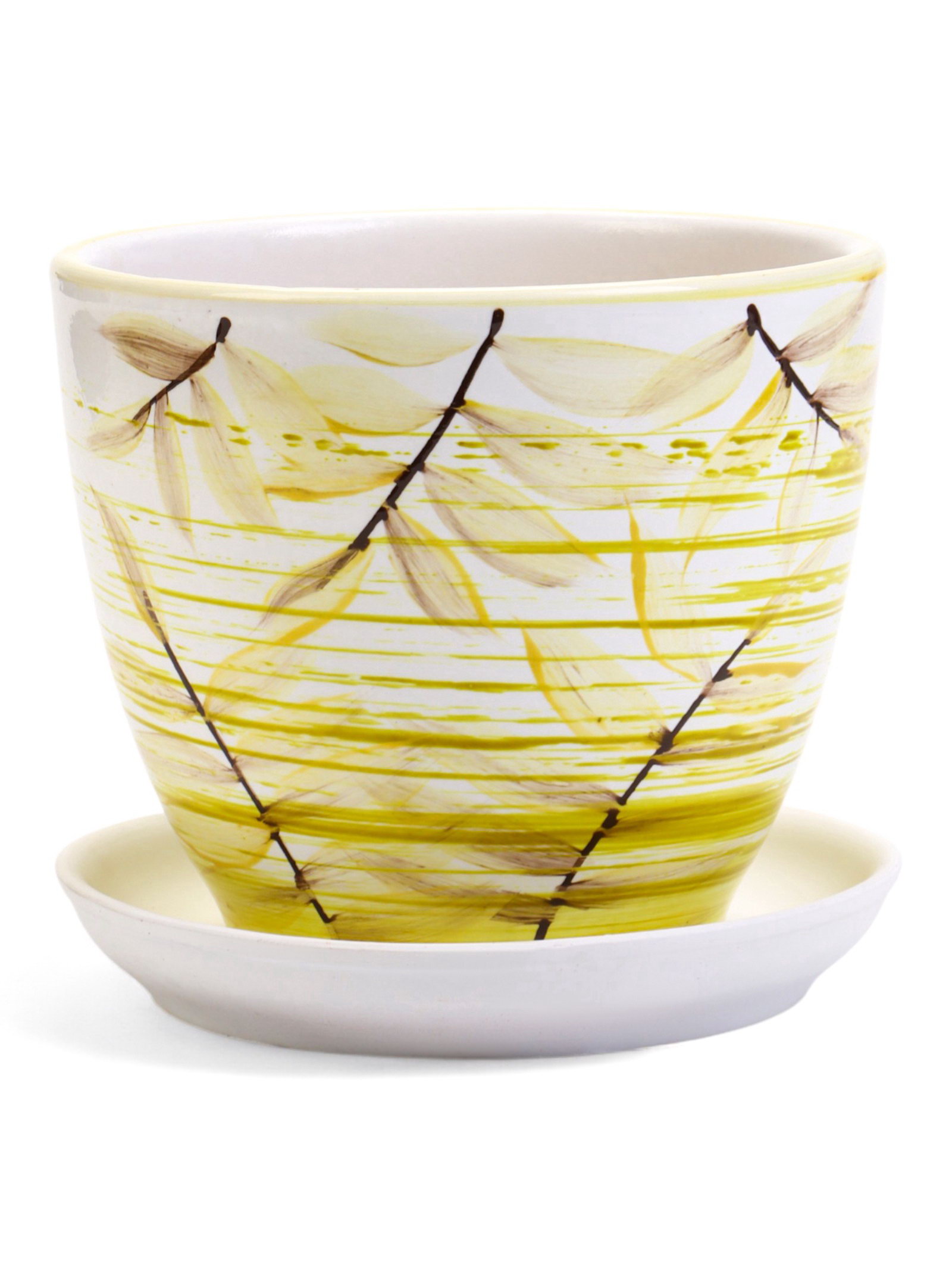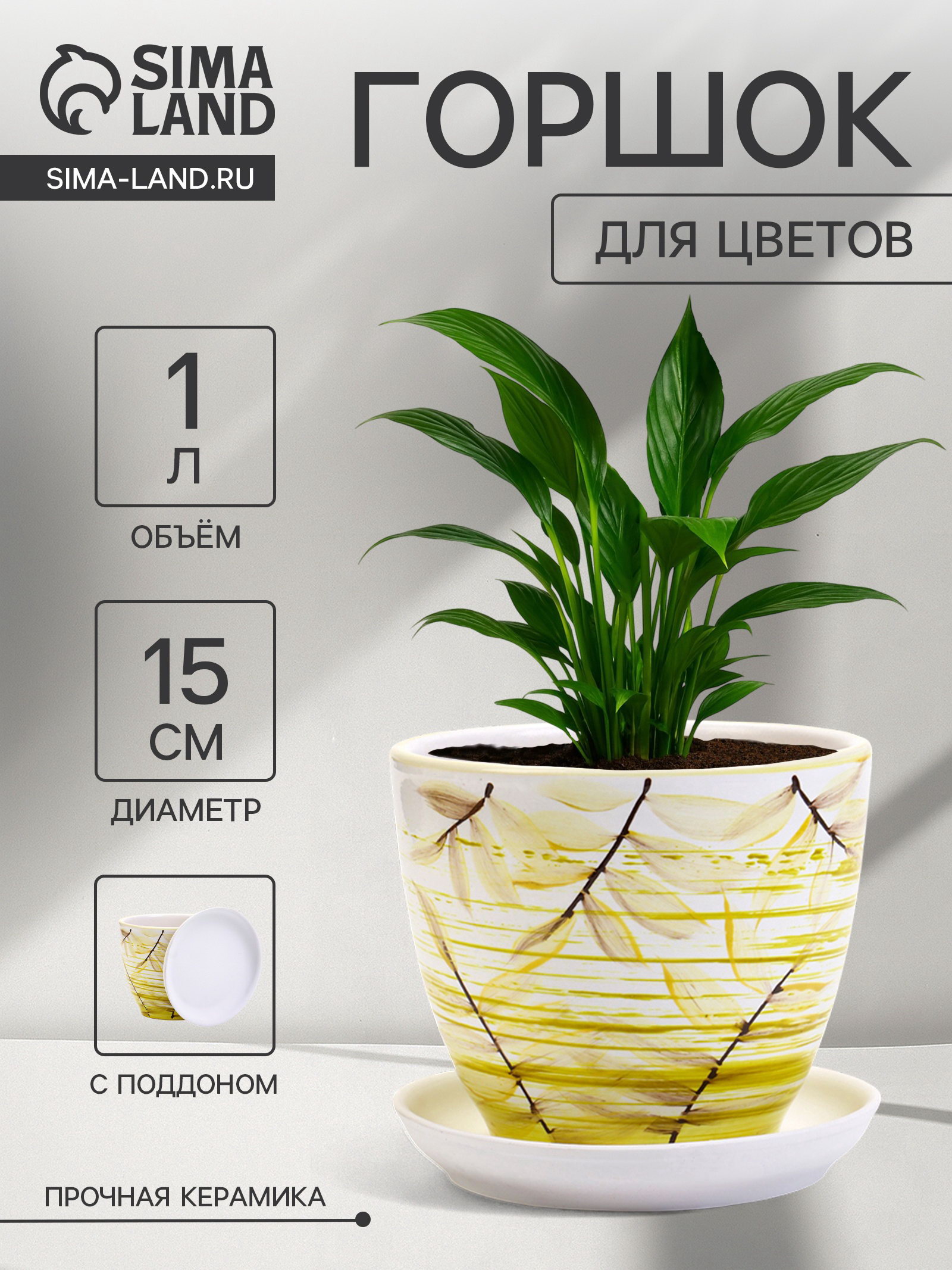 Горшок для цветов "Тропики ", 1 л, d=15 см, h=13 см, с поддоном, керамика, белый, 15 см., Беларусь