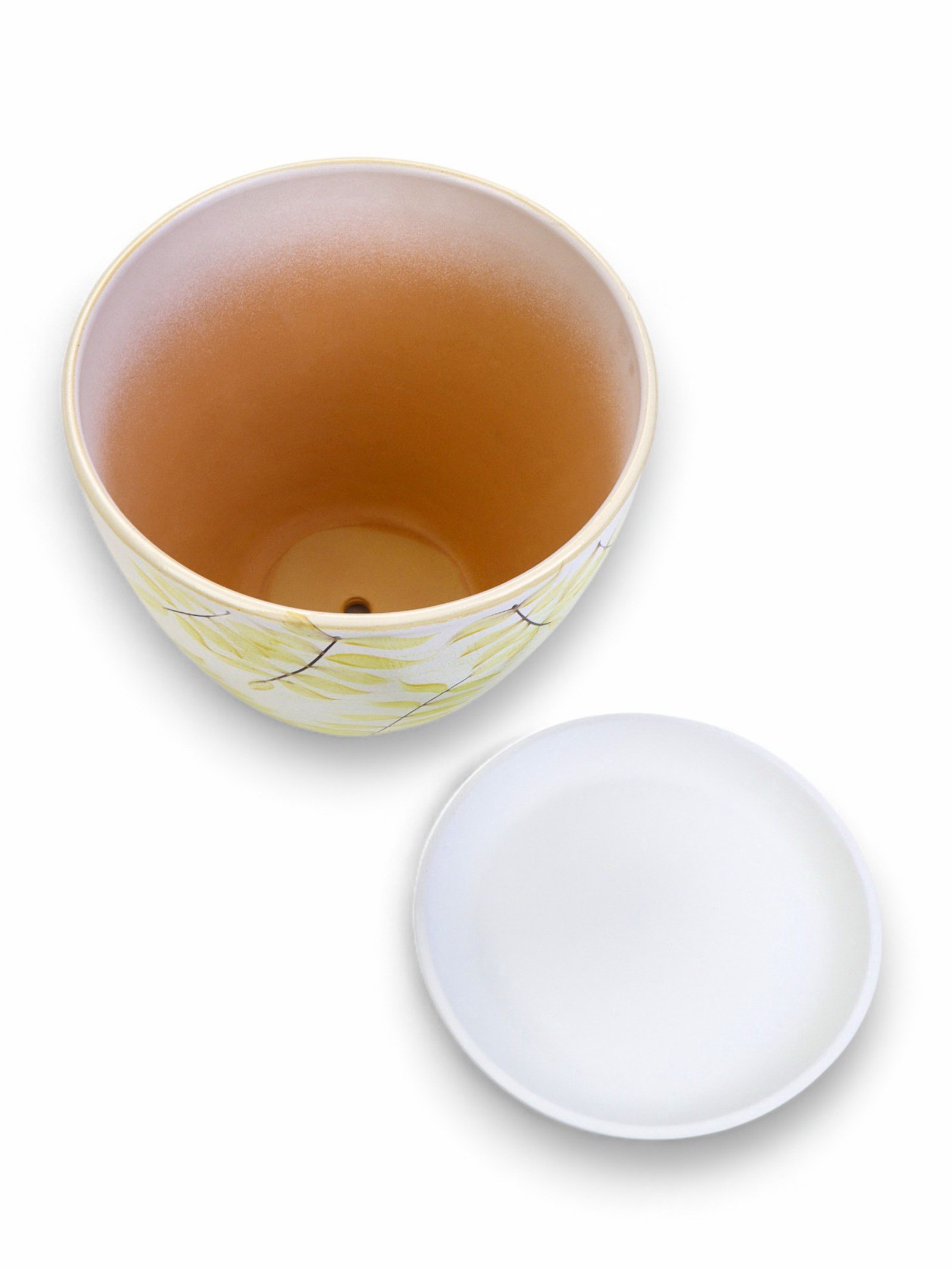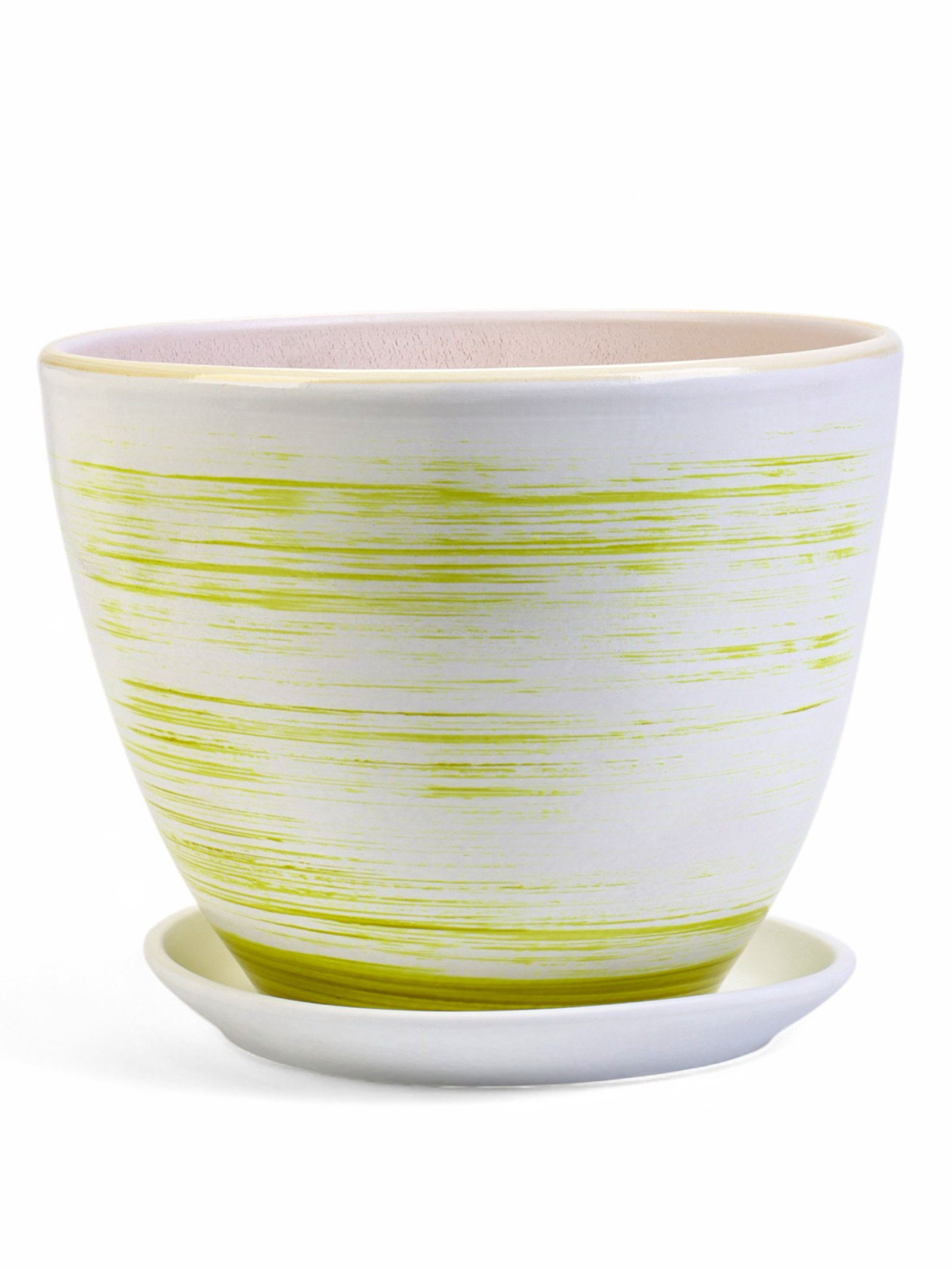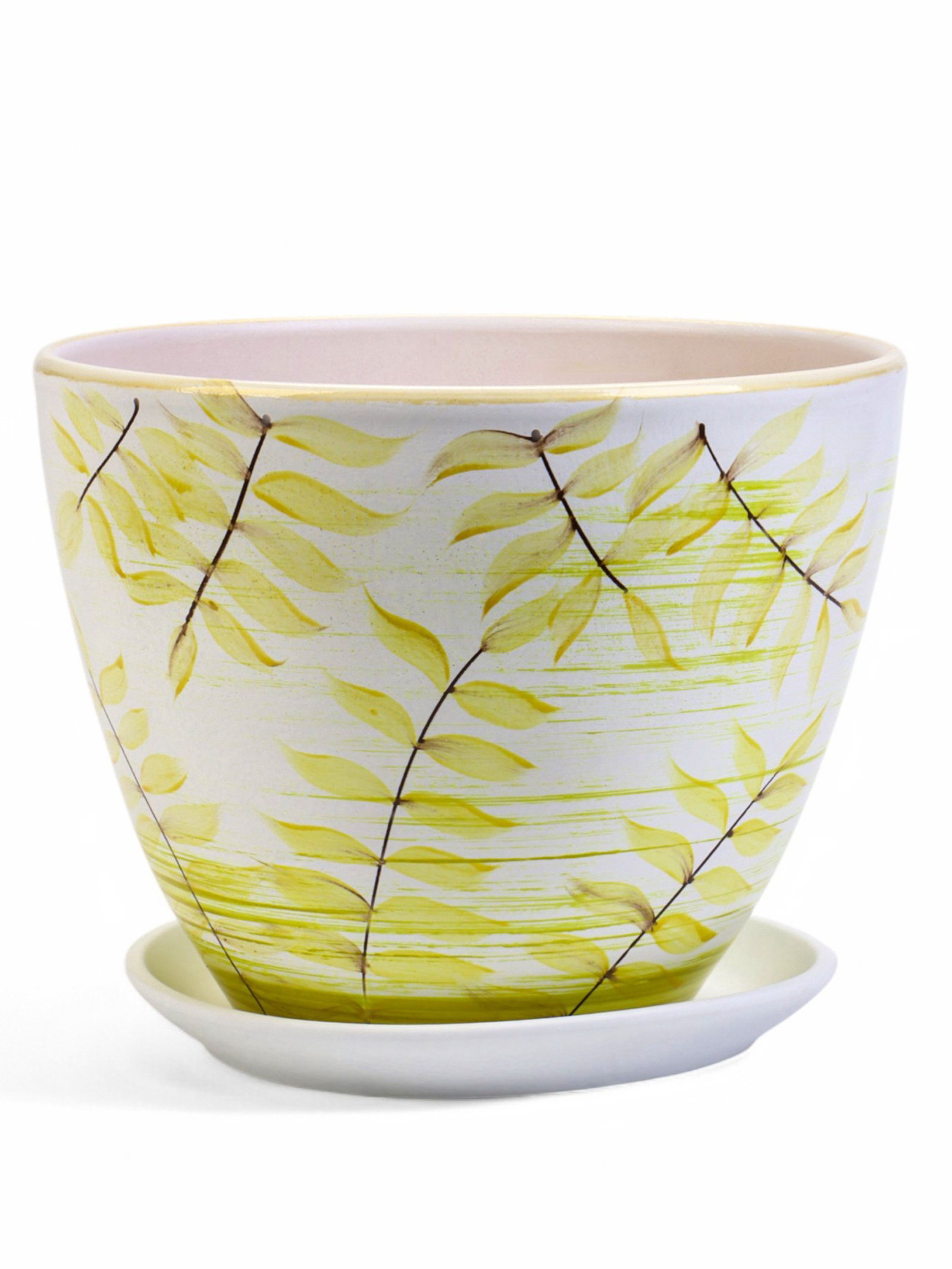 Горшок для цветов "Тропики", 8 л, d=28.5 см, h=22 см, керамика, с поддоном, белый, 28.5 см., Беларусь
