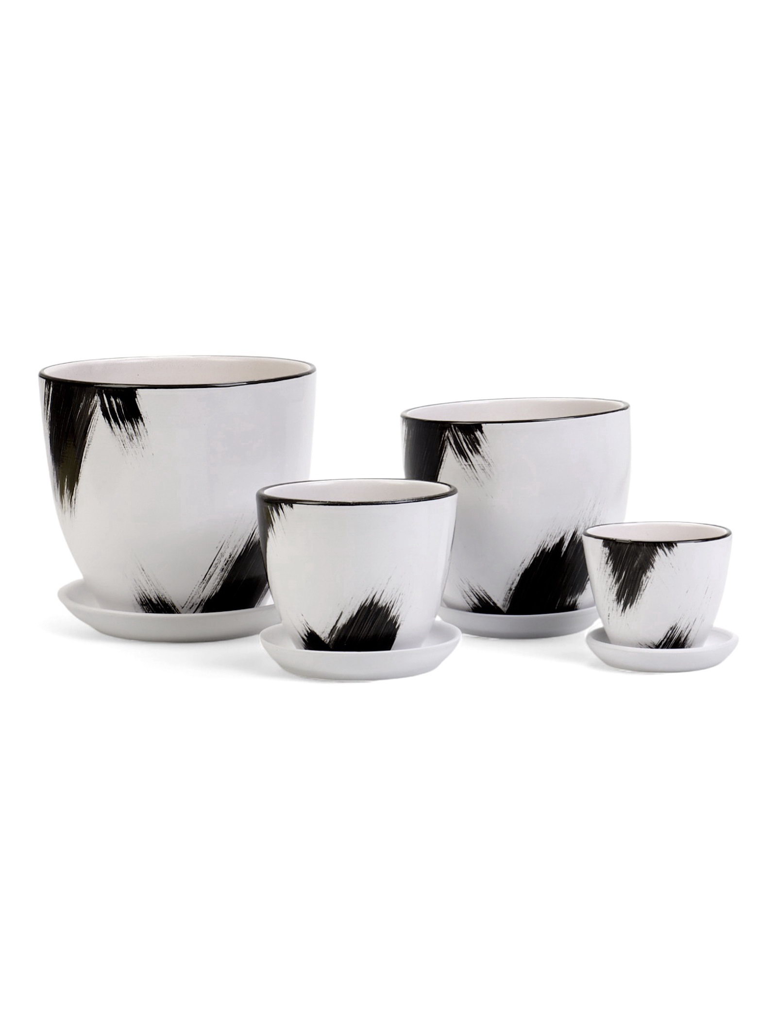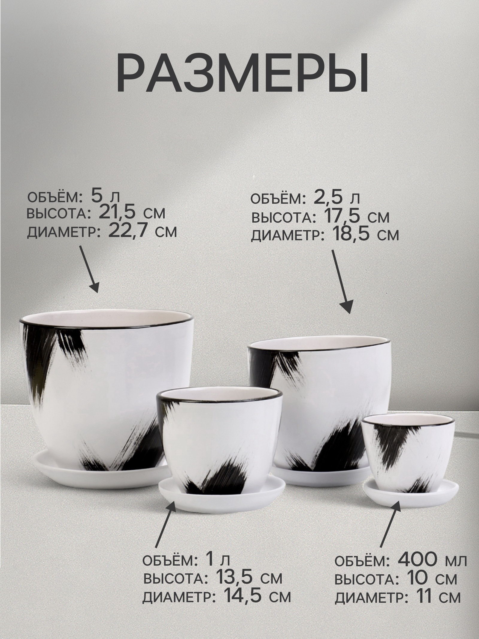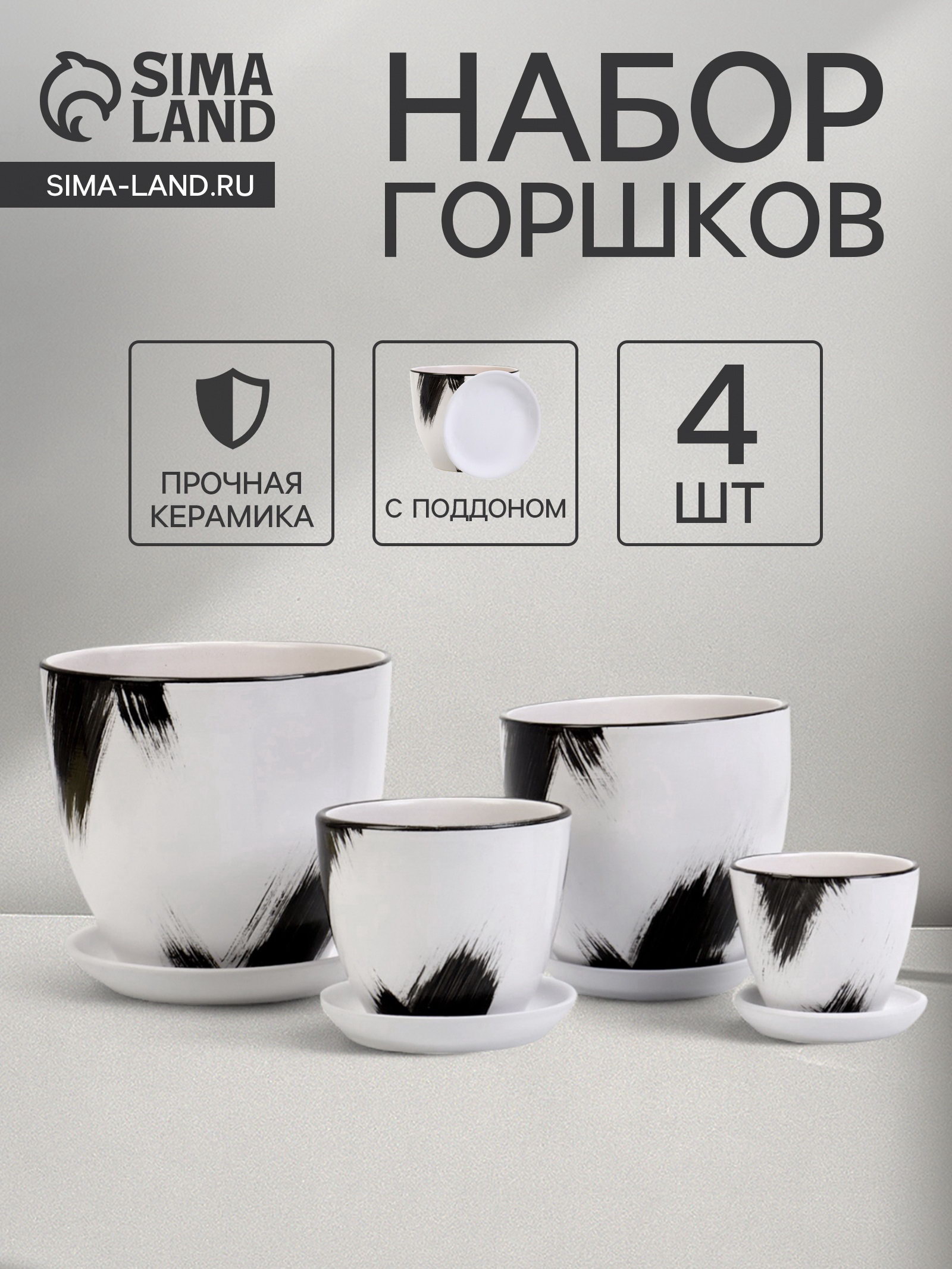 Горшок для цветов "Штрих", керамика, с поддоном, набор 4 шт.: 400 мл, 1 л, 2.5 л, 5 л, Беларусь