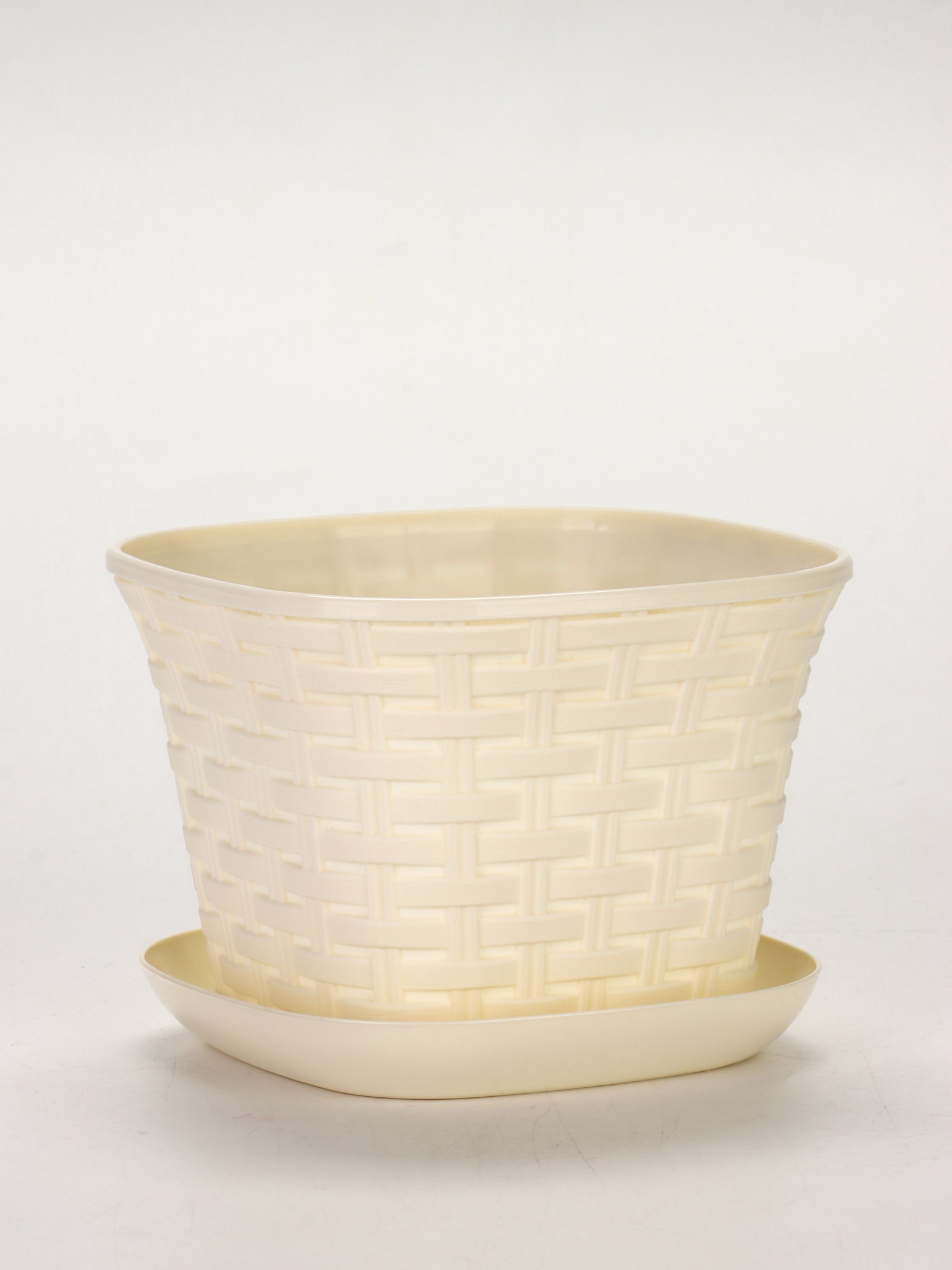 Кашпо для цветов "Ротанг", 2.3 л, 17.8x17.8x13.2 см, пластиковое, с поддоном, бежевое, 17.8 см., Виолет, Россия