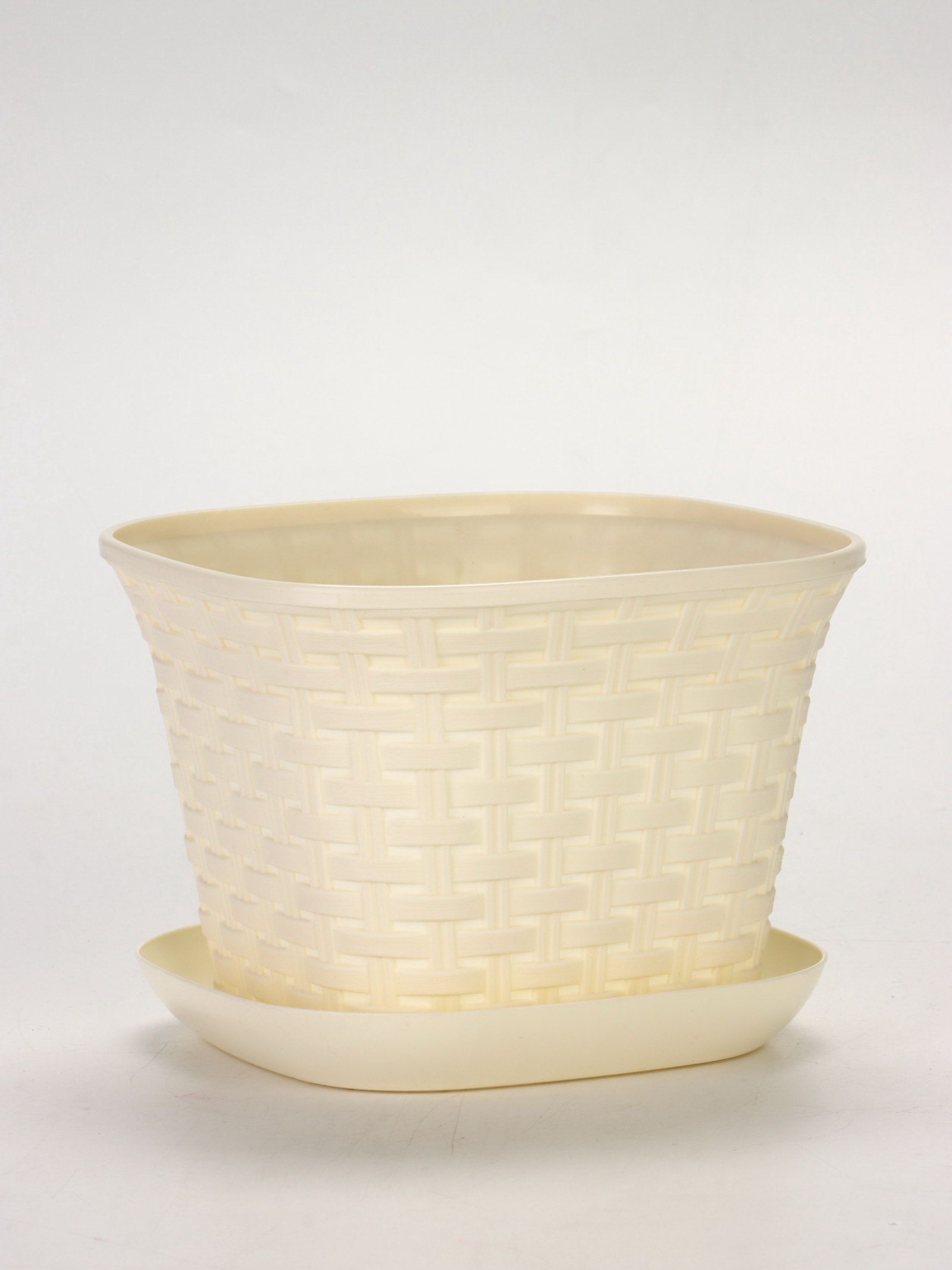 Кашпо для цветов "Ротанг", 3.4 л, 20.9x20.9x15 см, пластиковое, с поддоном, бежевое, 20.9 см., Виолет, Россия