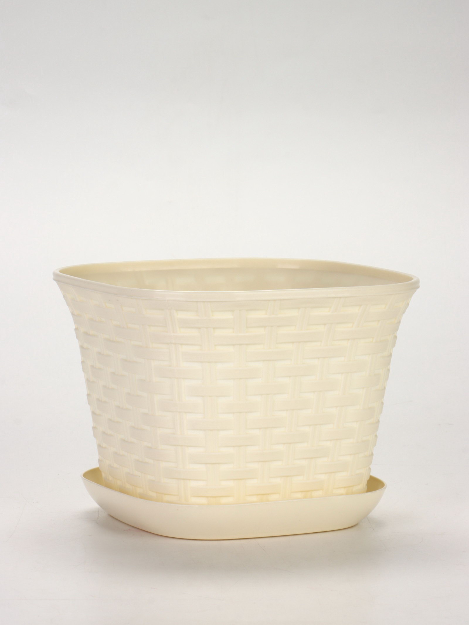 Кашпо для цветов "Ротанг", 4.6 л, 22.4x22.4x16.5 см, пластиковое, с поддоном, бежевое, 22.4 см., Виолет, Россия