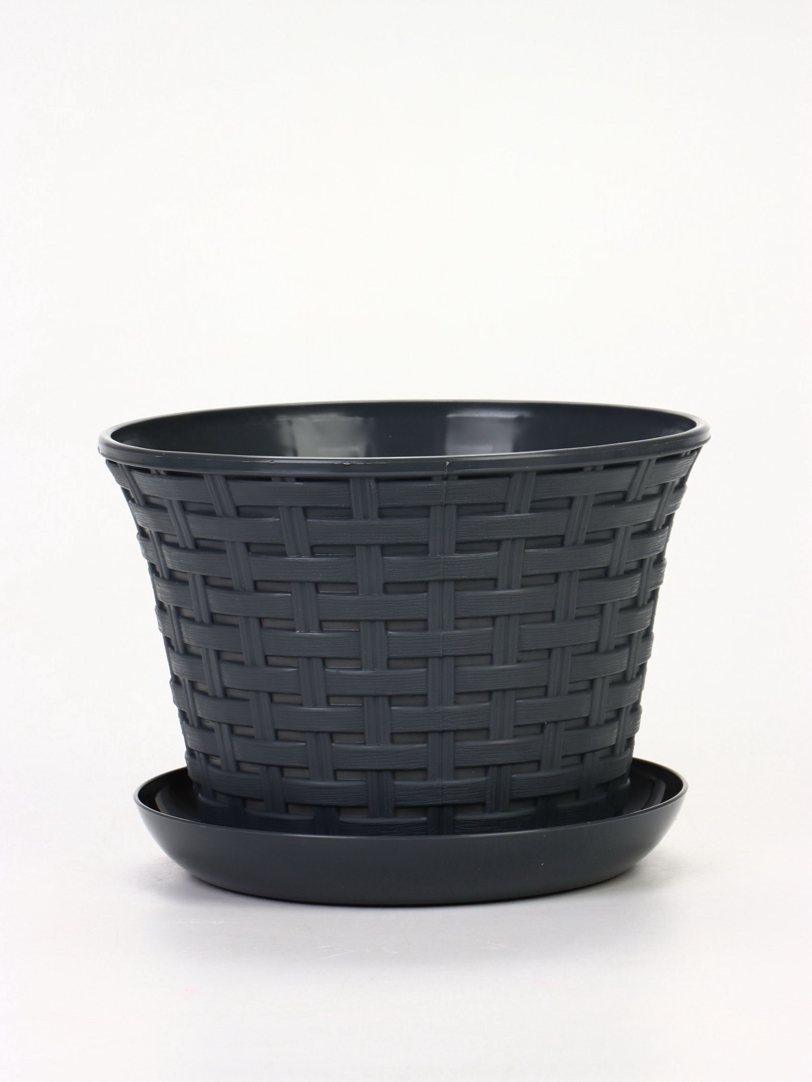 Кашпо для цветов "Ротанг", 2.1 л, d=18 см, h=13.2 см, пластиковое, с поддоном, серое, 18 см., Виолет, Россия