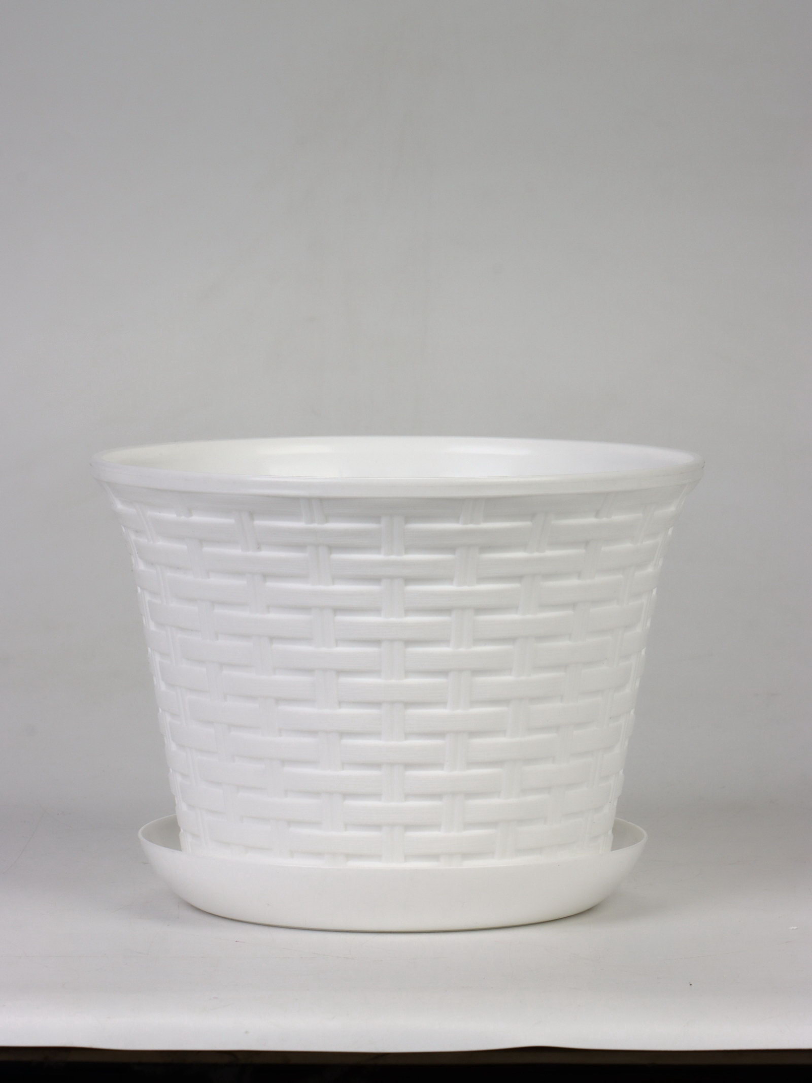 Кашпо для цветов "Ротанг", 4 л, d=22.2 см, h=16.6 см, пластиковое, с поддоном, белое, 22.2 см., Виолет, Россия