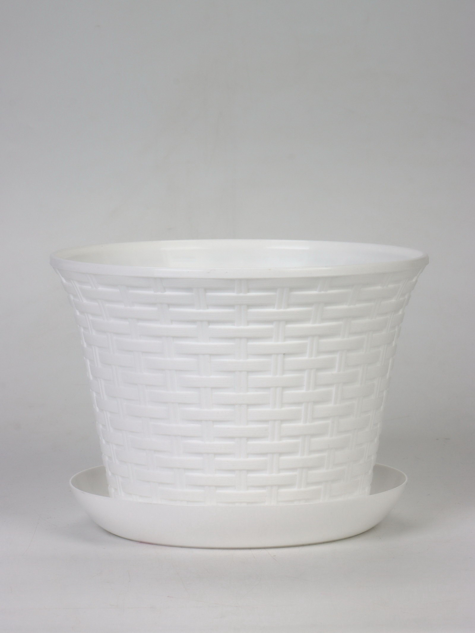 Кашпо для цветов "Ротанг", 6.1 л, d=25.5 см, h=18.9 см, пластиковое, с поддоном, белое, 25.5 см., Виолет, Россия
